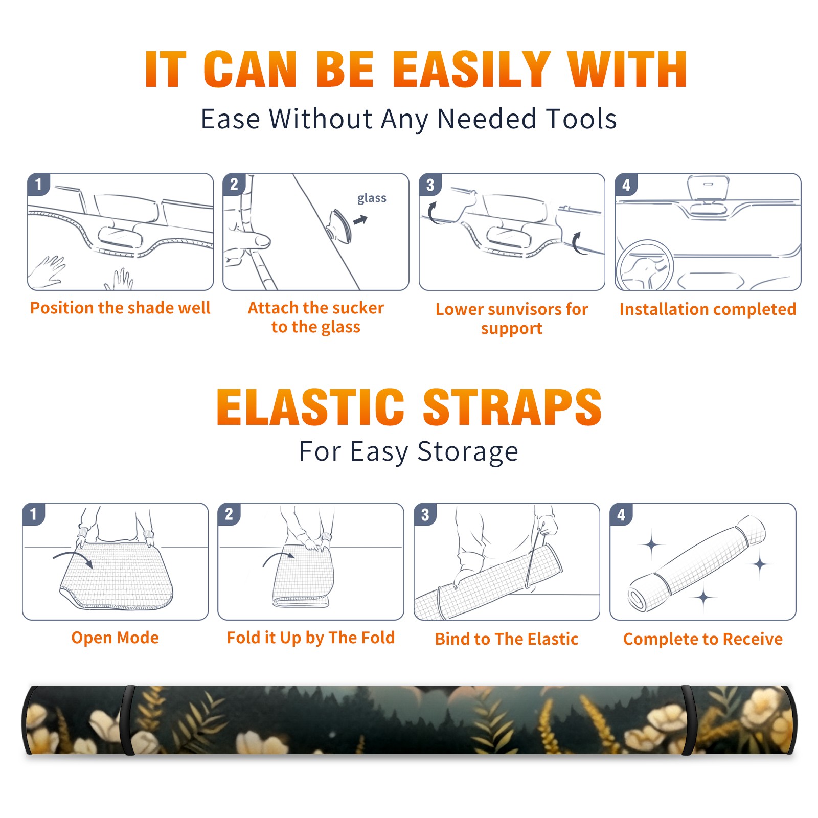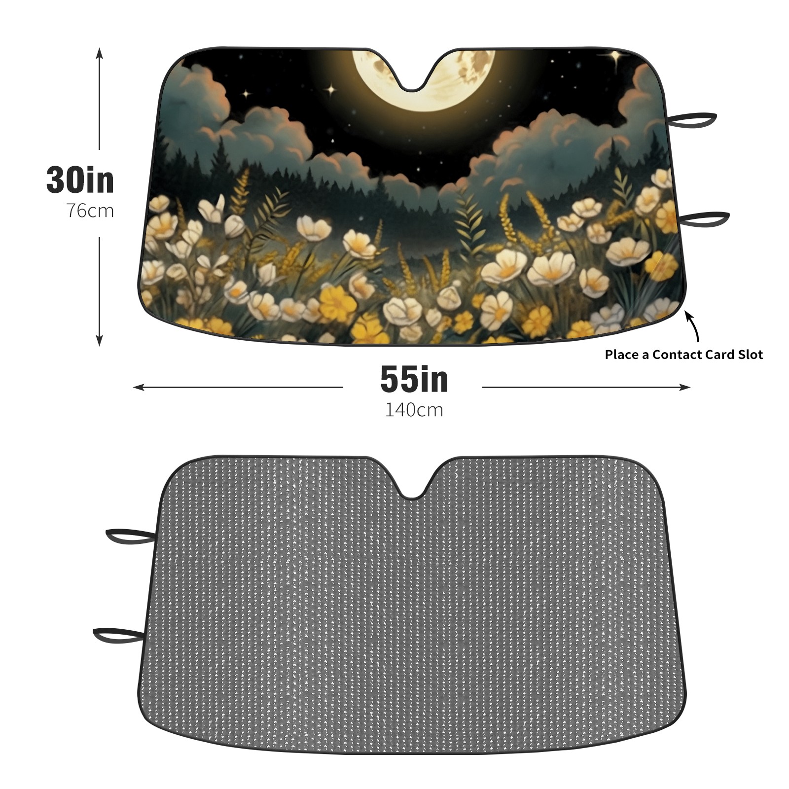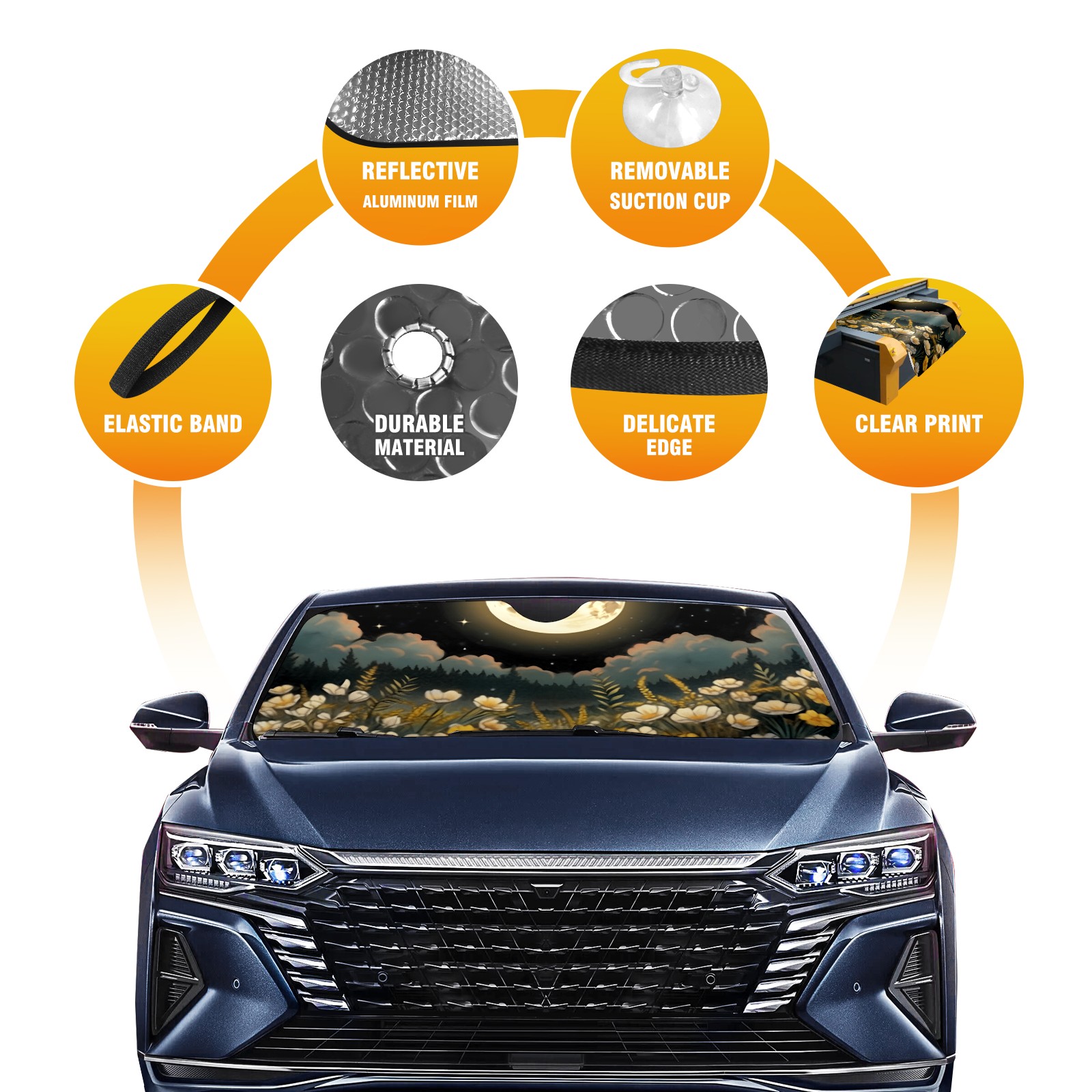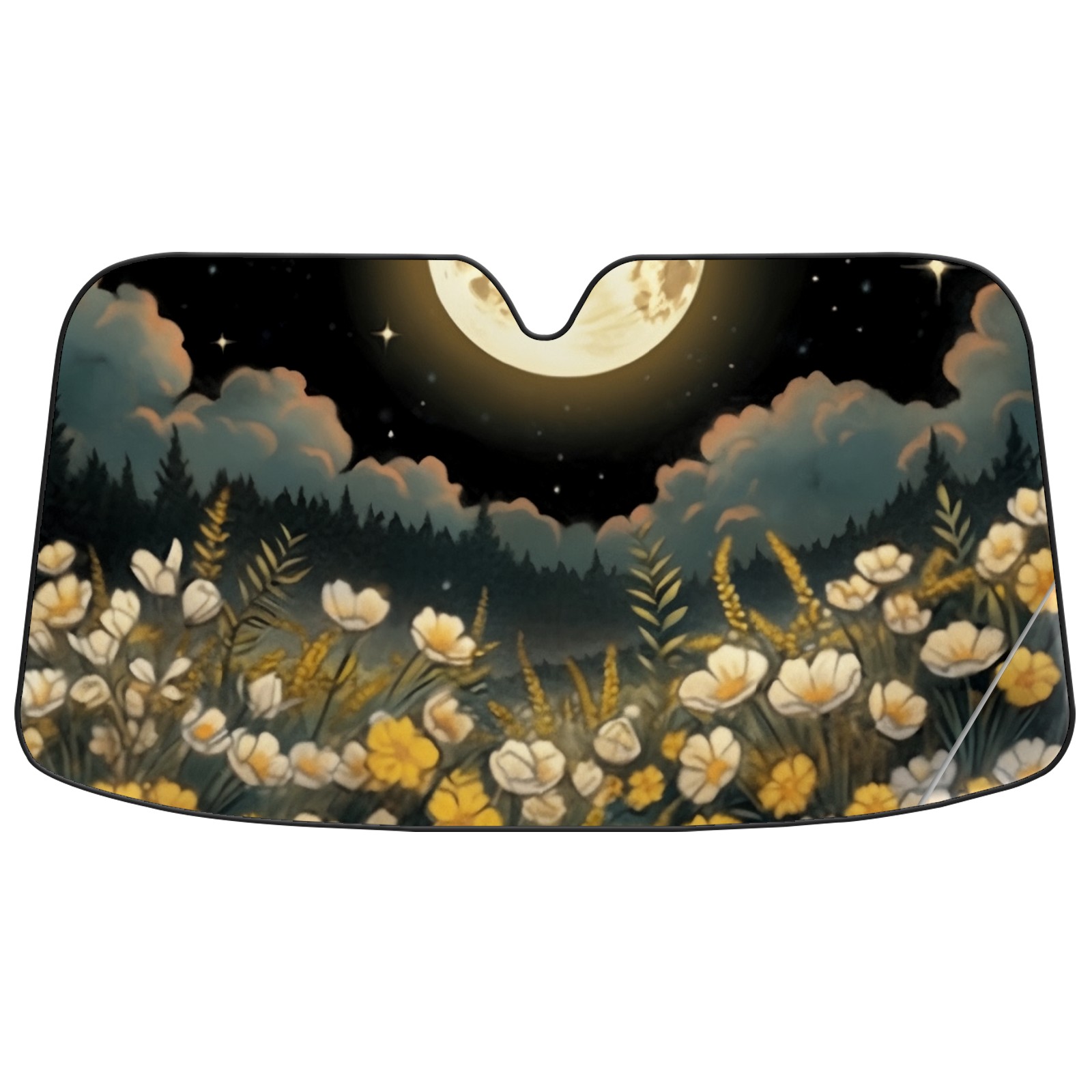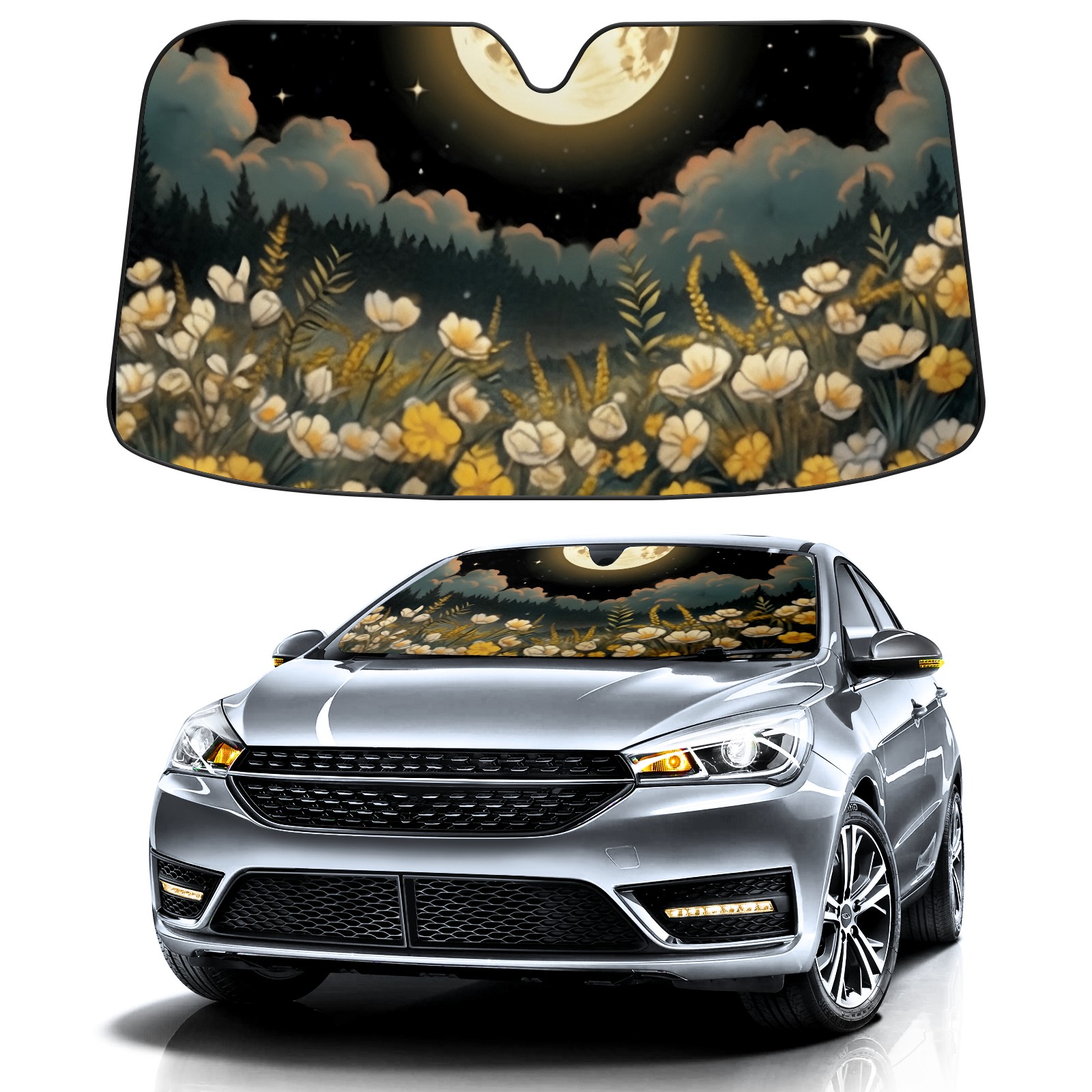 Car Windshield Sun Shade For Front Window Flowers Under The Moon Foldable Vehicle Windshield Car Sun Visor Covers Automotive Window Protector Car Camping Privacy Sun Blocker