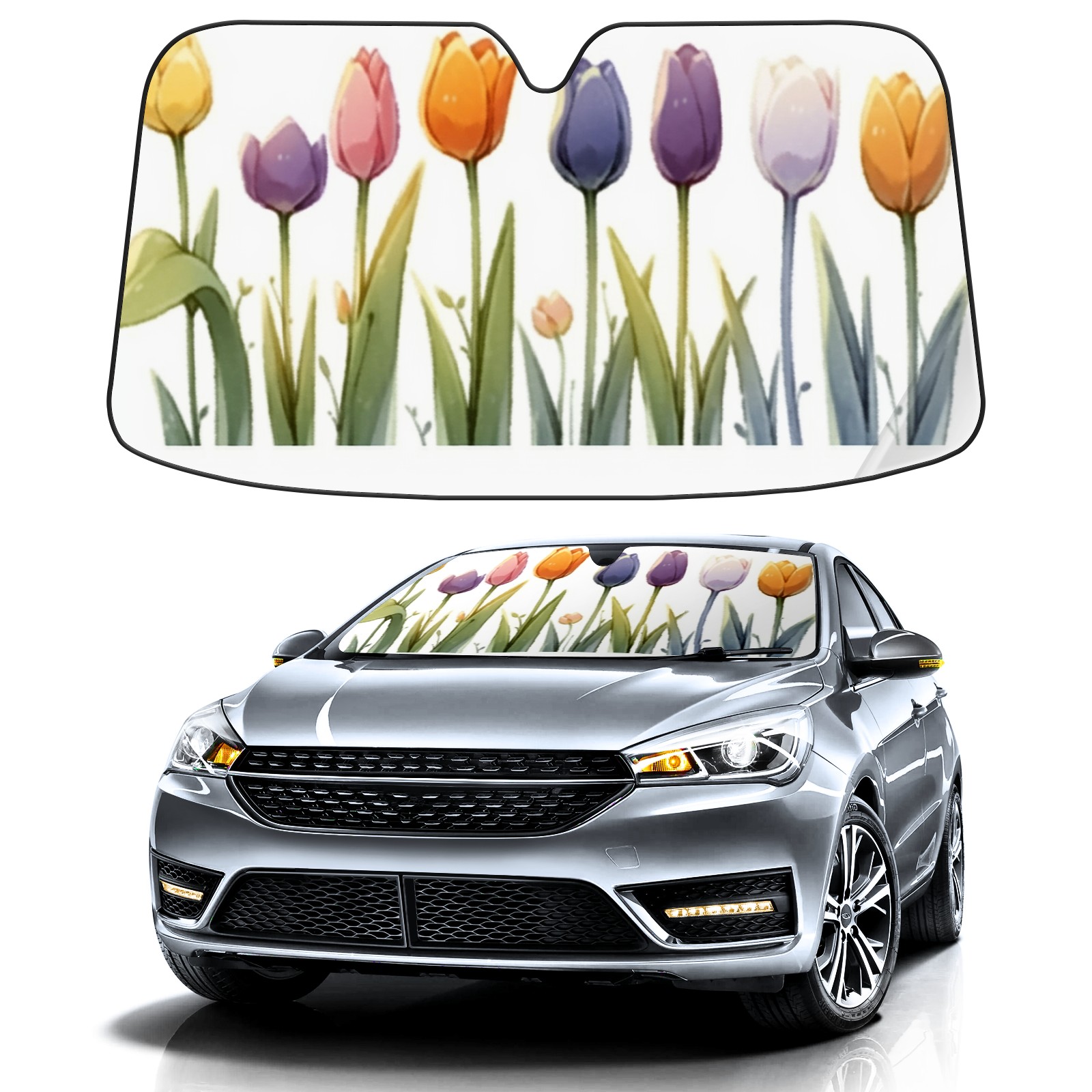 Car Windshield Sun Shade For Front Window Colorful Flower Foldable Vehicle Windshield Car Sun Visor Covers Automotive Window Protector Car Camping Privacy Sun Blocker