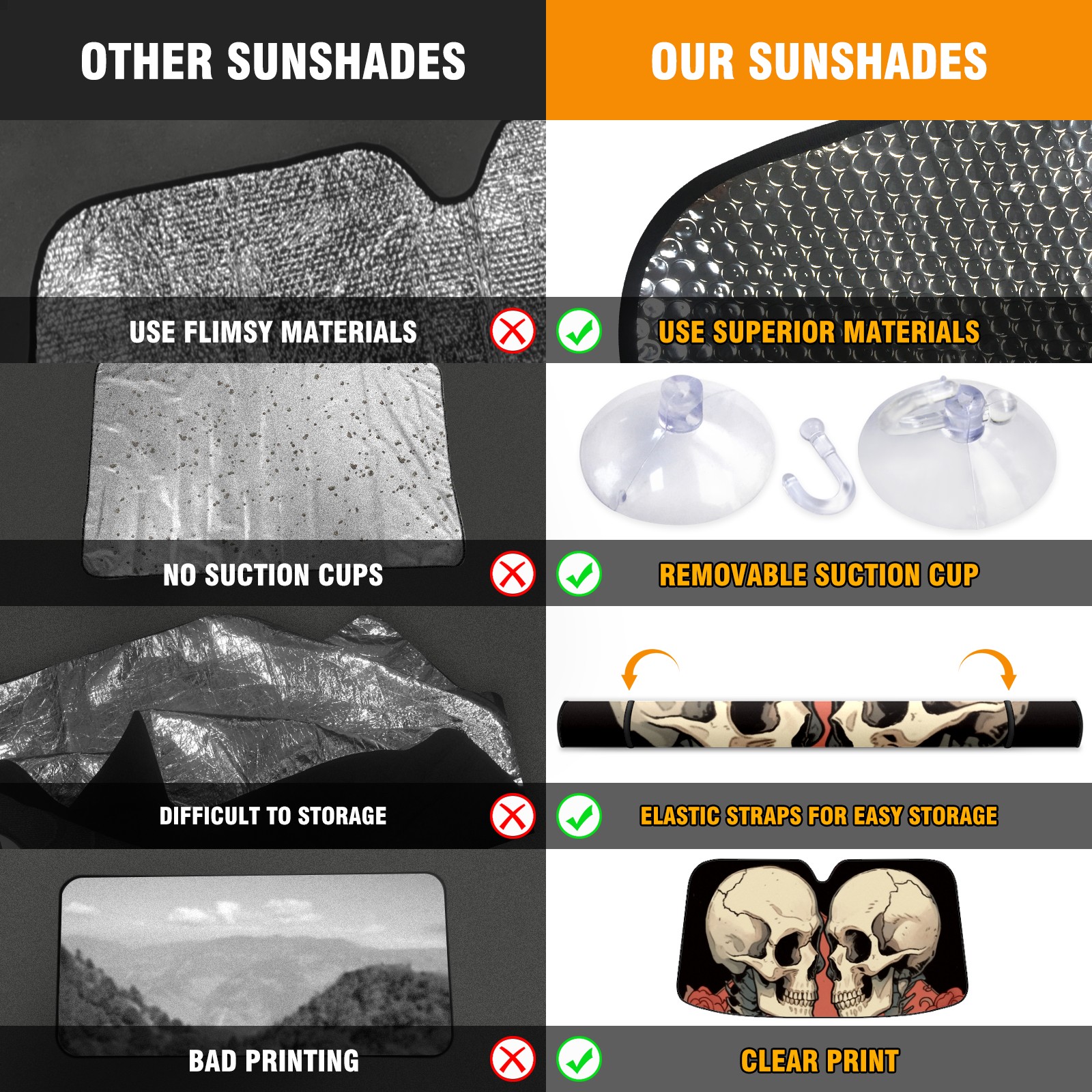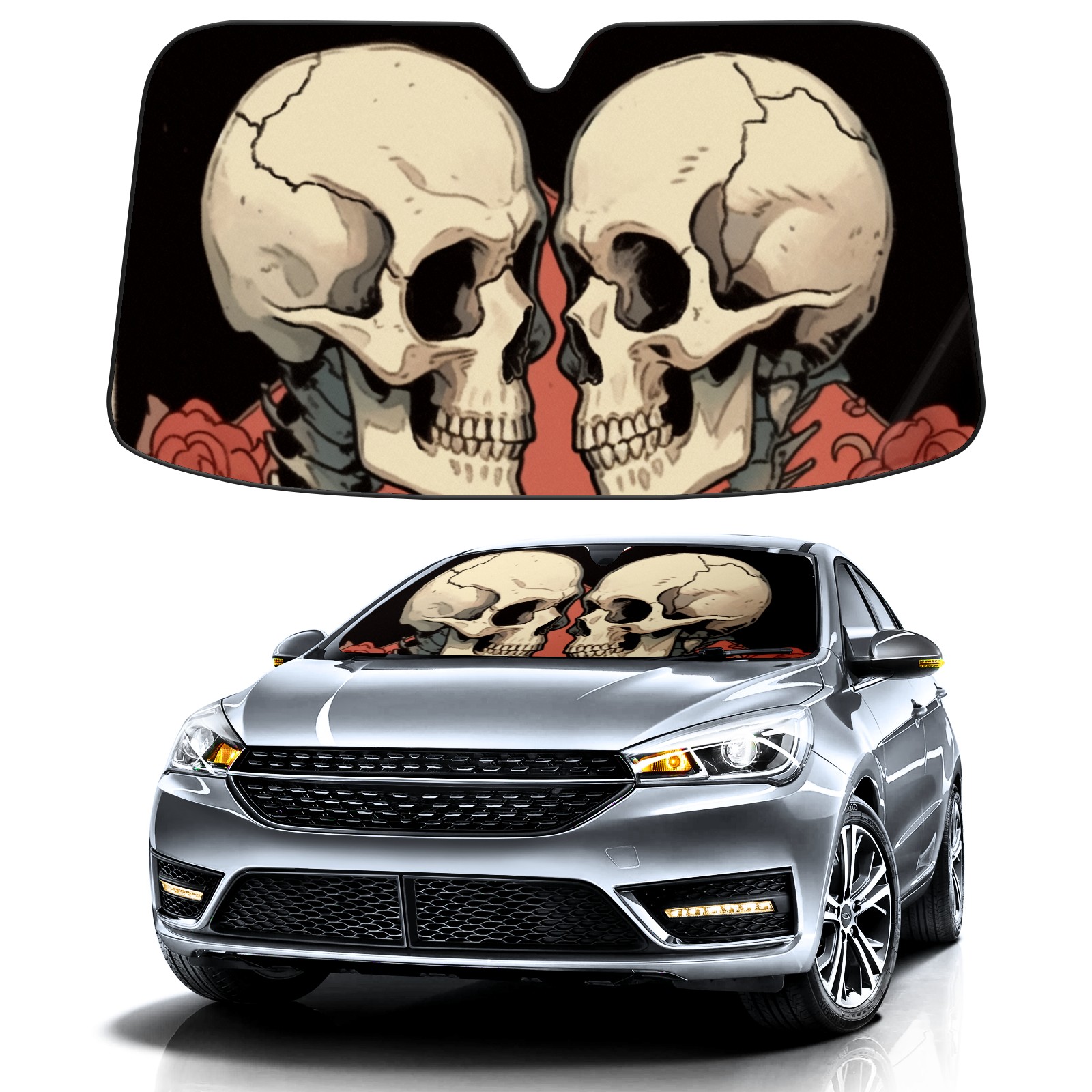 Car Windshield Sun Shade For Front Window Love Skull Foldable Vehicle Windshield Car Sun Visor Covers Automotive Window Protector Car Camping Privacy Sun Blocker