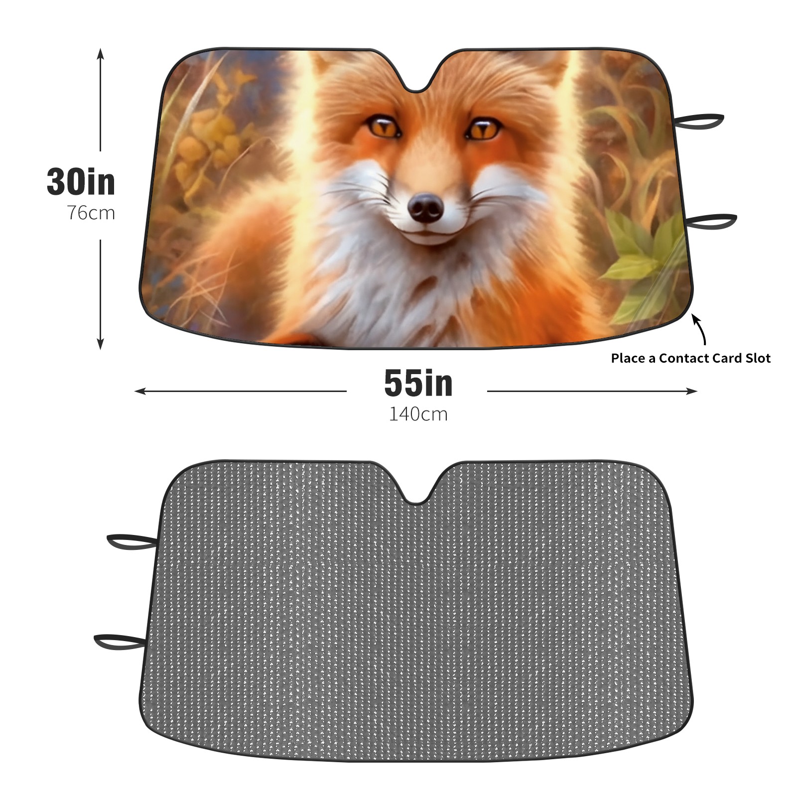 Diameter /Size 63"L x 33.5"W Made from excellent materials which makes it sturdy and protects the car from the sun. Easy to use and pack. Makes the interior of the car cooler.You can easily stash the sunshade in the storage bag or store long term.It open and closes easy. Also the leather storage bag is durable and easy to put the umbrella back into.This windshield sunshade provides complete coverage and keeps your car interior cool under direct sun. It is easy to open and position under the windshield and around the rear-view mirror. Makes Your Car Easy To Identify, Perfect For Finding Your Car In Crowded Parking Lots And Garages.Great Choice: It Is A Great Gift For Dad, Boyfriend, Brother, Brother And Uncle, Friends, Classmates, Family And So On. Notice: Due To Difference Computer Monitors, The Color Maybe Slightly Different From Picture. As Different Measurement Methods, Measurement Data Will Float Within 2%.I Hope You Understand. If You Have Any Question About The Item Please Do Not Hesitate To Contact Us Immediately And We Will Give You A Satisfactory Reply Within 24 Hours.
