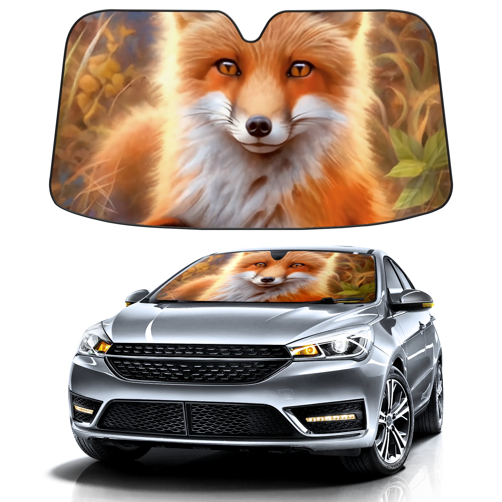 • Diameter /Size 63"L x 33.5"W Made from excellent materials which makes it sturdy and protects the car from the sun. Easy to use and pack. Makes the interior of the car cooler.You can easily stash the sunshade in the storage bag or store long term.It open and closes easy. Also the leather storage bag is durable and easy to put the umbrella back into.This windshield sunshade provides complete coverage and keeps your car interior cool under direct sun. It is easy to open and position under the windshield and around the rear-view mirror. Makes Your Car Easy To Identify, Perfect For Finding Your Car In Crowded Parking Lots And Garages.Great Choice: It Is A Great Gift For Dad, Boyfriend, Brother, Brother And Uncle, Friends, Classmates, Family And So On. Notice: Due To Difference Computer Monitors, The Color Maybe Slightly Different From Picture. As Different Measurement Methods, Measurement Data Will Float Within 2%.I Hope You Understand. If You Have Any Question About The Item Please Do Not Hesitate To Contact Us Immediately And We Will Give You A Satisfactory Reply Within 24 Hours.