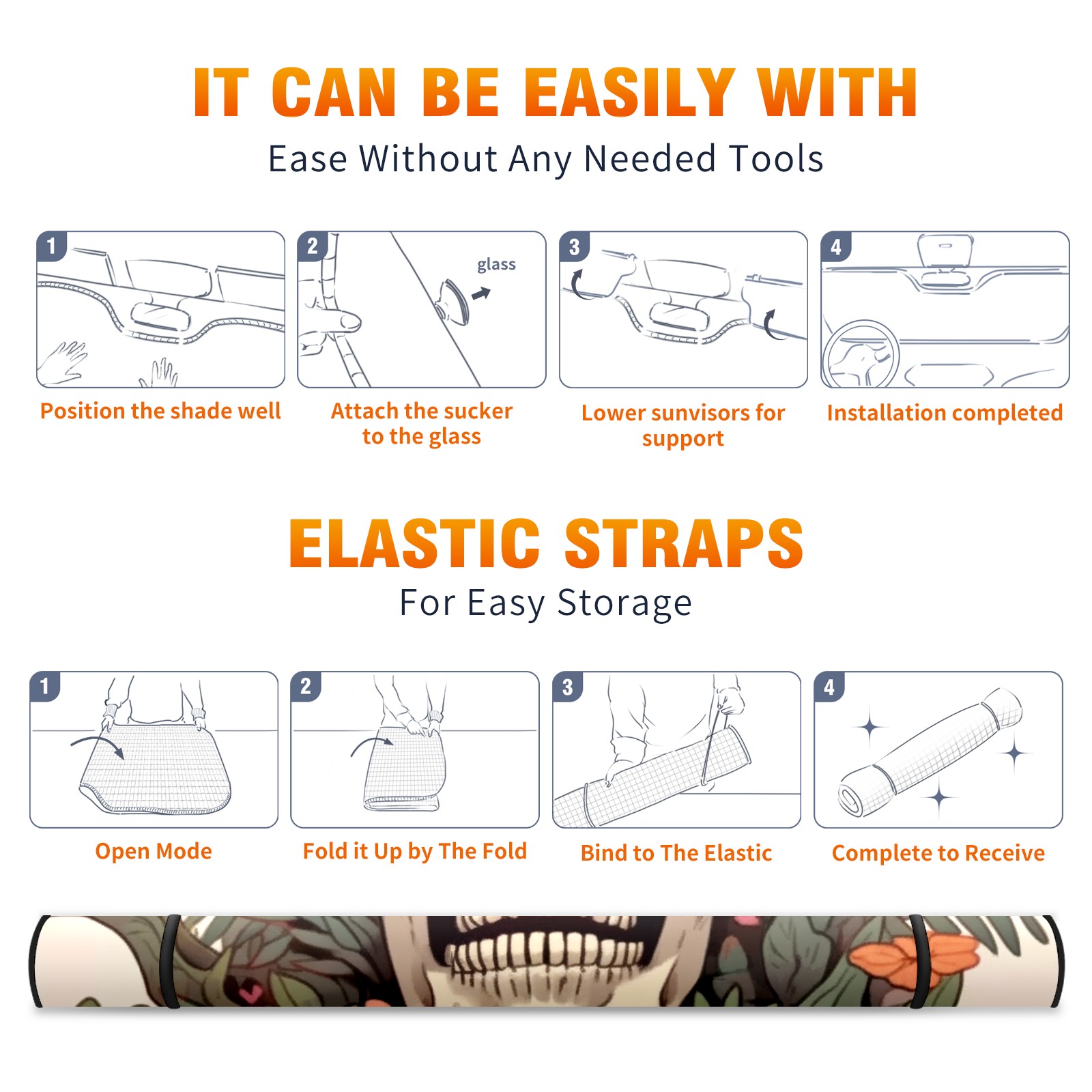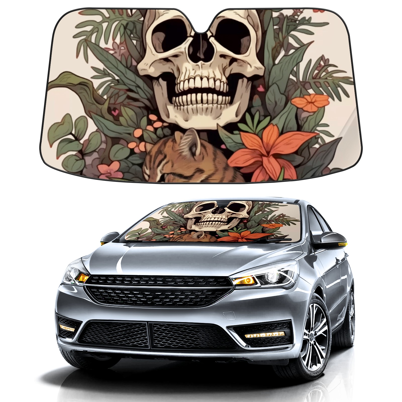 Car Windshield Sun Shade For Front Window Colorful Skull Foldable Vehicle Windshield Car Sun Visor Covers Automotive Window Protector Car Camping Privacy Sun Blocker