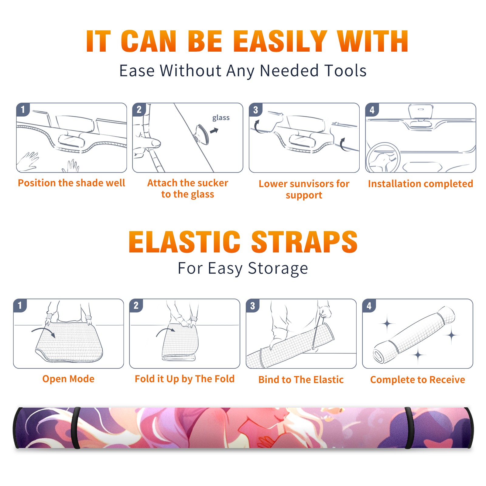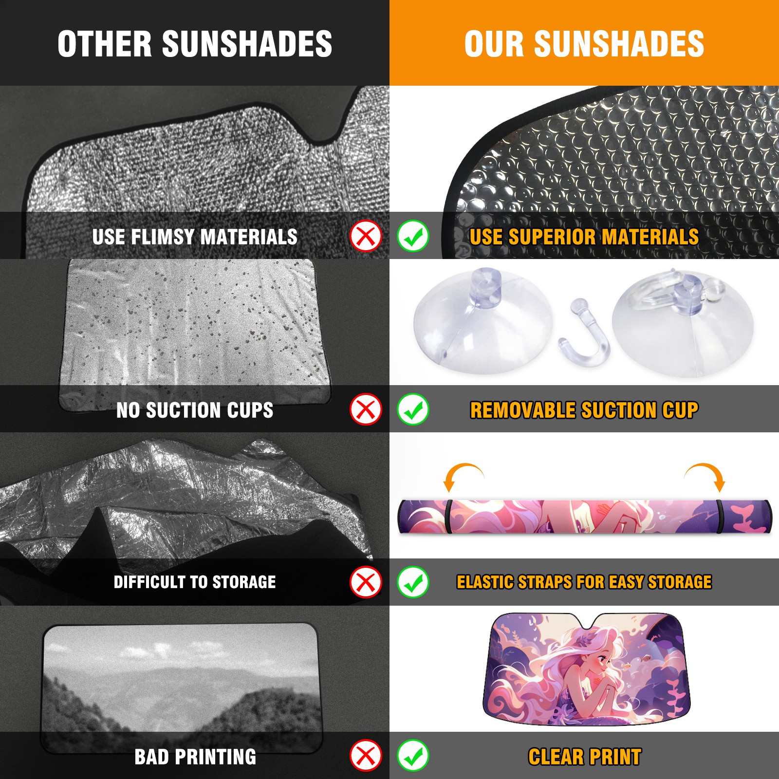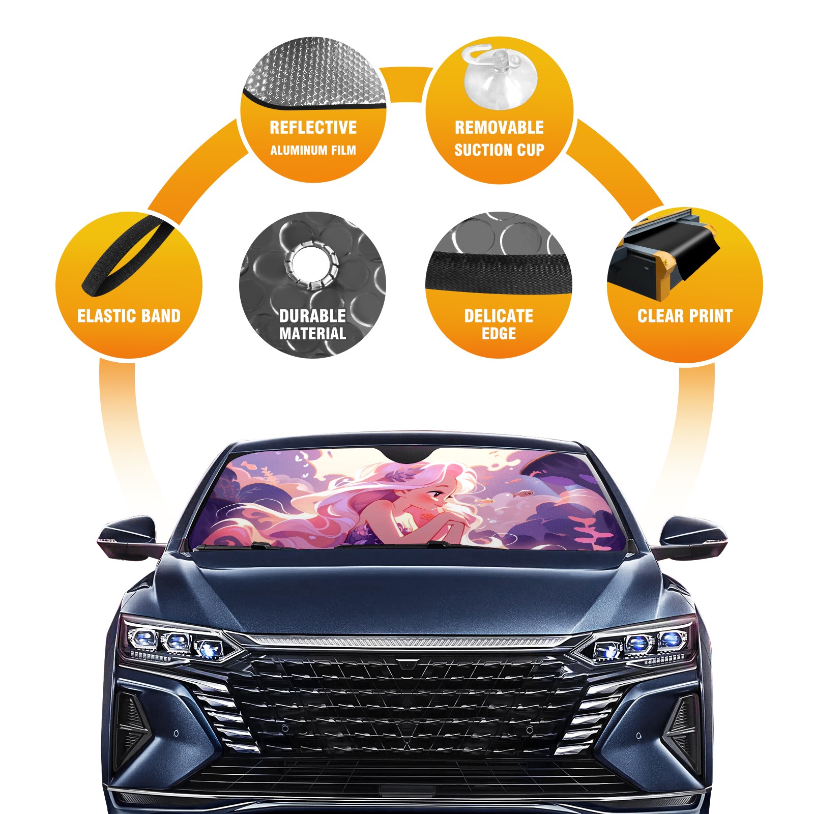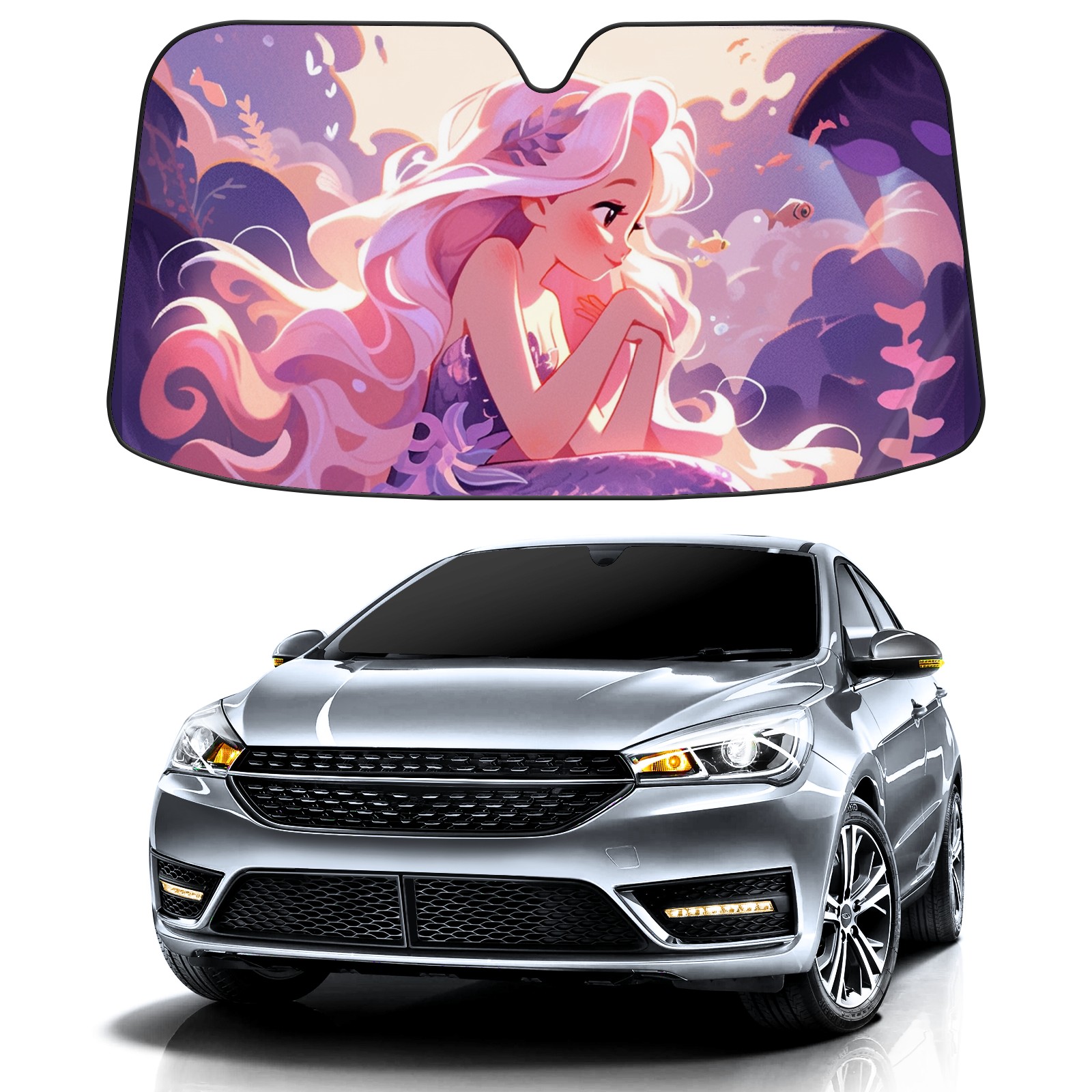 Car Windshield Sun Shade For Front Window Mermaid Foldable Vehicle Windshield Car Sun Visor Covers Automotive Window Protector Car Camping Privacy Sun Blocker