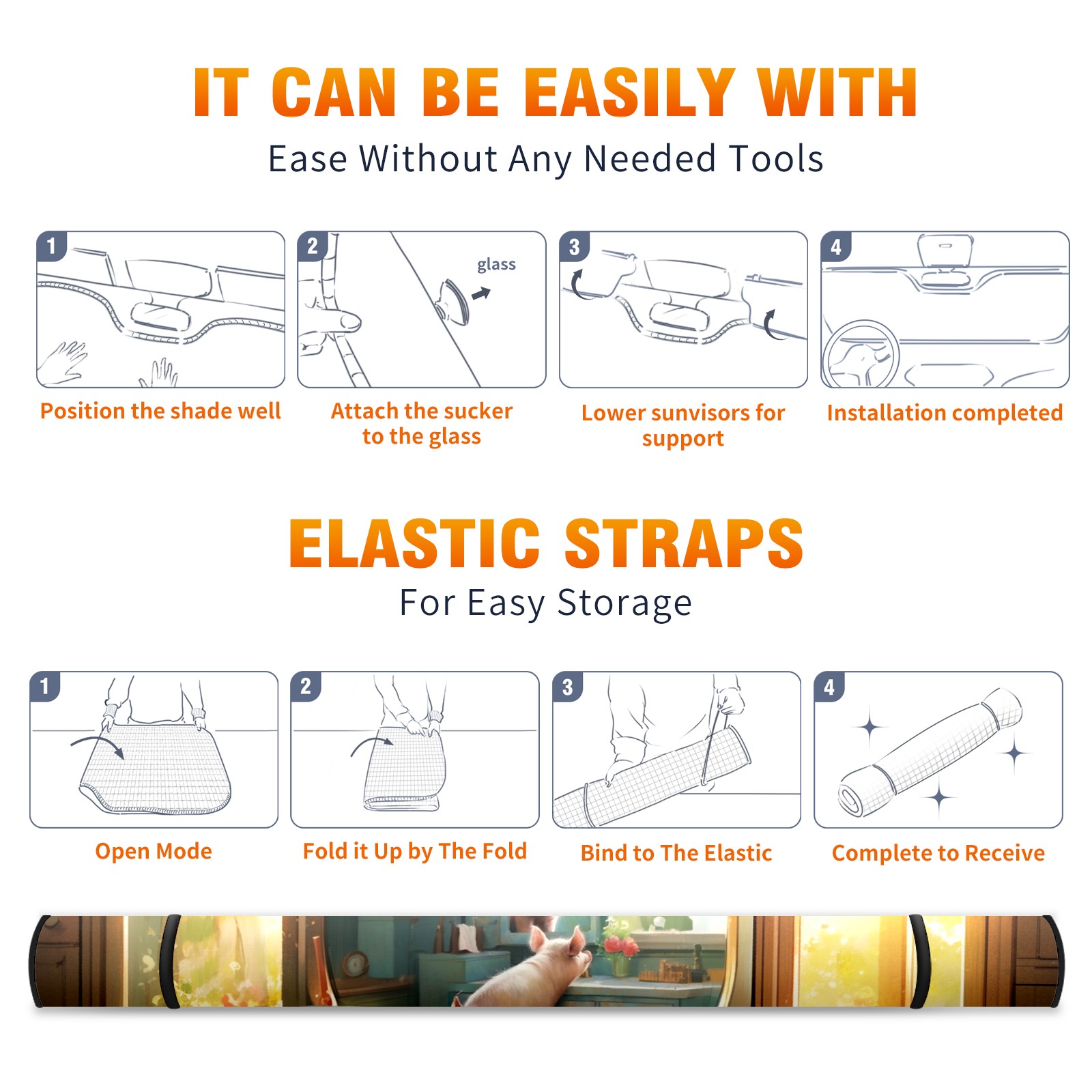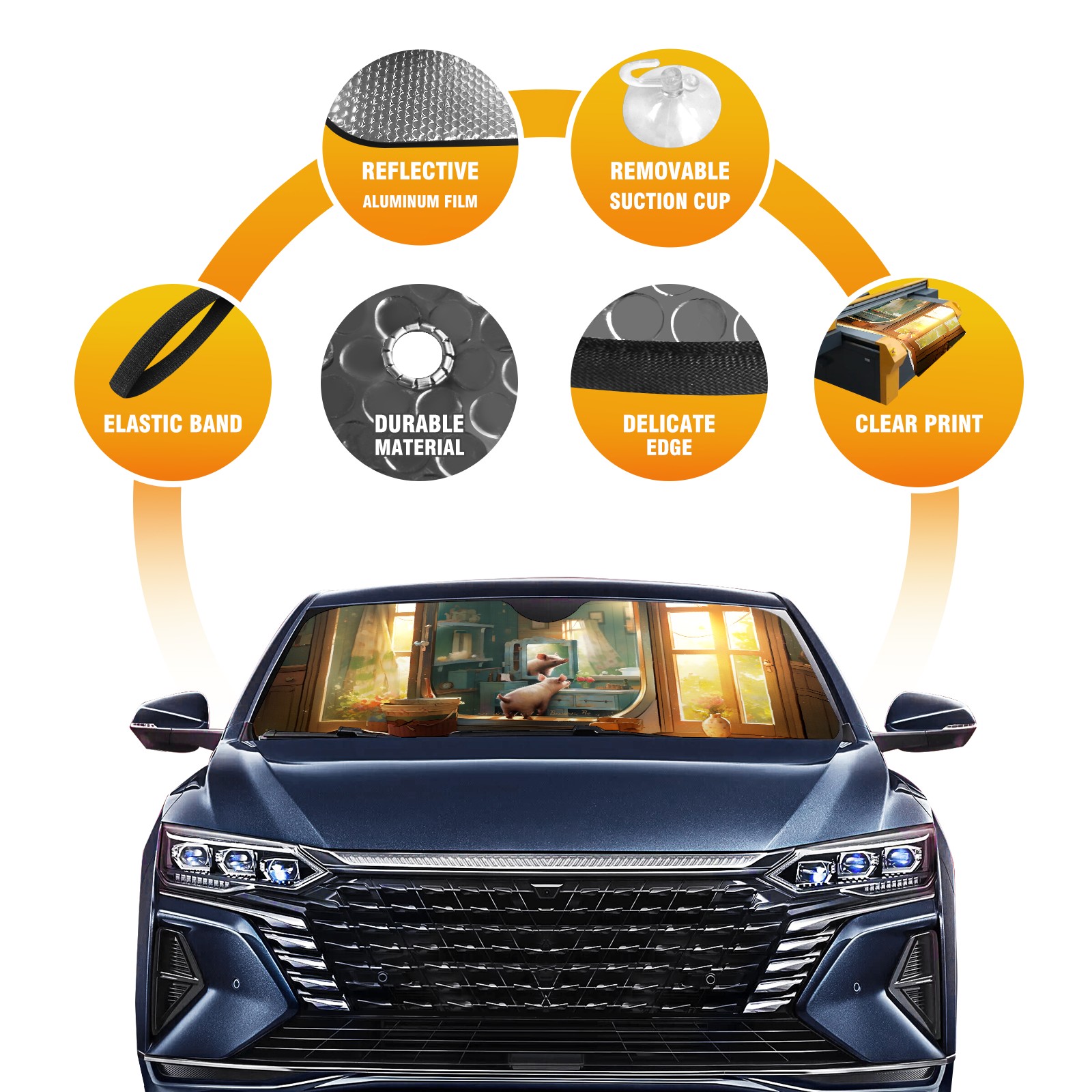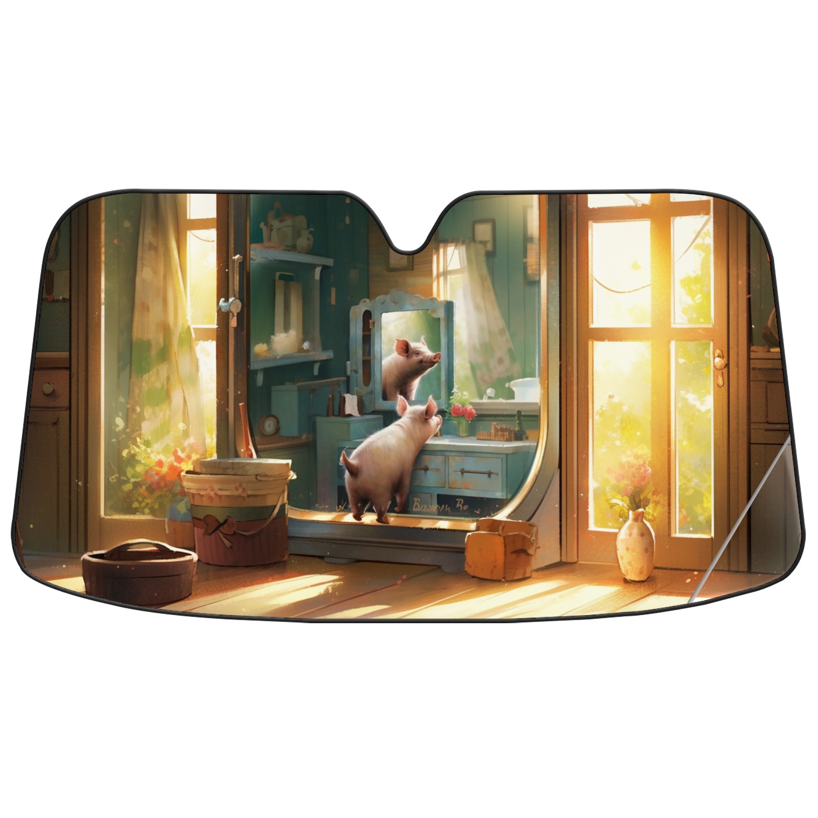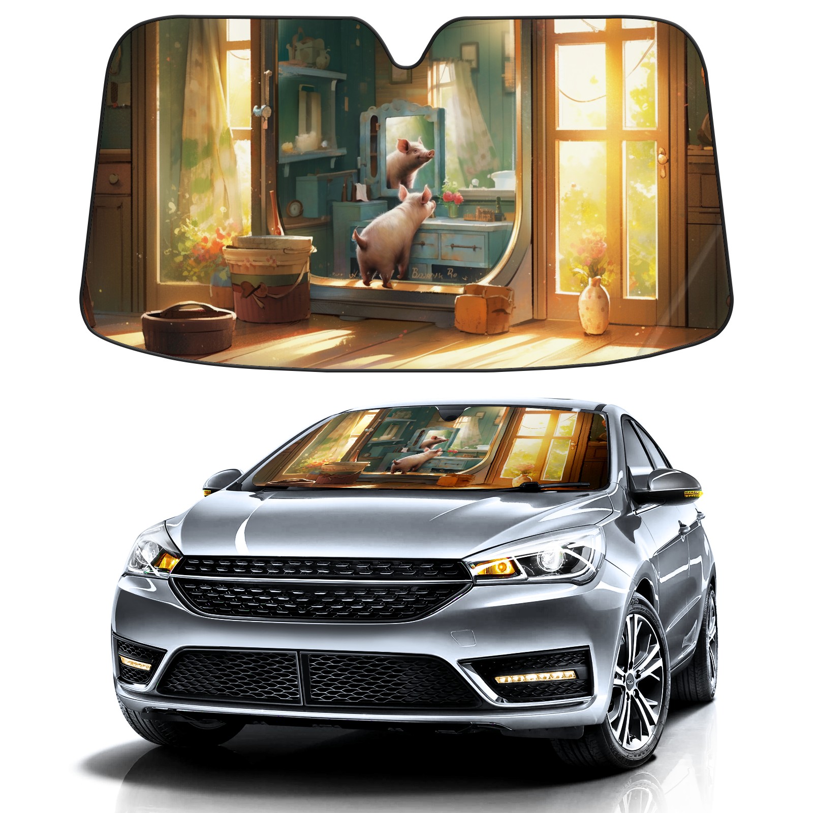 Car Windshield Sun Shade For Front Window Beautiful Pig Foldable Vehicle Windshield Car Sun Visor Covers Automotive Window Protector Car Camping Privacy Sun Blocker