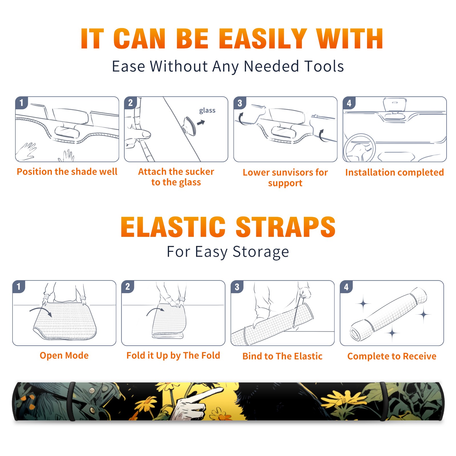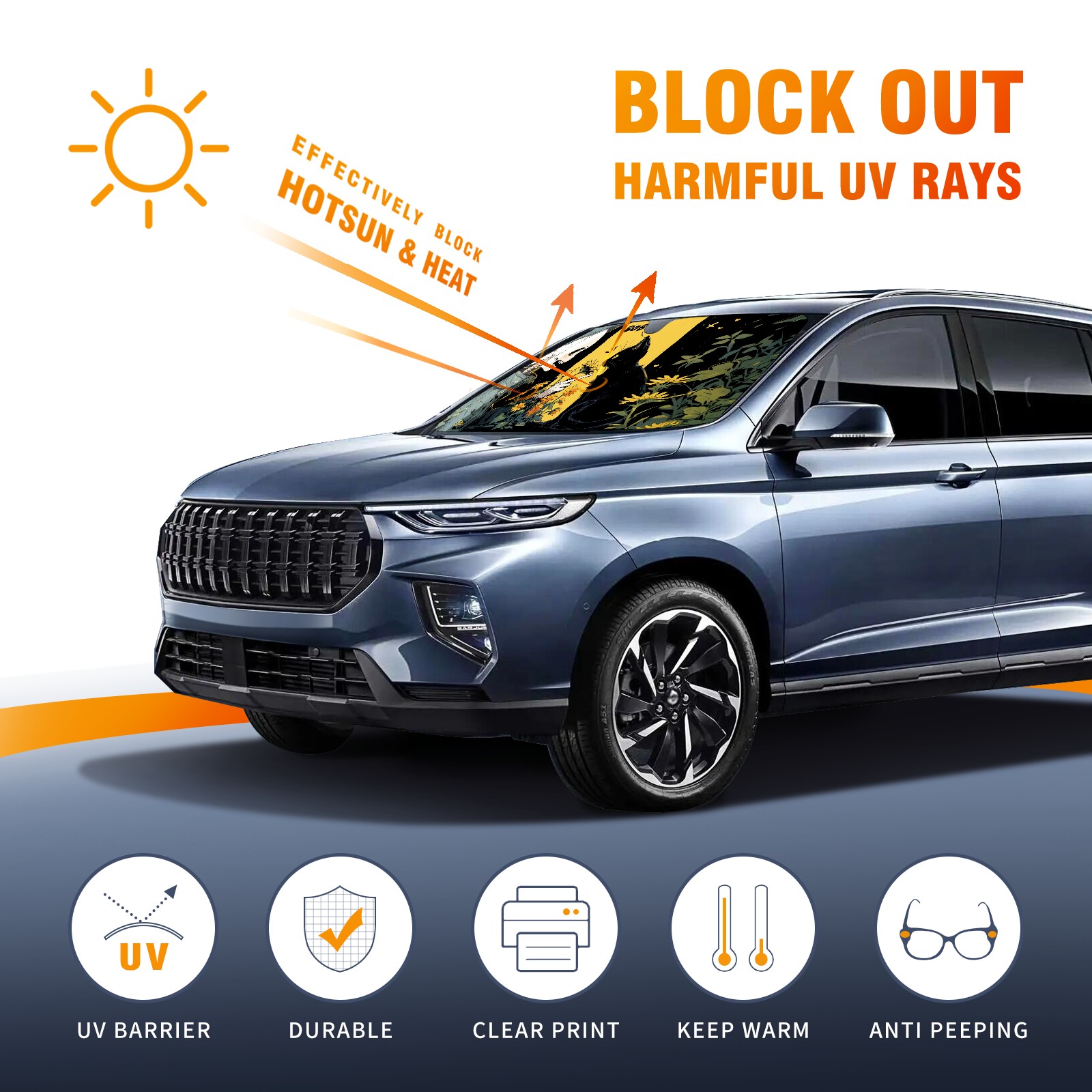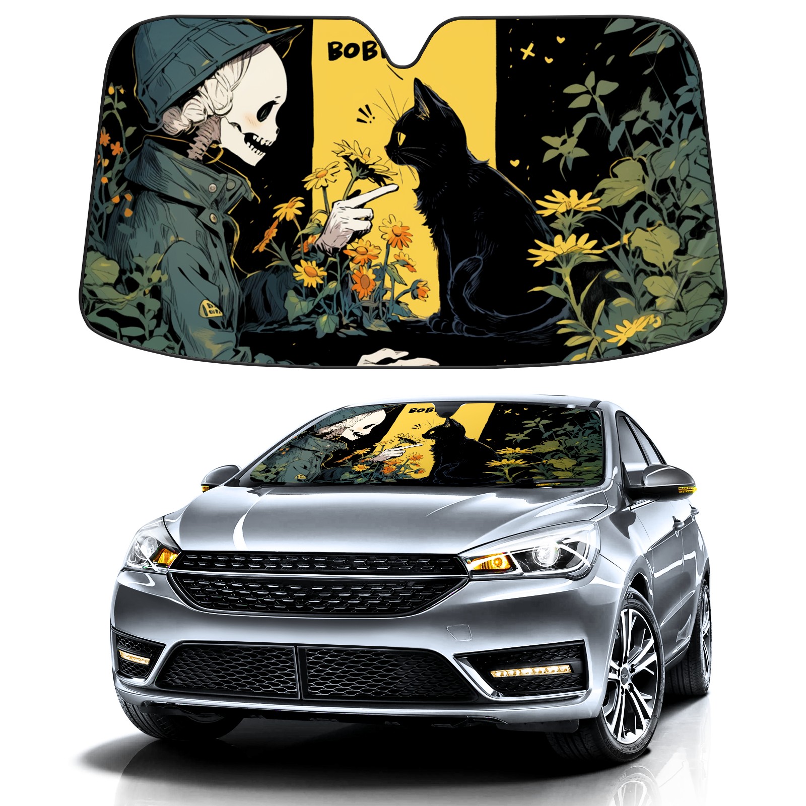 Car Windshield Sun Shade For Front Window Skeleton Girl Foldable Vehicle Windshield Car Sun Visor Covers Automotive Window Protector Car Camping Privacy Sun Blocker