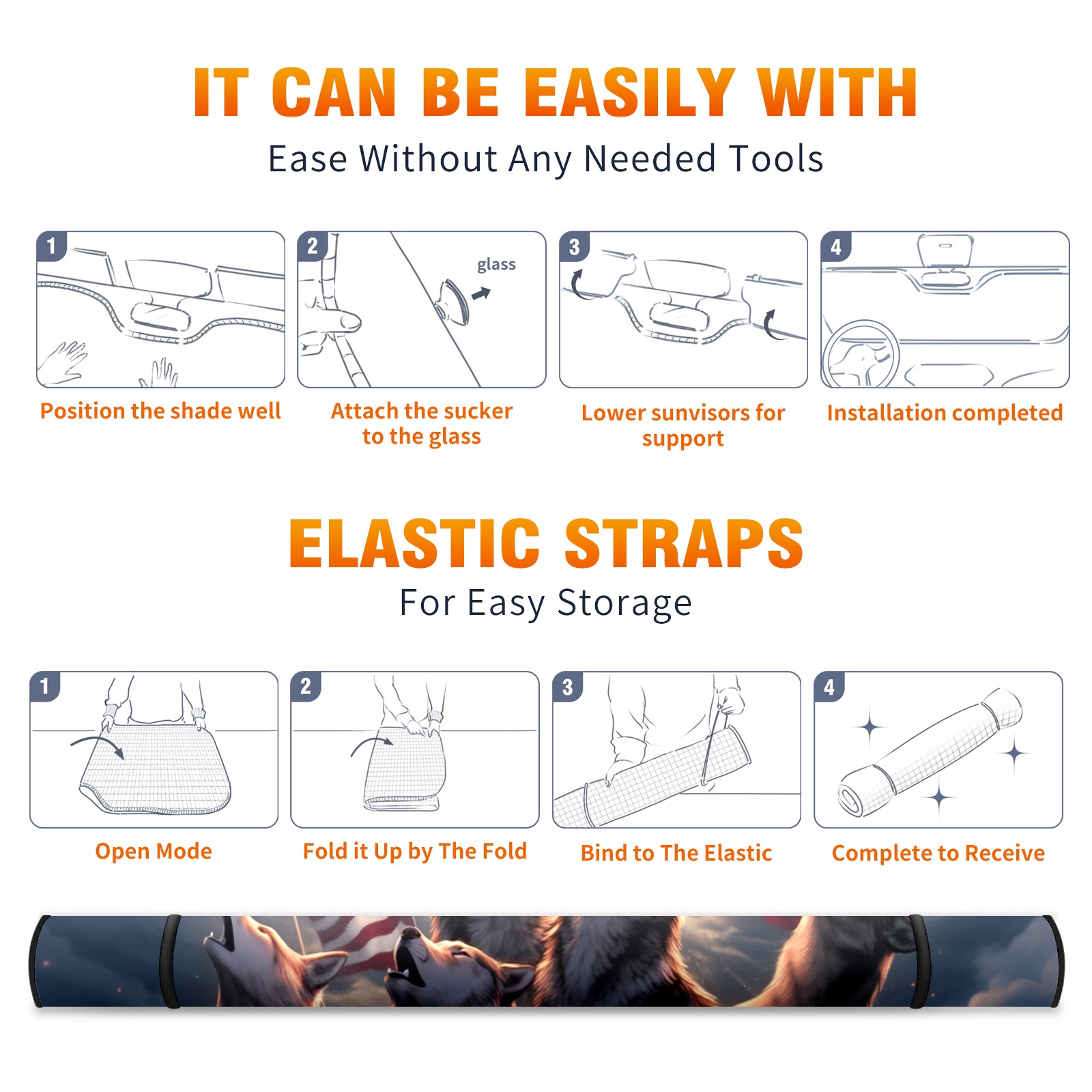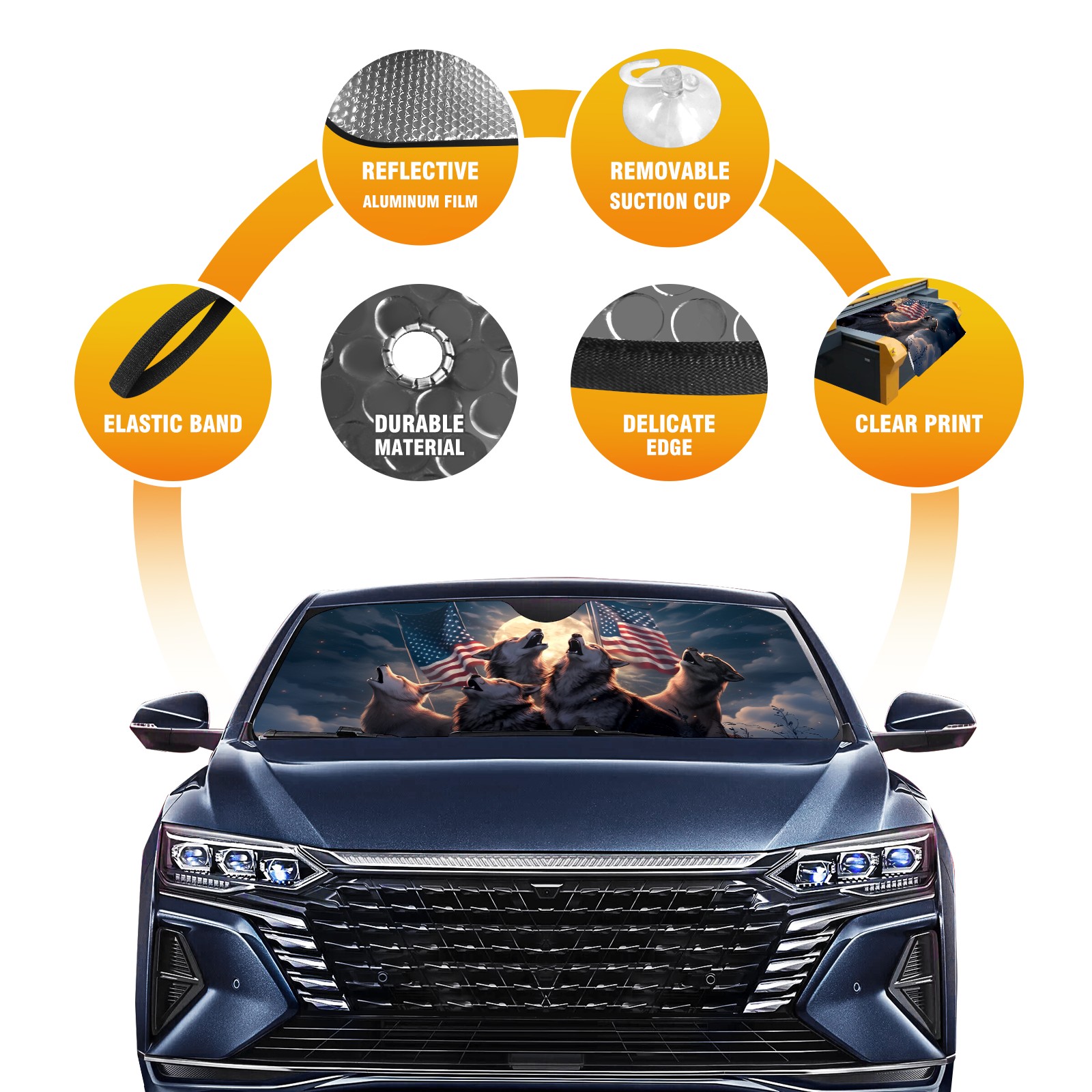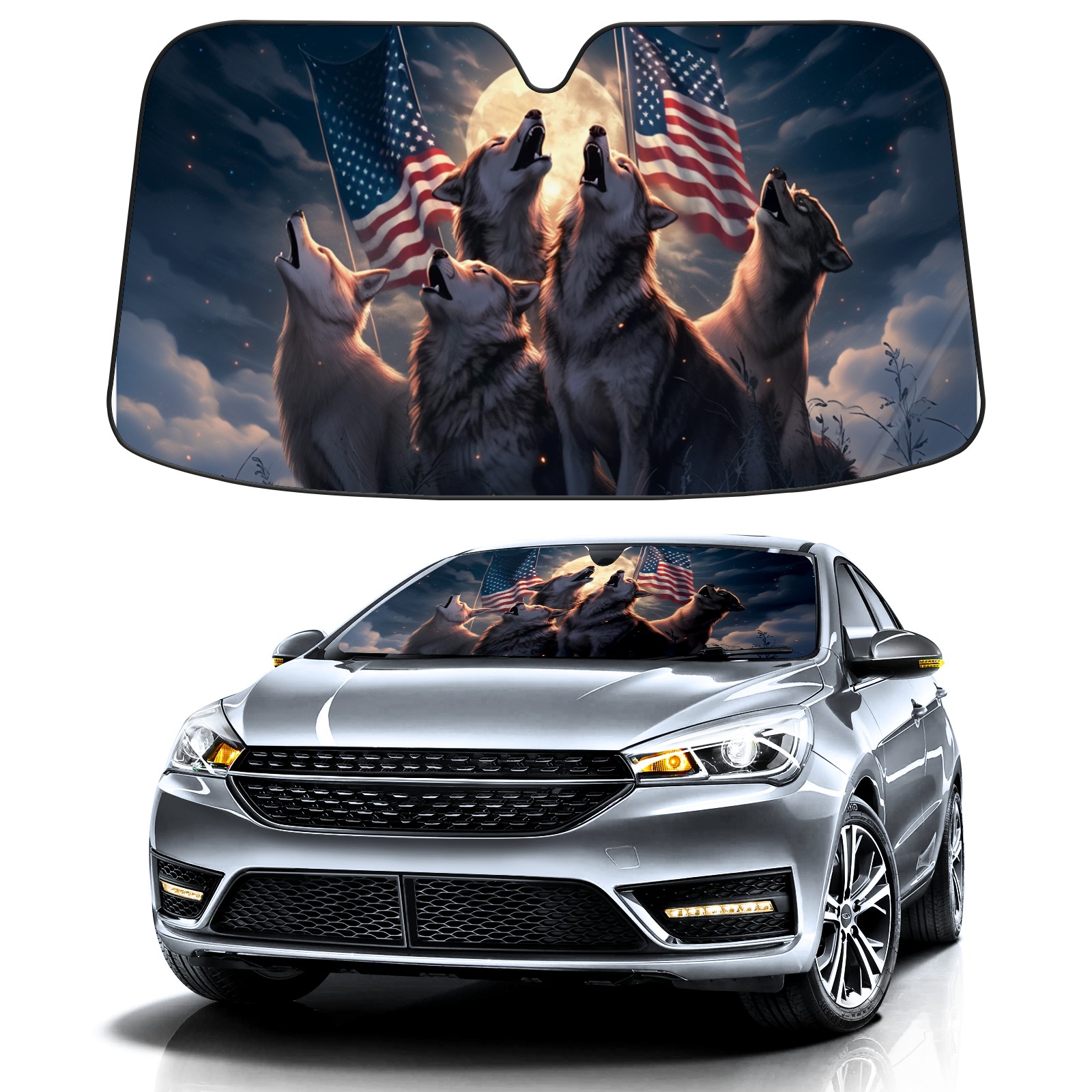 Car Windshield Sun Shade For Front Window Wolf Foldable Vehicle Windshield Car Sun Visor Covers Automotive Window Protector Car Camping Privacy Sun Blocker