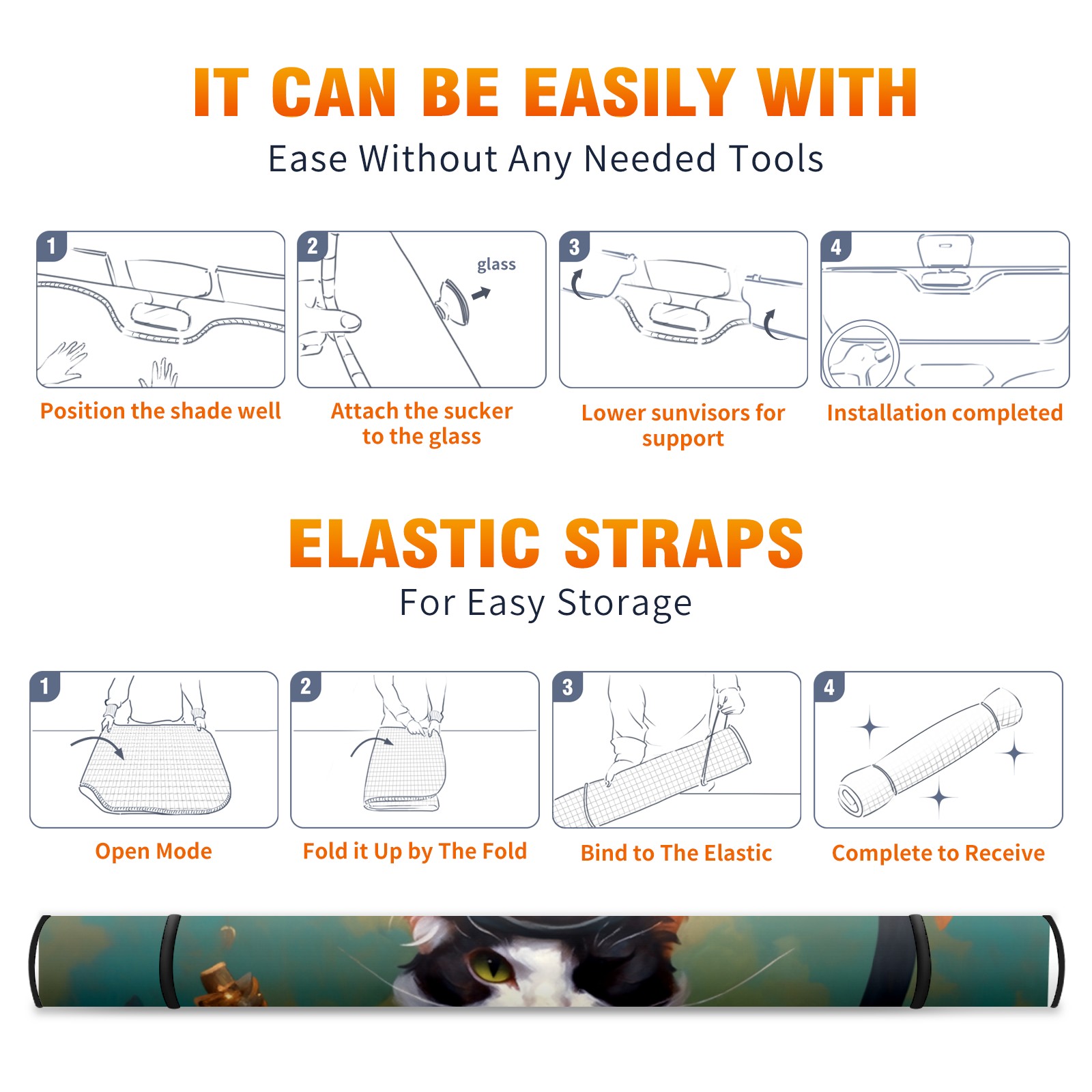 Car Windshield Sun Shade For Front Window Cute Cat Foldable Vehicle Windshield Car Sun Visor Covers Automotive Window Protector Car Camping Privacy Sun Blocker