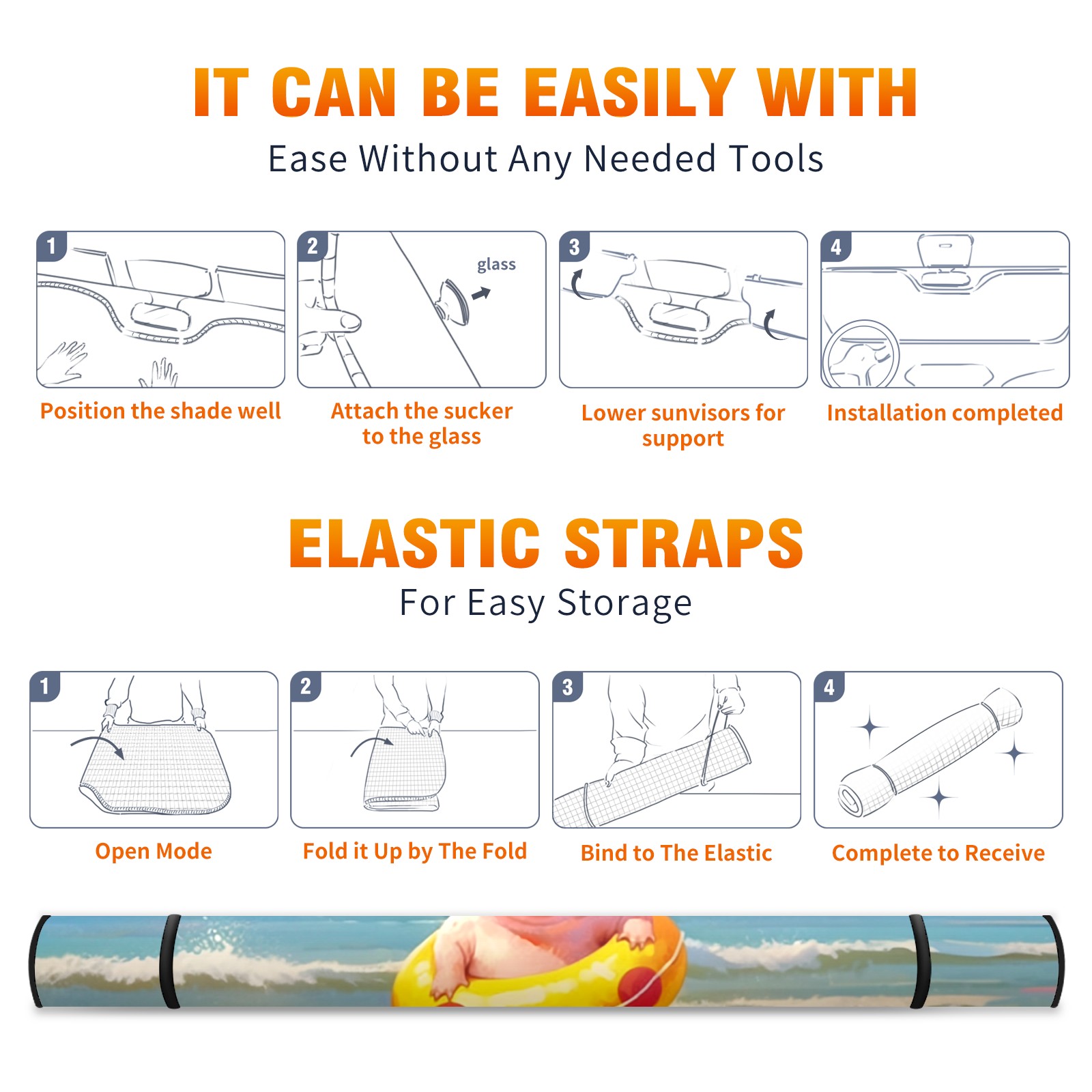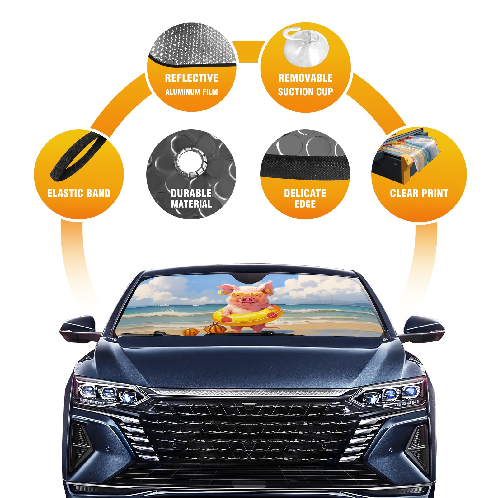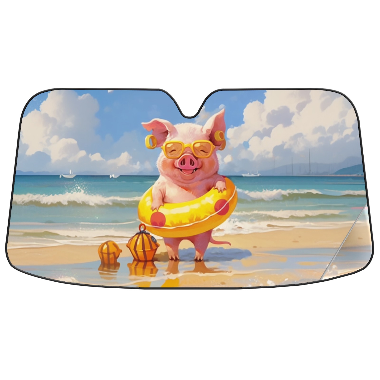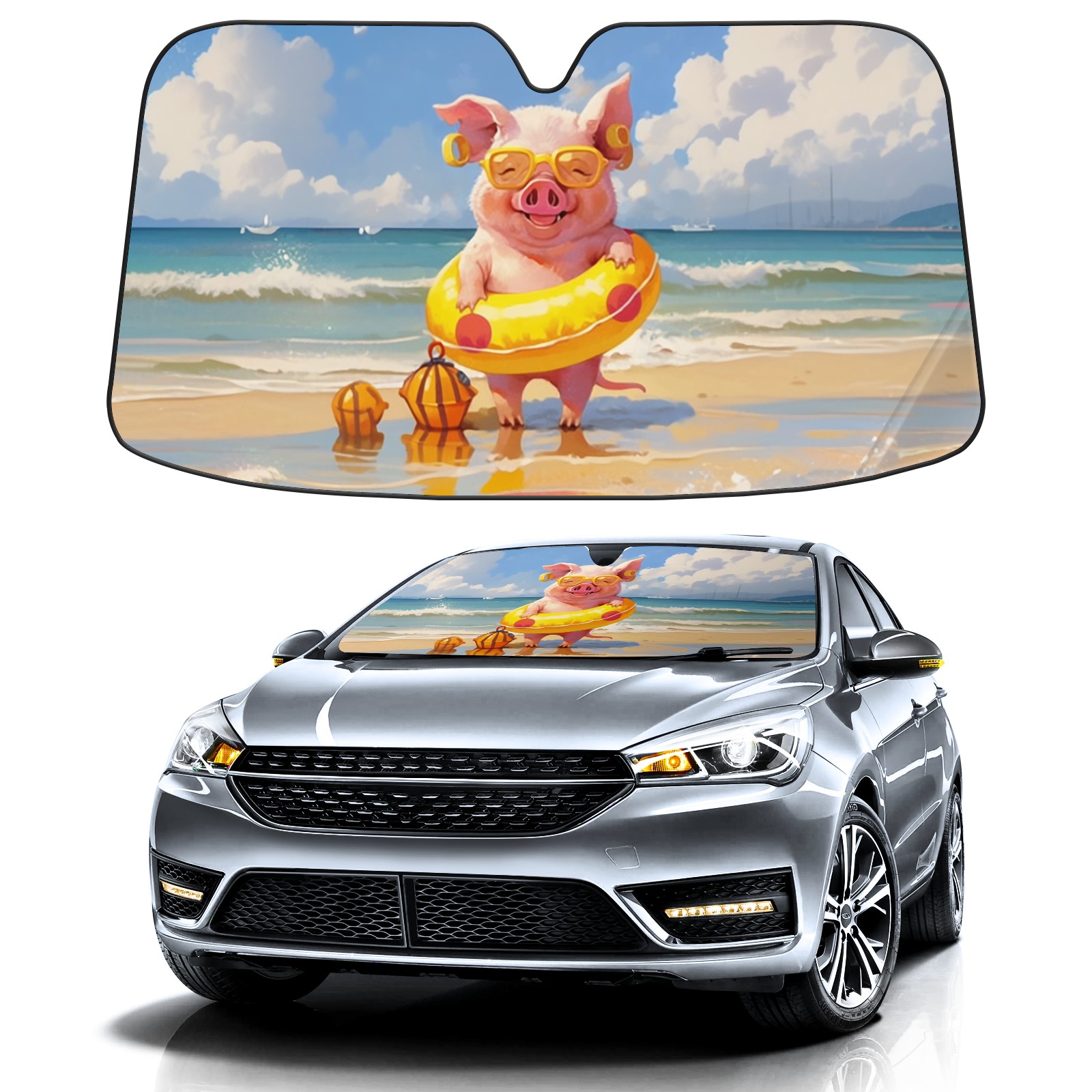 Car Windshield Sun Shade For Front Window Swimming Pig Foldable Vehicle Windshield Car Sun Visor Covers Automotive Window Protector Car Camping Privacy Sun Blocker