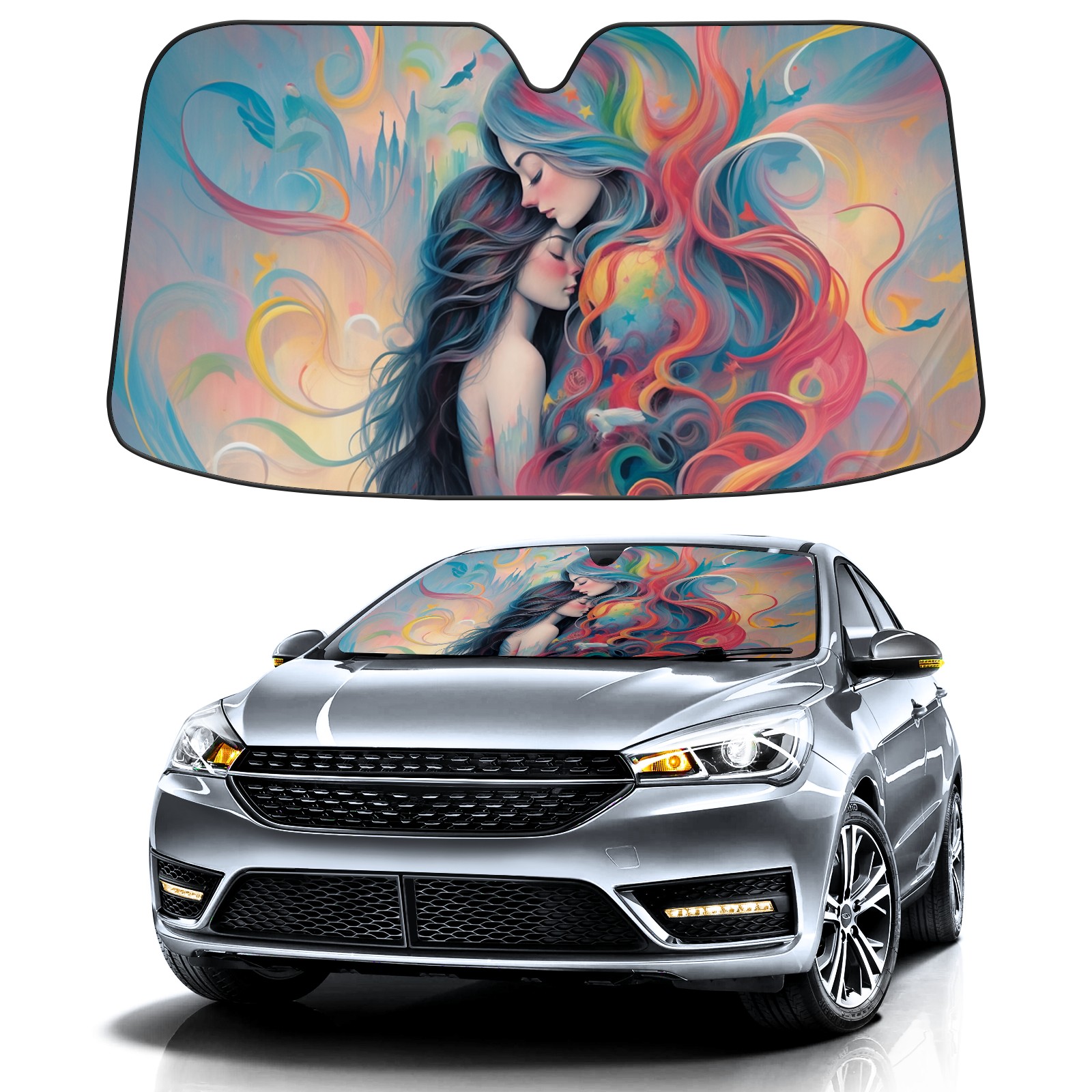 Car Windshield Sun Shade For Front Window Same Sex Girls Foldable Vehicle Windshield Car Sun Visor Covers Automotive Window Protector Car Camping Privacy Sun Blocker