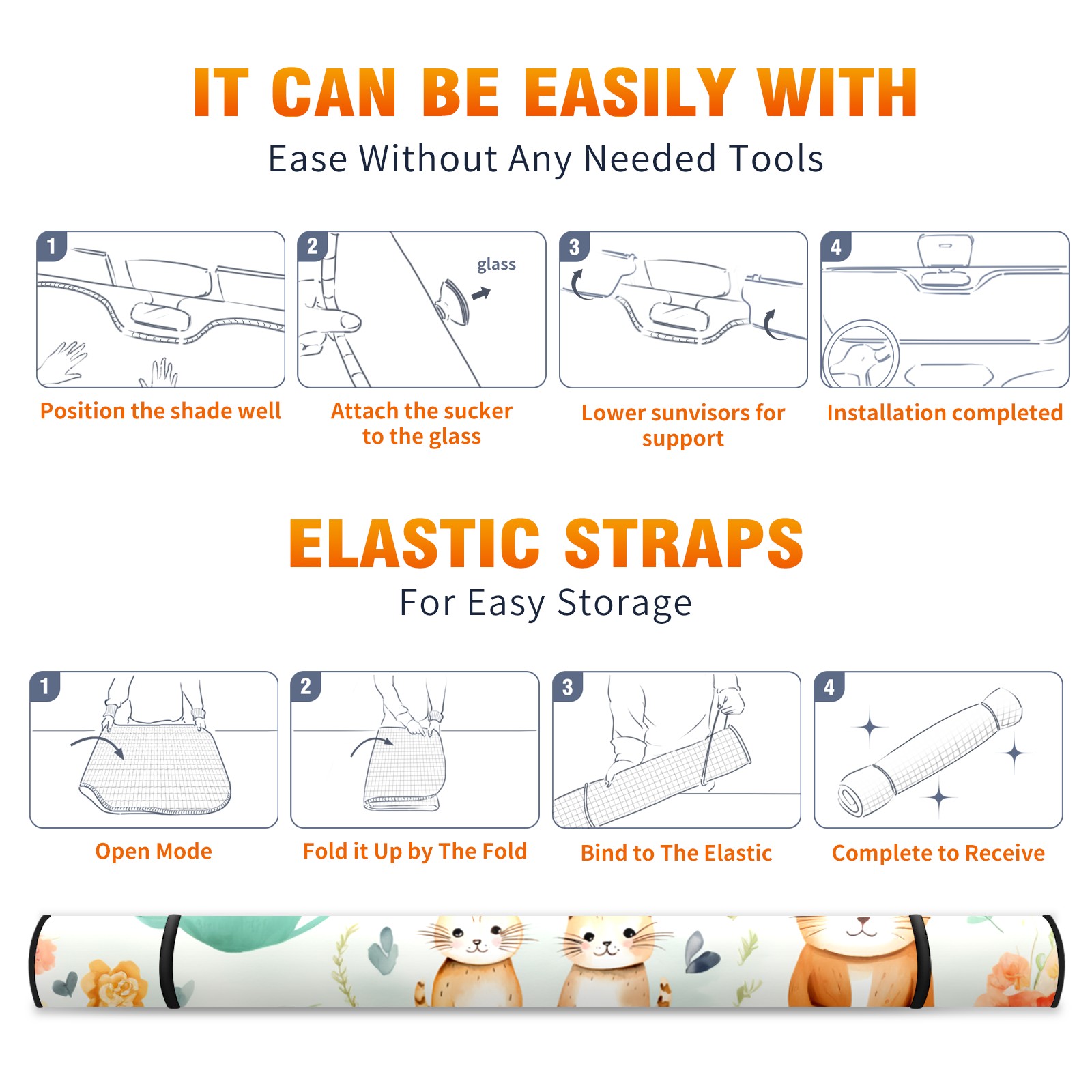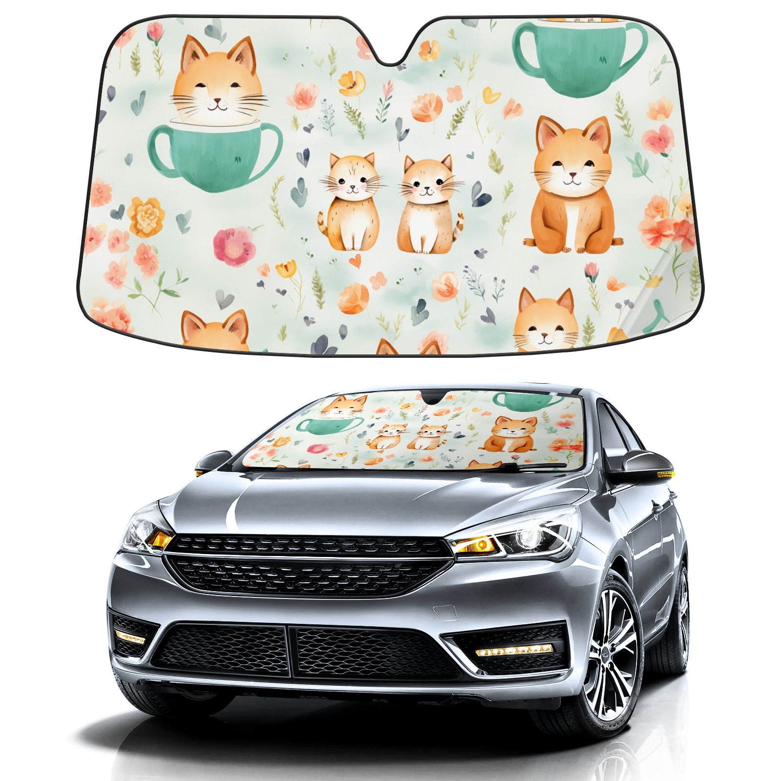 Car Windshield Sun Shade For Front Window Cat Print Foldable Vehicle Windshield Car Sun Visor Covers Automotive Window Protector Car Camping Privacy Sun Blocker