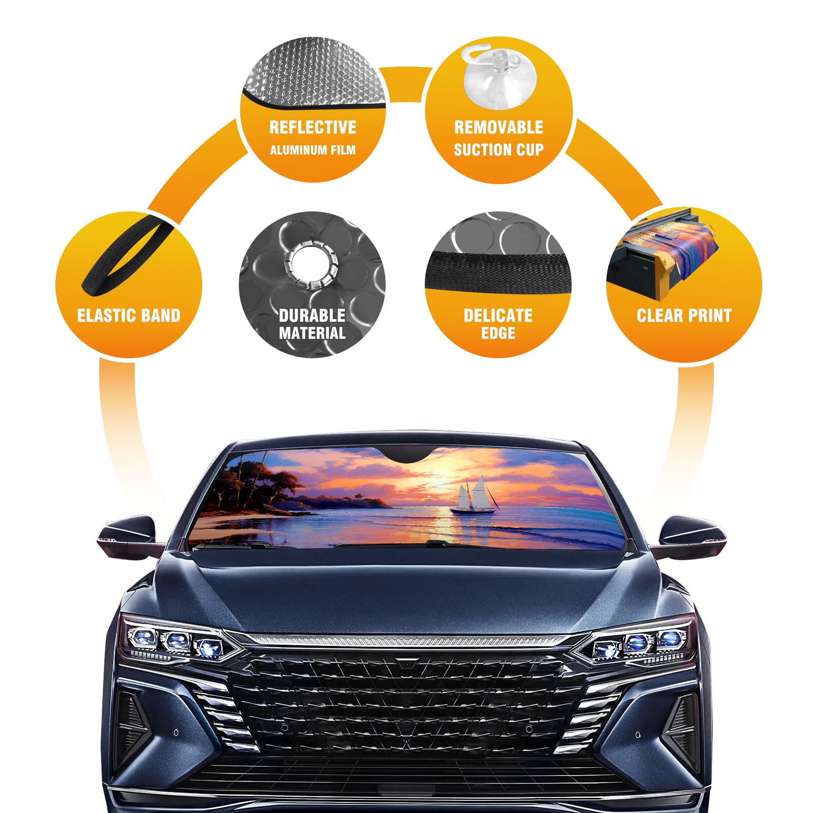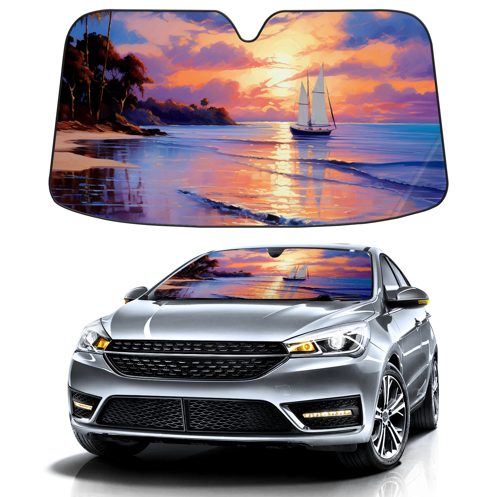 • Diameter /Size 63"L x 33.5"W Made from excellent materials which makes it sturdy and protects the car from the sun. Easy to use and pack. Makes the interior of the car cooler.You can easily stash the sunshade in the storage bag or store long term.It open and closes easy. Also the leather storage bag is durable and easy to put the umbrella back into.This windshield sunshade provides complete coverage and keeps your car interior cool under direct sun. It is easy to open and position under the windshield and around the rear-view mirror. Makes Your Car Easy To Identify, Perfect For Finding Your Car In Crowded Parking Lots And Garages.Great Choice: It Is A Great Gift For Dad, Boyfriend, Brother, Brother And Uncle, Friends, Classmates, Family And So On. Notice: Due To Difference Computer Monitors, The Color Maybe Slightly Different From Picture. As Different Measurement Methods, Measurement Data Will Float Within 2%.I Hope You Understand. If You Have Any Question About The Item Please Do Not Hesitate To Contact Us Immediately And We Will Give You A Satisfactory Reply Within 24 Hours.