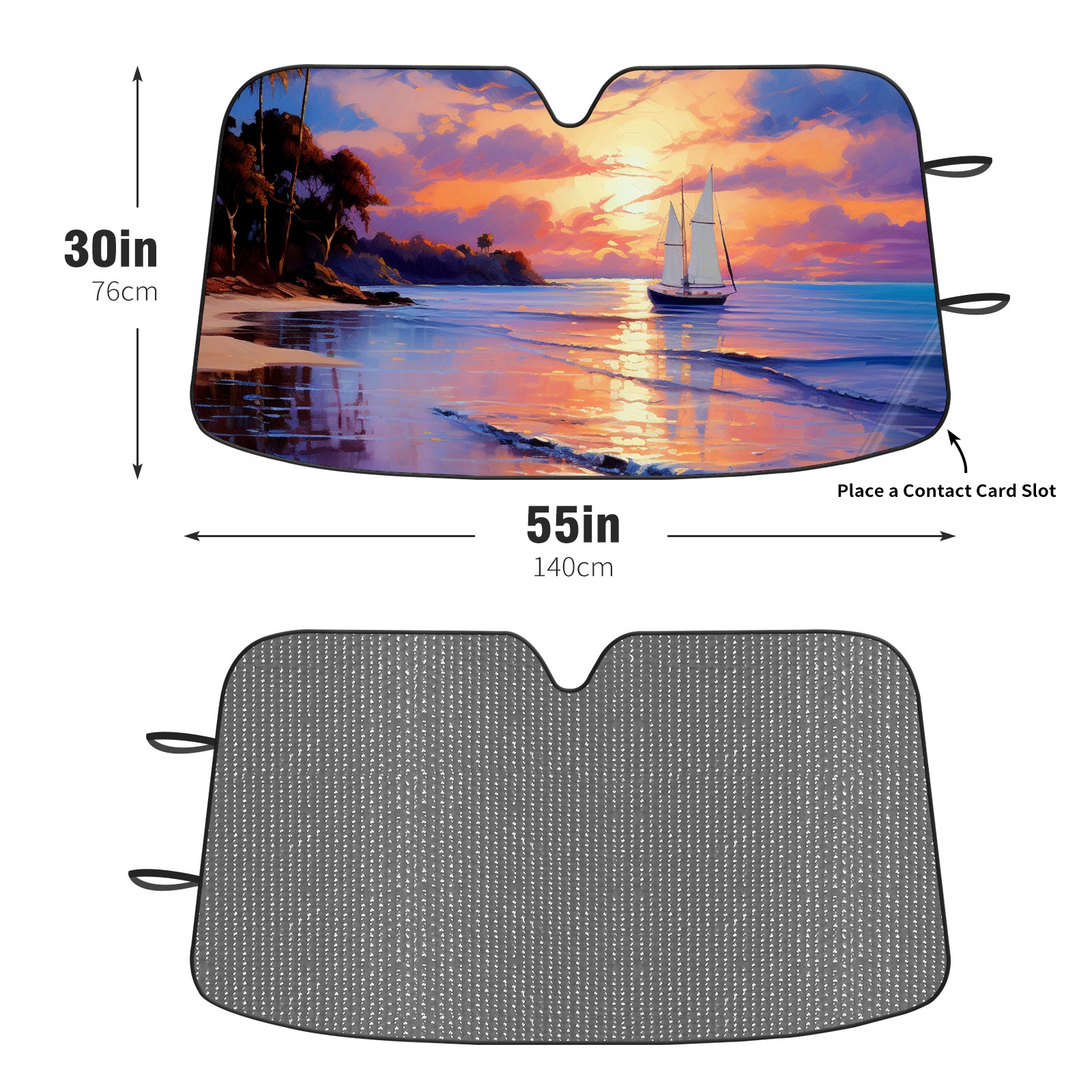 Diameter /Size 63"L x 33.5"W Made from excellent materials which makes it sturdy and protects the car from the sun. Easy to use and pack. Makes the interior of the car cooler.You can easily stash the sunshade in the storage bag or store long term.It open and closes easy. Also the leather storage bag is durable and easy to put the umbrella back into.This windshield sunshade provides complete coverage and keeps your car interior cool under direct sun. It is easy to open and position under the windshield and around the rear-view mirror. Makes Your Car Easy To Identify, Perfect For Finding Your Car In Crowded Parking Lots And Garages.Great Choice: It Is A Great Gift For Dad, Boyfriend, Brother, Brother And Uncle, Friends, Classmates, Family And So On. Notice: Due To Difference Computer Monitors, The Color Maybe Slightly Different From Picture. As Different Measurement Methods, Measurement Data Will Float Within 2%.I Hope You Understand. If You Have Any Question About The Item Please Do Not Hesitate To Contact Us Immediately And We Will Give You A Satisfactory Reply Within 24 Hours.