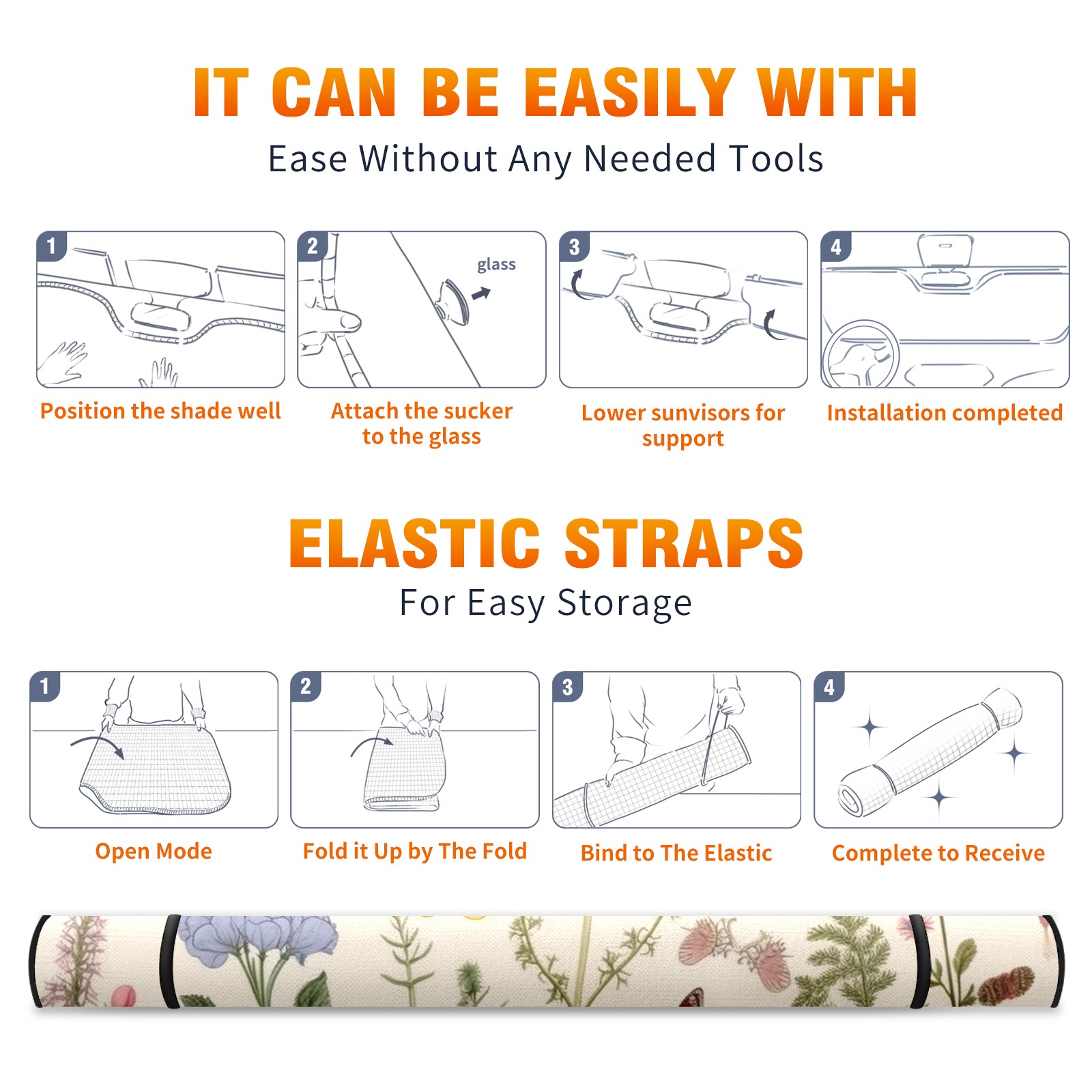 Car Windshield Sun Shade For Front Window Floral Foldable Vehicle Windshield Car Sun Visor Covers Automotive Window Protector Car Camping Privacy Sun Blocker