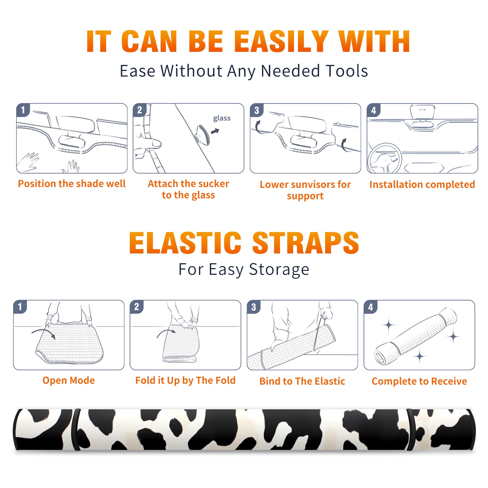 Car Windshield Sun Shade For Front Window Cow Foldable Vehicle Windshield Car Sun Visor Covers Automotive Window Protector Car Camping Privacy Sun Blocker