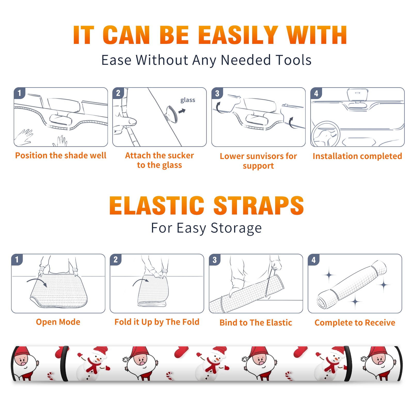 Car Windshield Sun Shade For Front Window Christmas Yeti Foldable Vehicle Windshield Car Sun Visor Covers Automotive Window Protector Car Camping Privacy Sun Blocker