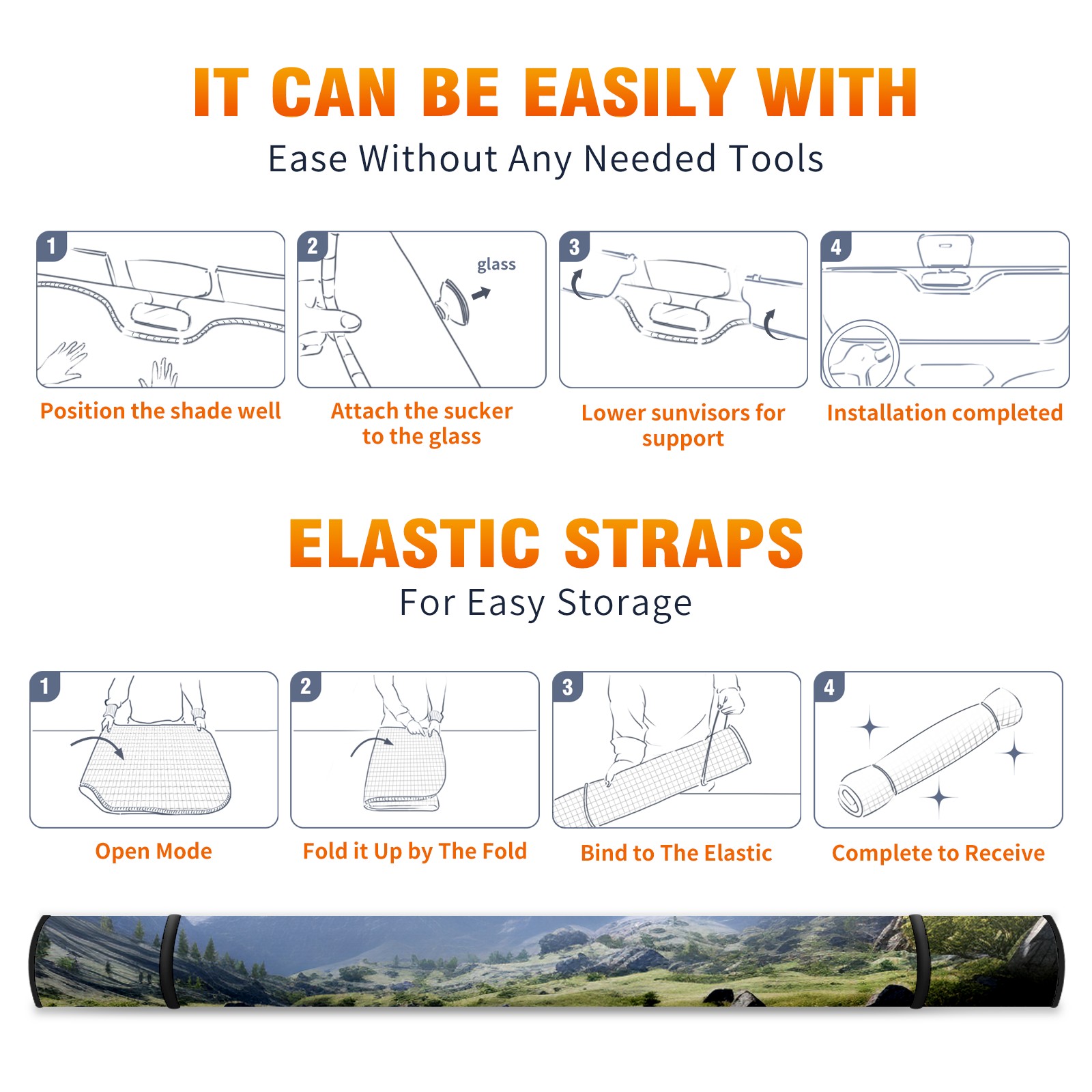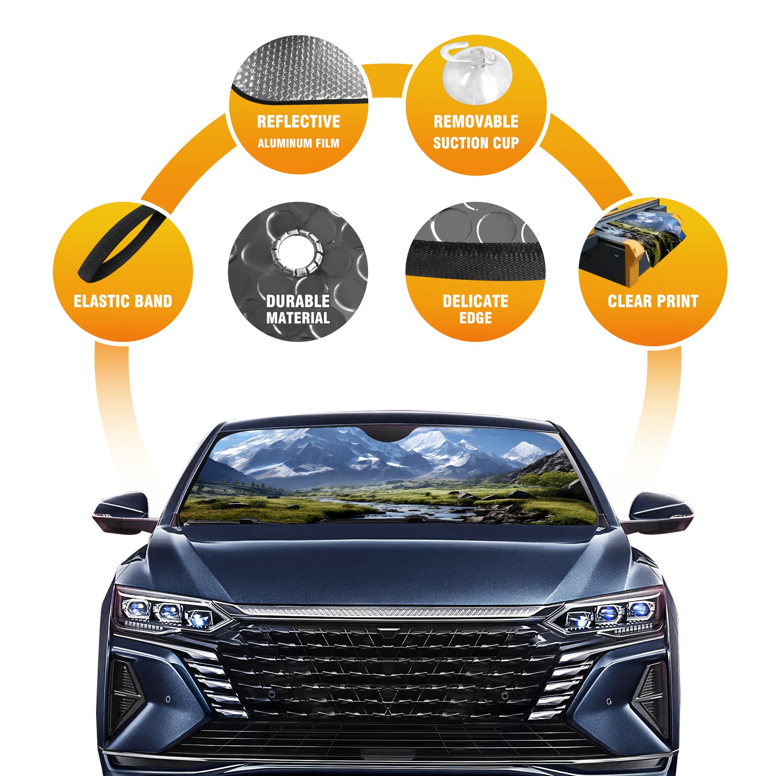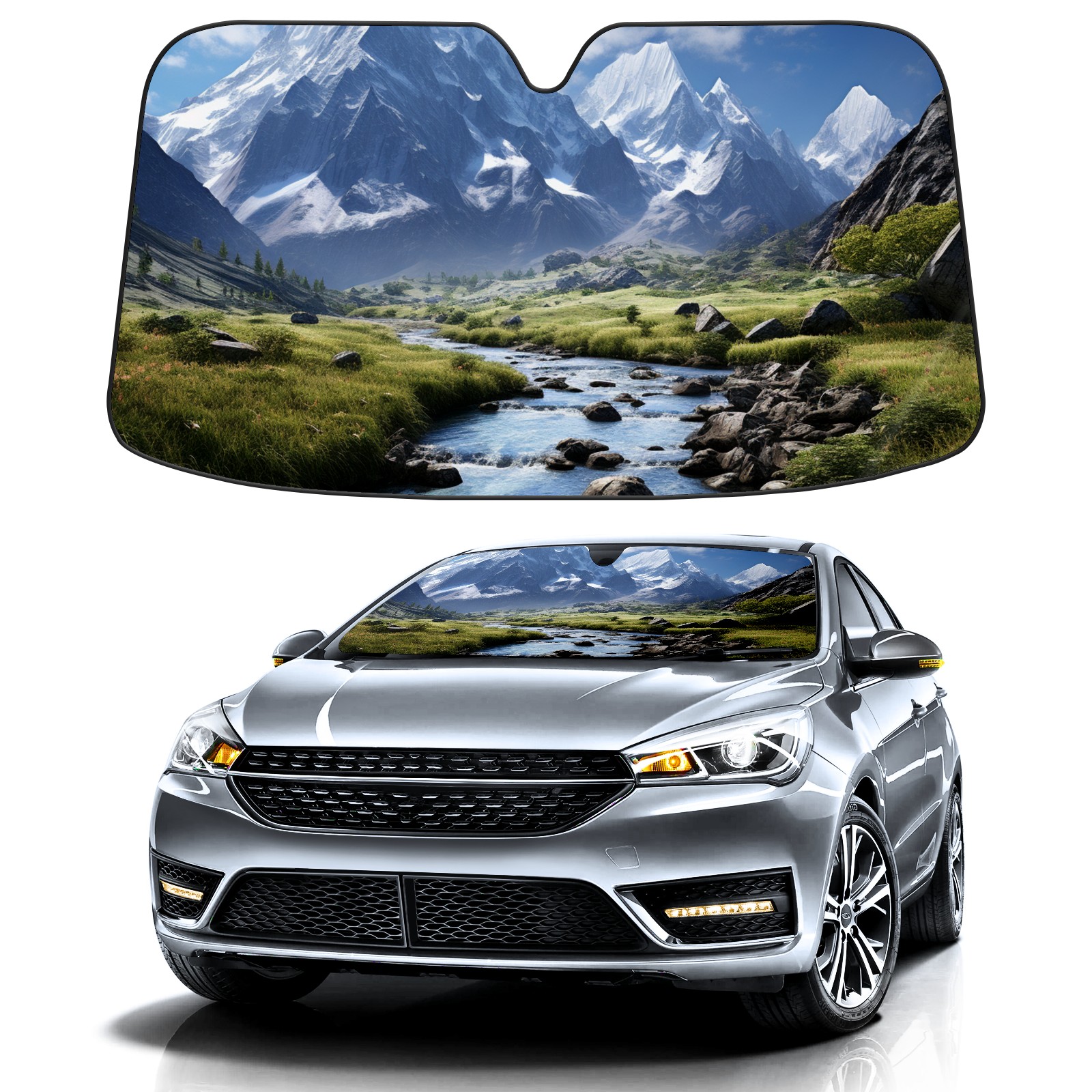 Car Windshield Sun Shade For Front Window Mountain Landscape Foldable Vehicle Windshield Car Sun Visor Covers Automotive Window Protector Car Camping Privacy Sun Blocker