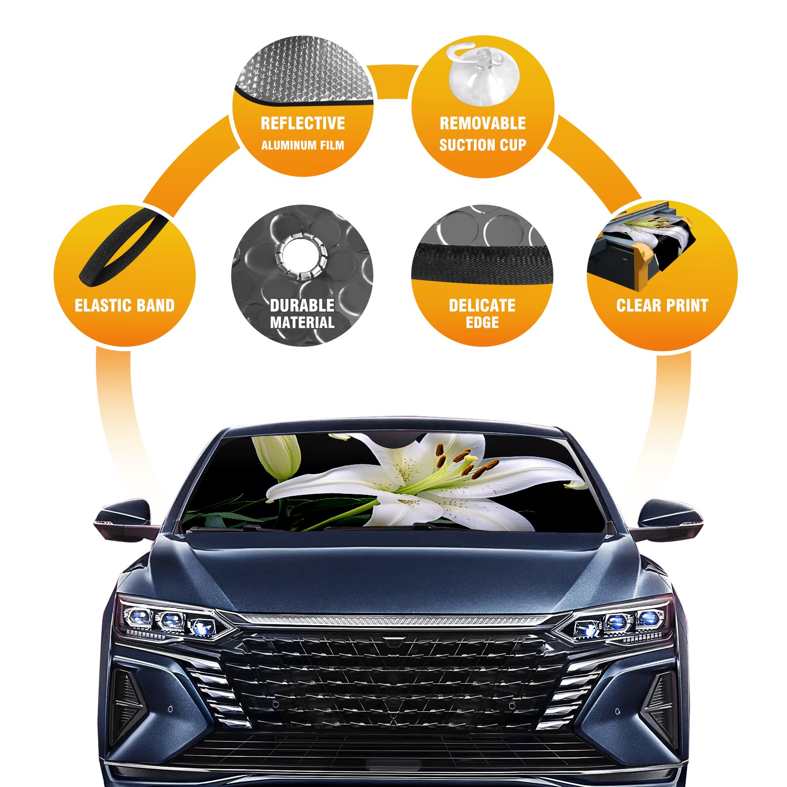 Car Windshield Sun Shade For Front Window Lily Foldable Vehicle Windshield Car Sun Visor Covers Automotive Window Protector Car Camping Privacy Sun Blocker
