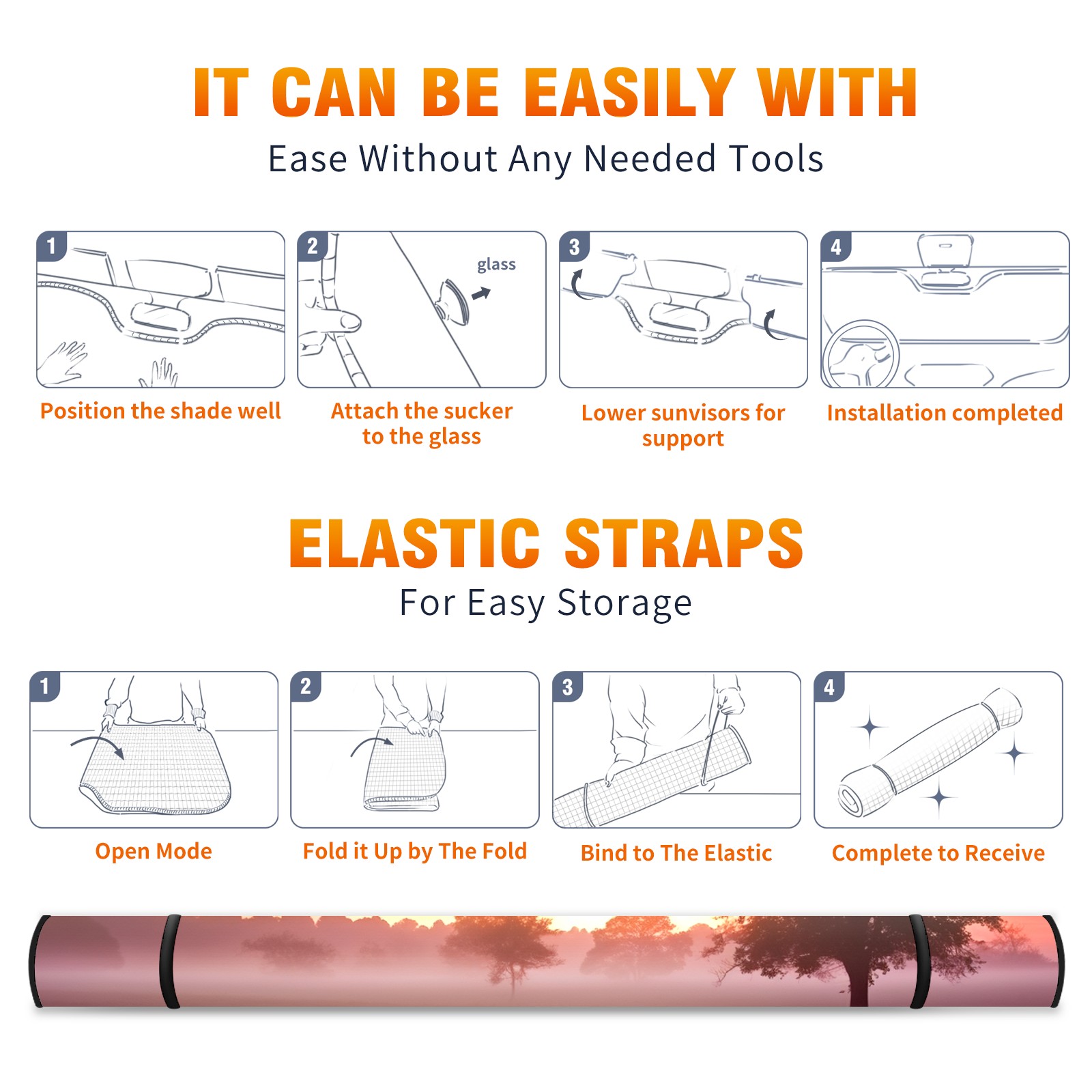 • Diameter /Size 63"L x 33.5"W Made from excellent materials which makes it sturdy and protects the car from the sun. Easy to use and pack. Makes the interior of the car cooler.You can easily stash the sunshade in the storage bag or store long term.It open and closes easy. Also the leather storage bag is durable and easy to put the umbrella back into.This windshield sunshade provides complete coverage and keeps your car interior cool under direct sun. It is easy to open and position under the windshield and around the rear-view mirror. Makes Your Car Easy To Identify, Perfect For Finding Your Car In Crowded Parking Lots And Garages.Great Choice: It Is A Great Gift For Dad, Boyfriend, Brother, Brother And Uncle, Friends, Classmates, Family And So On. Notice: Due To Difference Computer Monitors, The Color Maybe Slightly Different From Picture. As Different Measurement Methods, Measurement Data Will Float Within 2%.I Hope You Understand. If You Have Any Question About The Item Please Do Not Hesitate To Contact Us Immediately And We Will Give You A Satisfactory Reply Within 24 Hours.