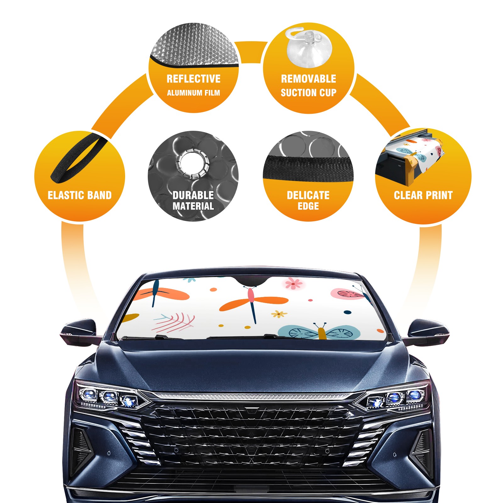 Car Windshield Sun Shade For Front Window Dragonfly Simple Drawing Foldable Vehicle Windshield Car Sun Visor Covers Automotive Window Protector Car Camping Privacy Sun Blocker