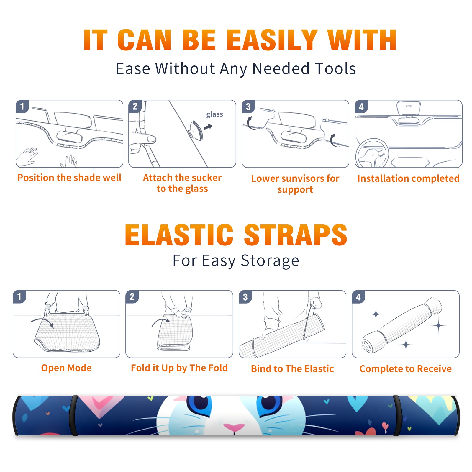 • Diameter /Size 63"L x 33.5"W Made from excellent materials which makes it sturdy and protects the car from the sun. Easy to use and pack. Makes the interior of the car cooler.You can easily stash the sunshade in the storage bag or store long term.It open and closes easy. Also the leather storage bag is durable and easy to put the umbrella back into.This windshield sunshade provides complete coverage and keeps your car interior cool under direct sun. It is easy to open and position under the windshield and around the rear-view mirror. Makes Your Car Easy To Identify, Perfect For Finding Your Car In Crowded Parking Lots And Garages.Great Choice: It Is A Great Gift For Dad, Boyfriend, Brother, Brother And Uncle, Friends, Classmates, Family And So On. Notice: Due To Difference Computer Monitors, The Color Maybe Slightly Different From Picture. As Different Measurement Methods, Measurement Data Will Float Within 2%.I Hope You Understand. If You Have Any Question About The Item Please Do Not Hesitate To Contact Us Immediately And We Will Give You A Satisfactory Reply Within 24 Hours.