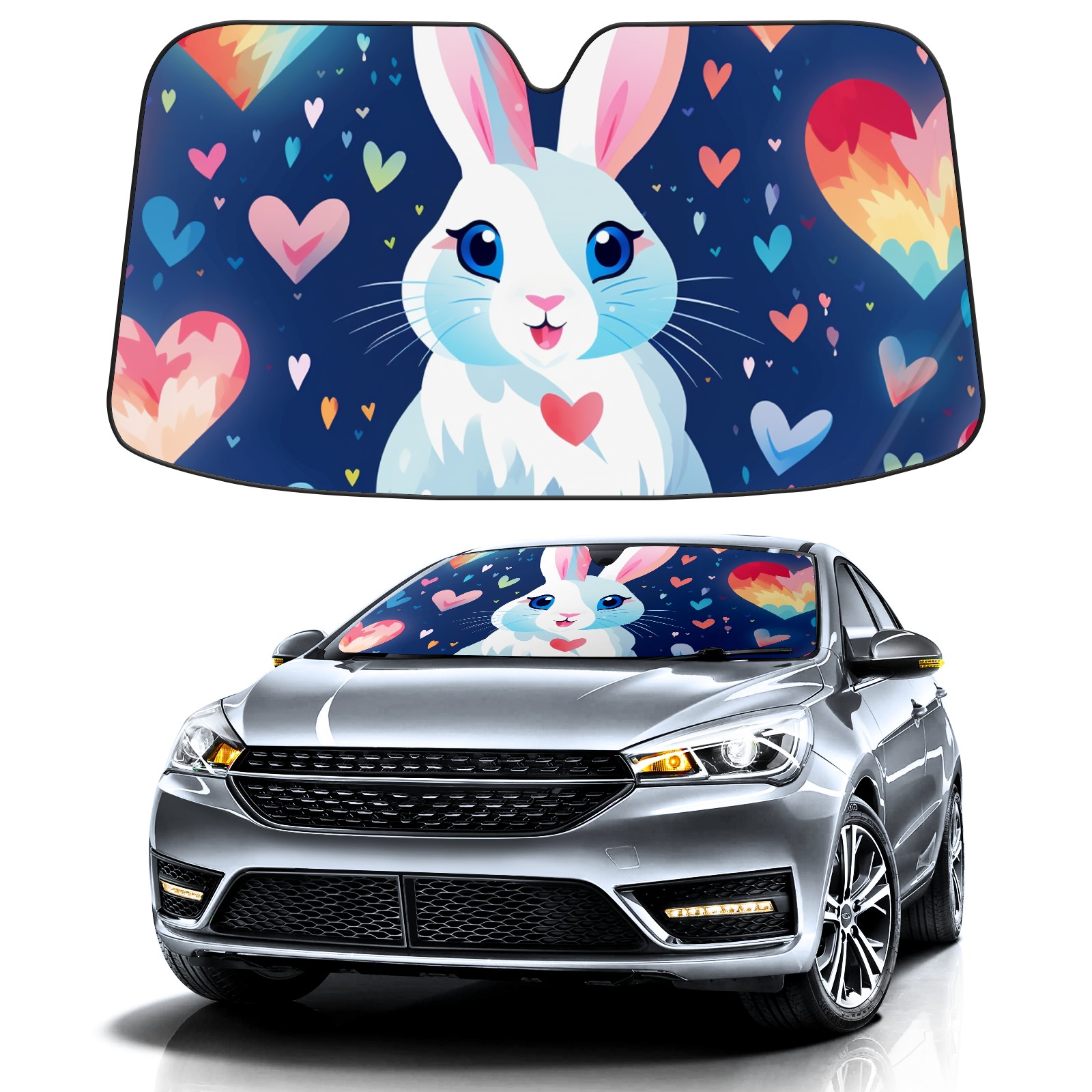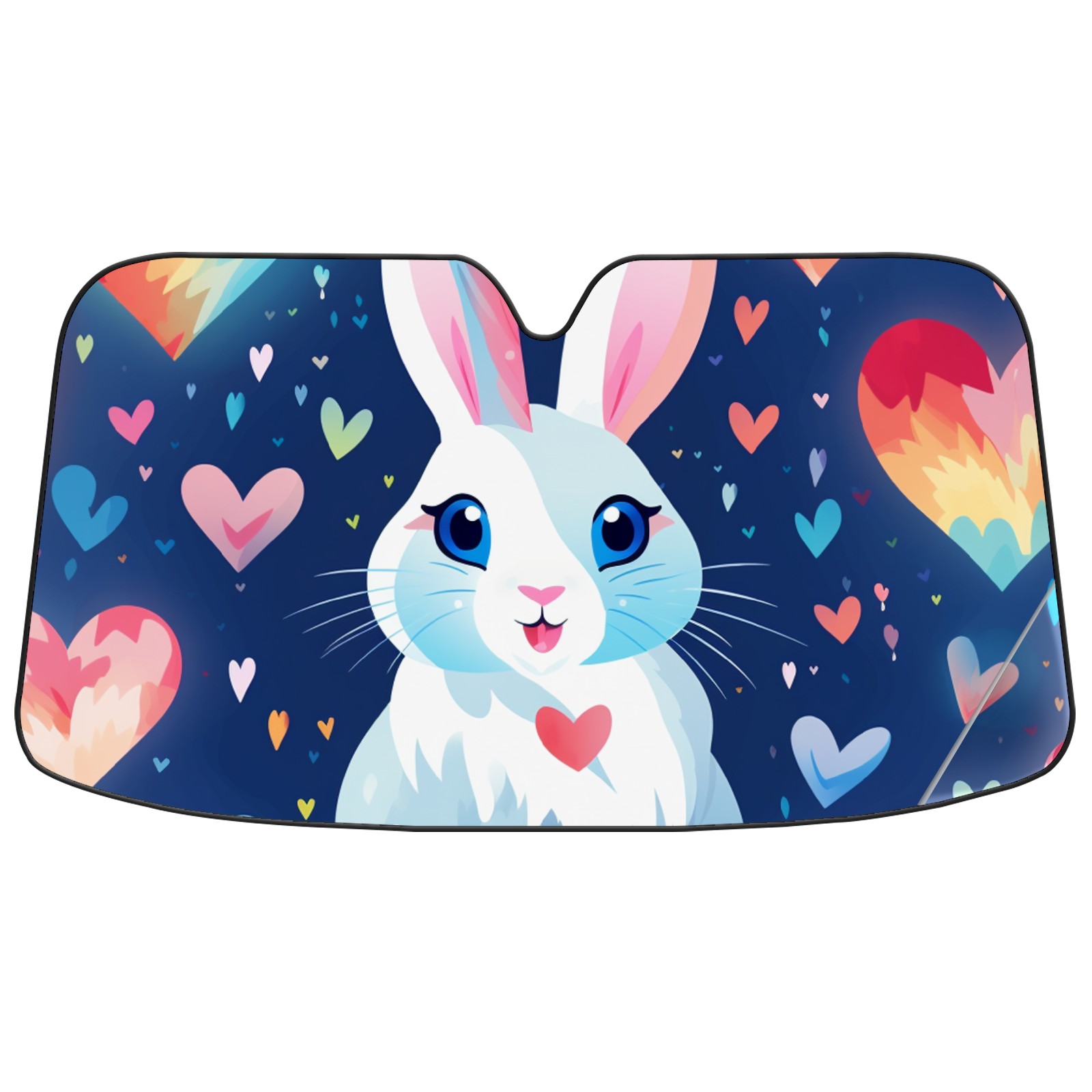 Car Windshield Sun Shade For Front Window Heart Rabbit Foldable Vehicle Windshield Car Sun Visor Covers Automotive Window Protector Car Camping Privacy Sun Blocker