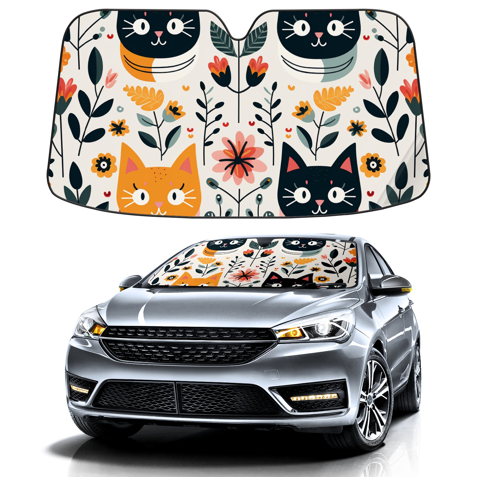 Car Windshield Sun Shade For Front Window Cute Cat Foldable Vehicle Windshield Car Sun Visor Covers Automotive Window Protector Car Camping Privacy Sun Blocker