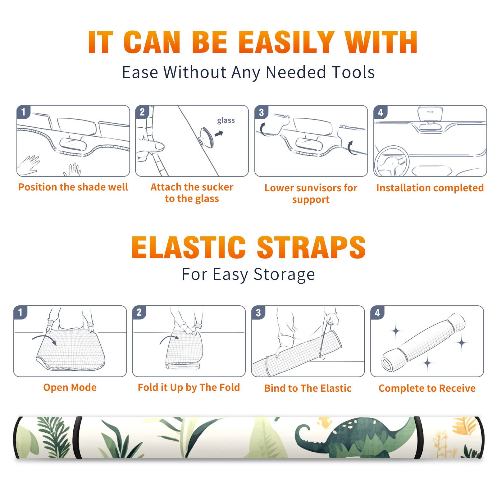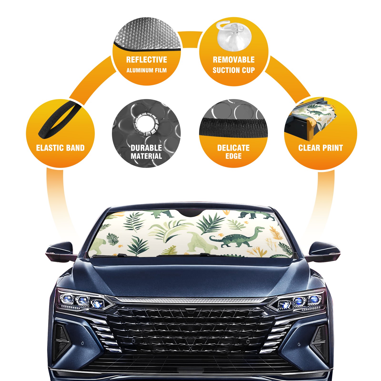 Car Windshield Sun Shade For Front Window Cute Dinosaur Foldable Vehicle Windshield Car Sun Visor Covers Automotive Window Protector Car Camping Privacy Sun Blocker