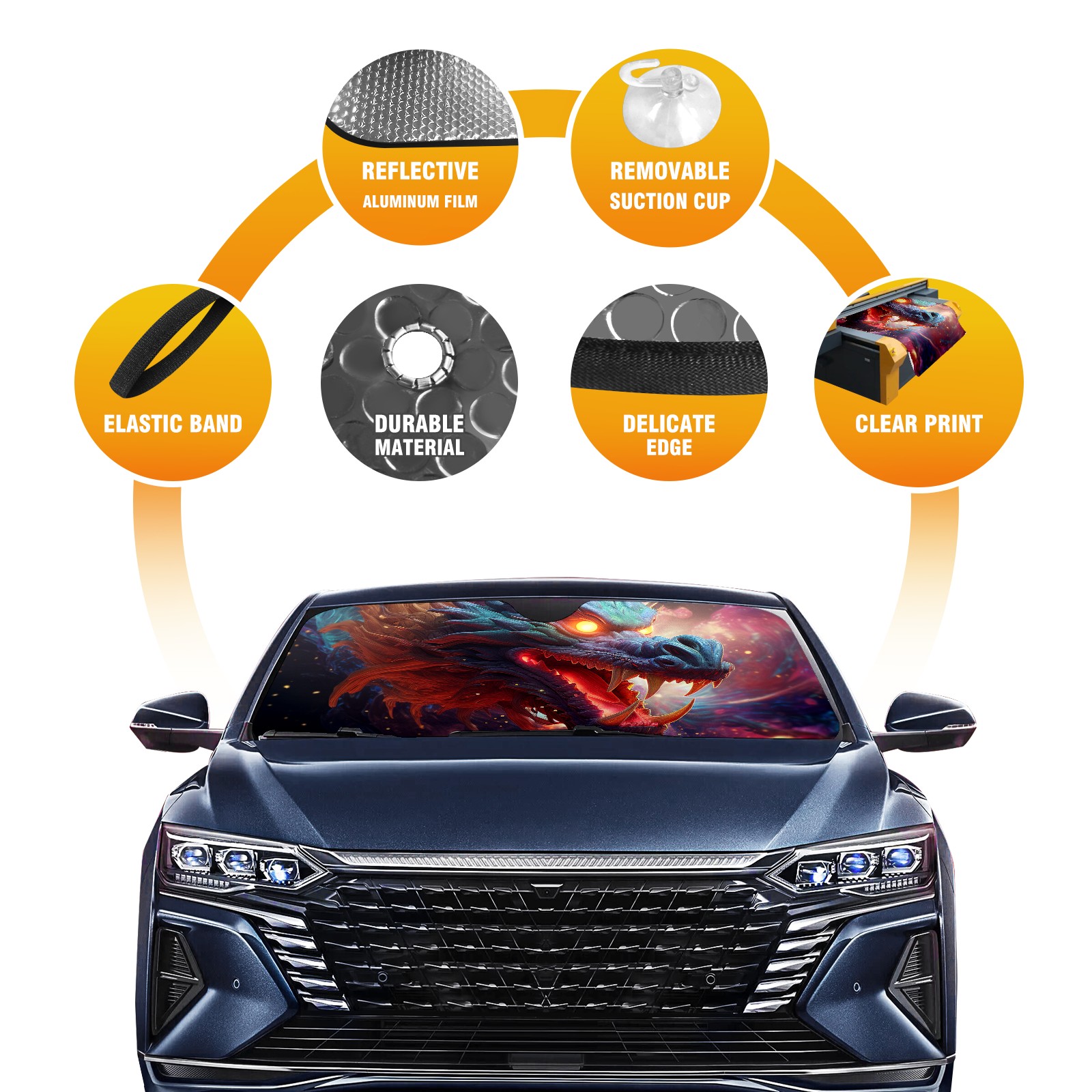 Car Windshield Sun Shade For Front Window Chinese Dragon (39) Foldable Vehicle Windshield Car Sun Visor Covers Automotive Window Protector Car Camping Privacy Sun Blocker