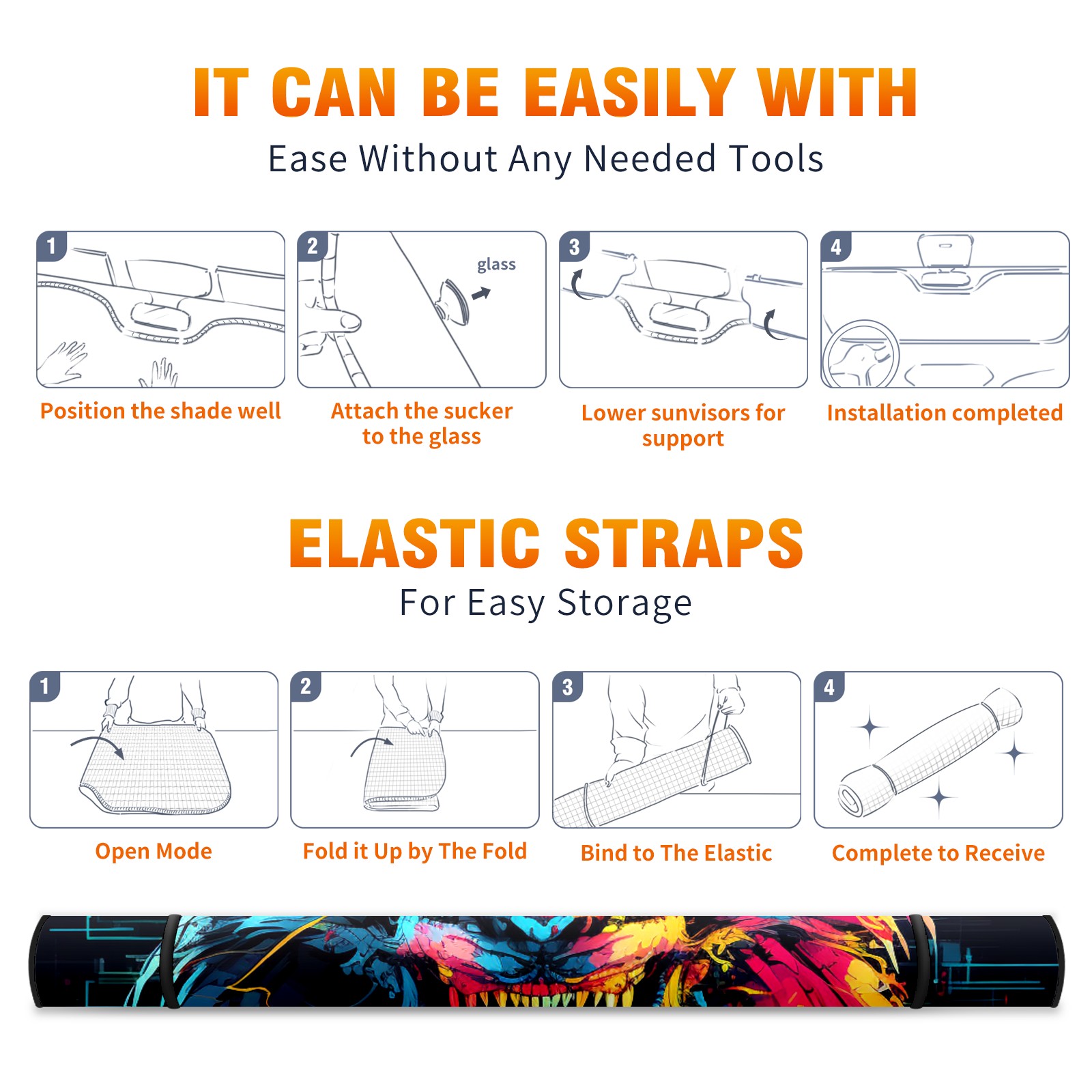 Car Windshield Sun Shade For Front Window Chinese Dragon (28) Foldable Vehicle Windshield Car Sun Visor Covers Automotive Window Protector Car Camping Privacy Sun Blocker