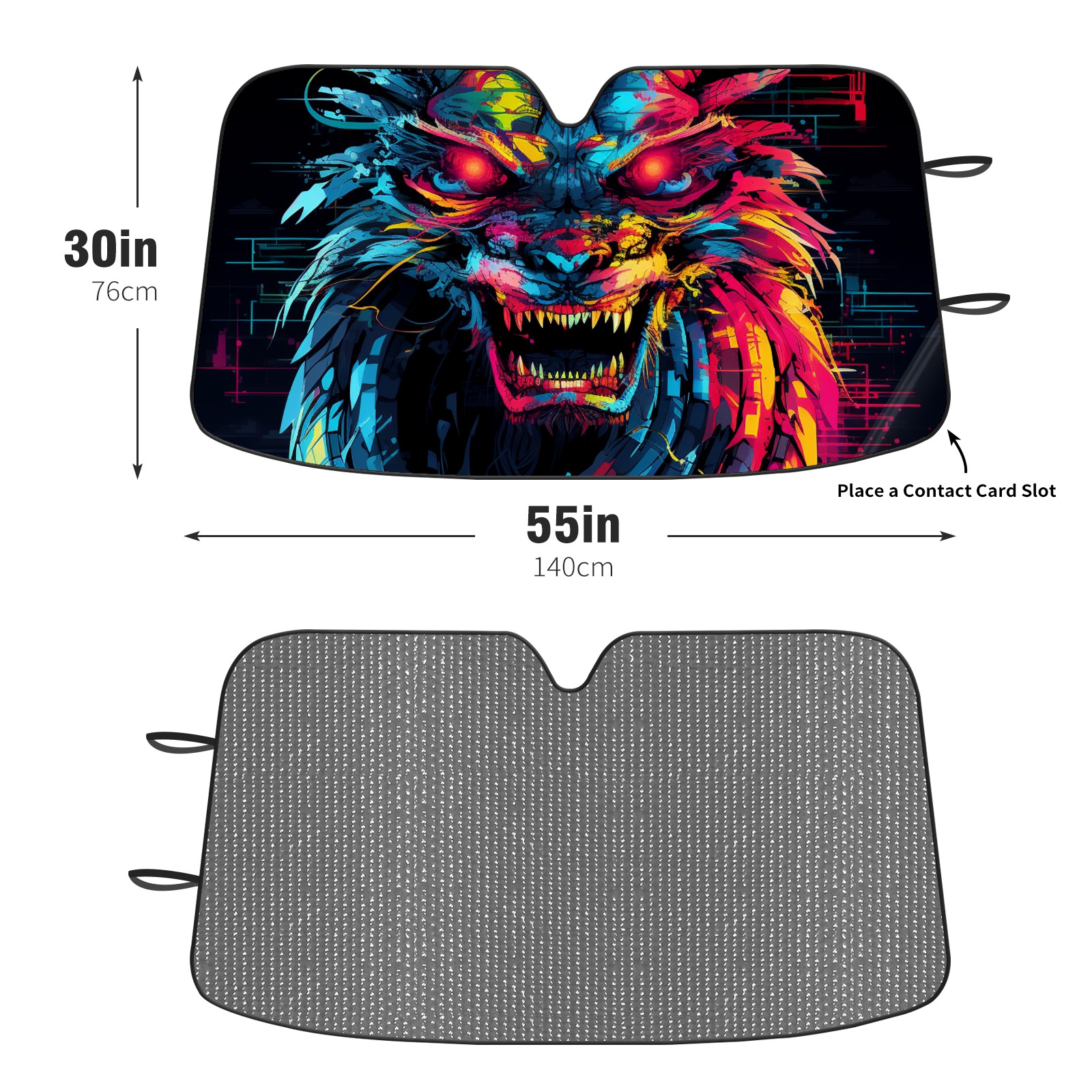 Diameter /Size 63"L x 33.5"W Made from excellent materials which makes it sturdy and protects the car from the sun. Easy to use and pack. Makes the interior of the car cooler.You can easily stash the sunshade in the storage bag or store long term.It open and closes easy. Also the leather storage bag is durable and easy to put the umbrella back into.This windshield sunshade provides complete coverage and keeps your car interior cool under direct sun. It is easy to open and position under the windshield and around the rear-view mirror. Makes Your Car Easy To Identify, Perfect For Finding Your Car In Crowded Parking Lots And Garages.Great Choice: It Is A Great Gift For Dad, Boyfriend, Brother, Brother And Uncle, Friends, Classmates, Family And So On. Notice: Due To Difference Computer Monitors, The Color Maybe Slightly Different From Picture. As Different Measurement Methods, Measurement Data Will Float Within 2%.I Hope You Understand. If You Have Any Question About The Item Please Do Not Hesitate To Contact Us Immediately And We Will Give You A Satisfactory Reply Within 24 Hours.