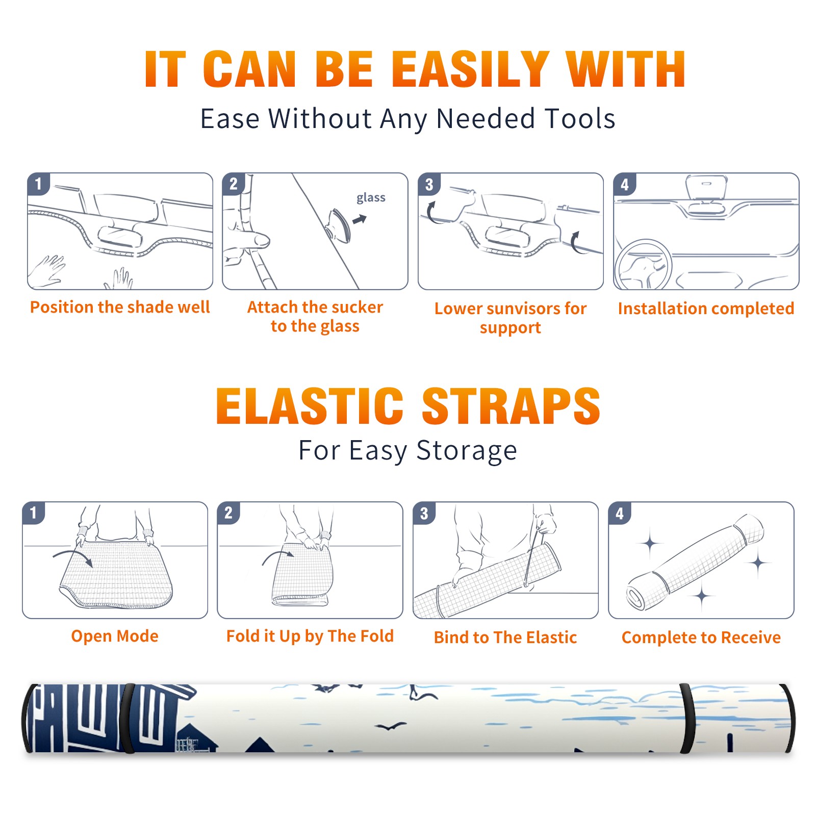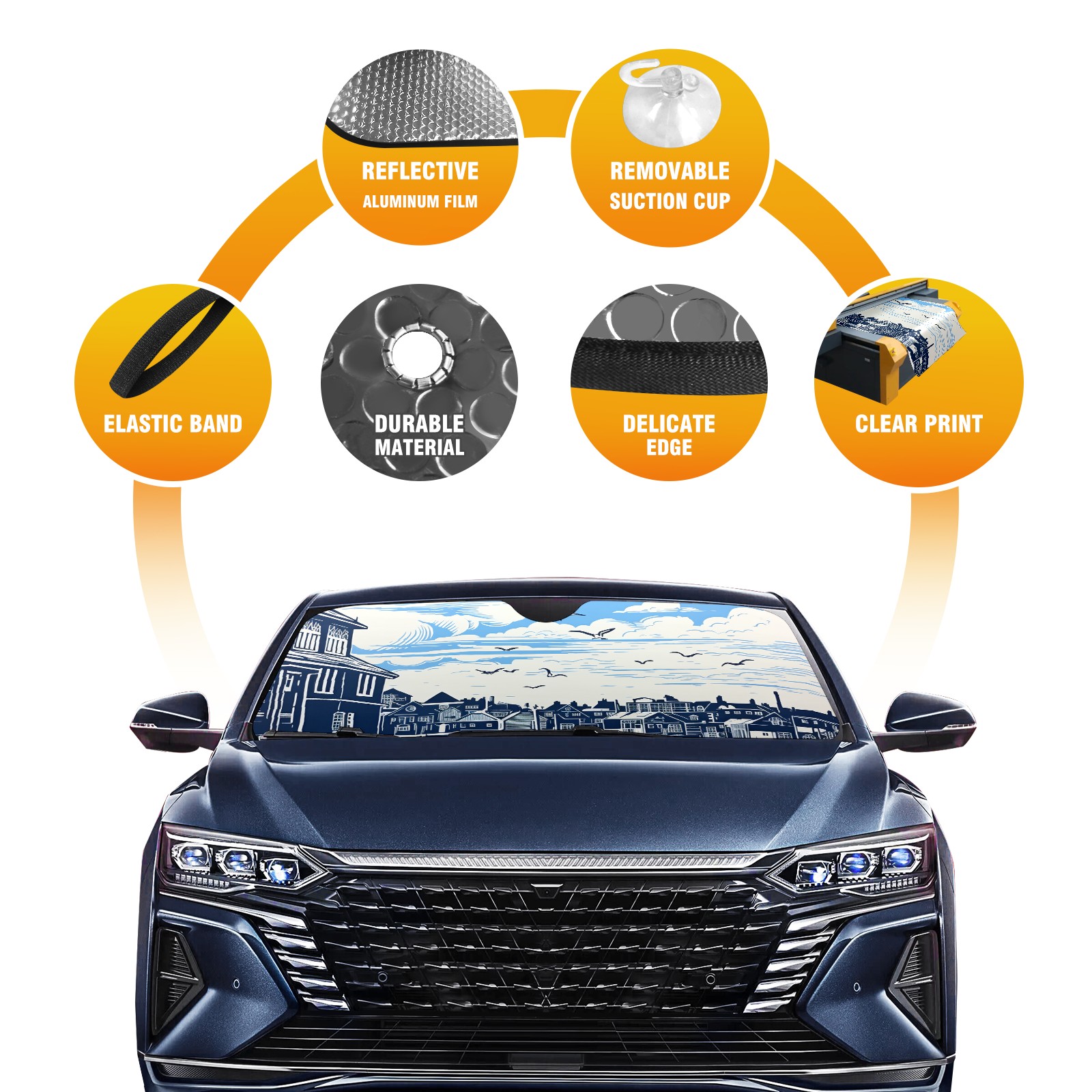 Car Windshield Sun Shade For Front Window Sea Foldable Vehicle Windshield Car Sun Visor Covers Automotive Window Protector Car Camping Privacy Sun Blocker