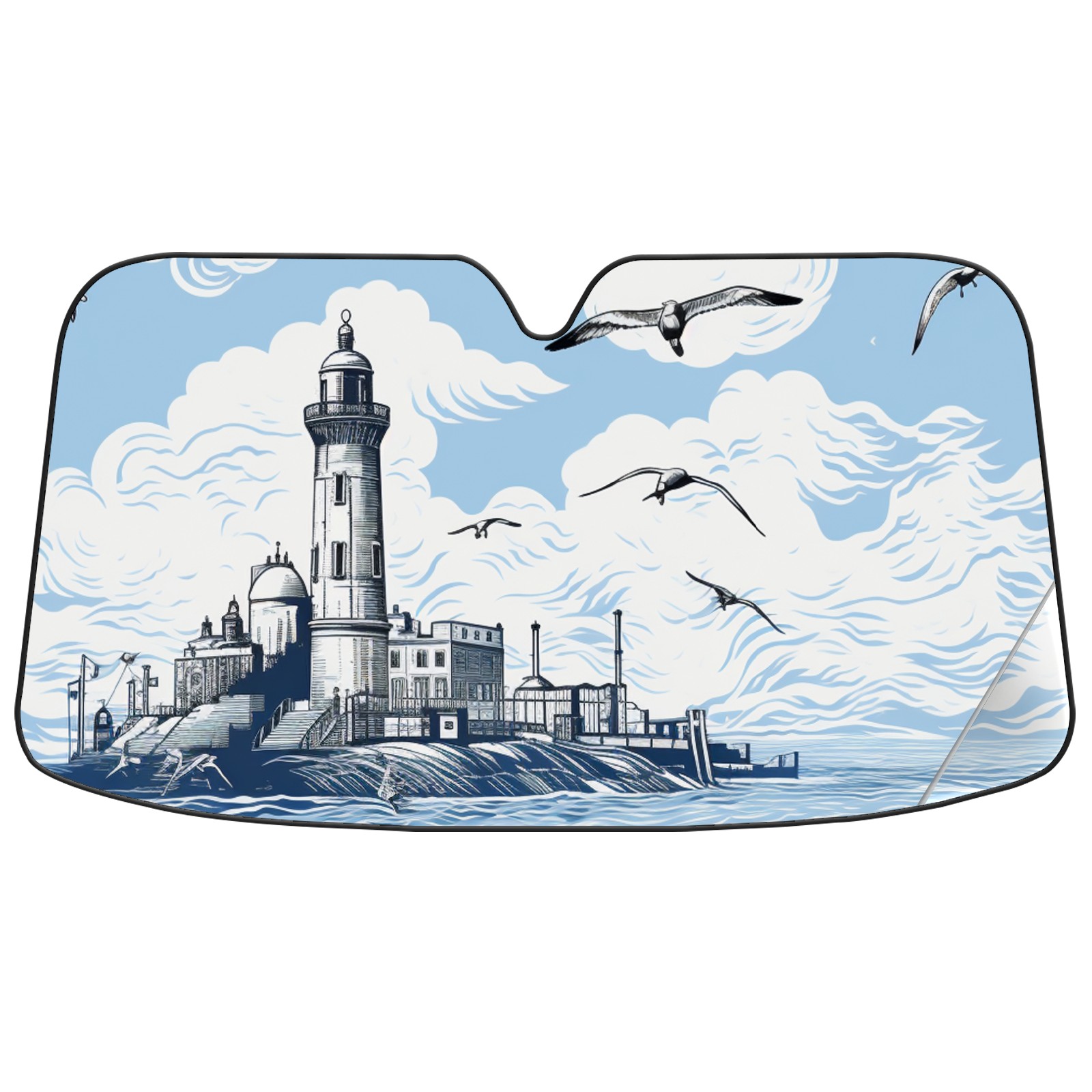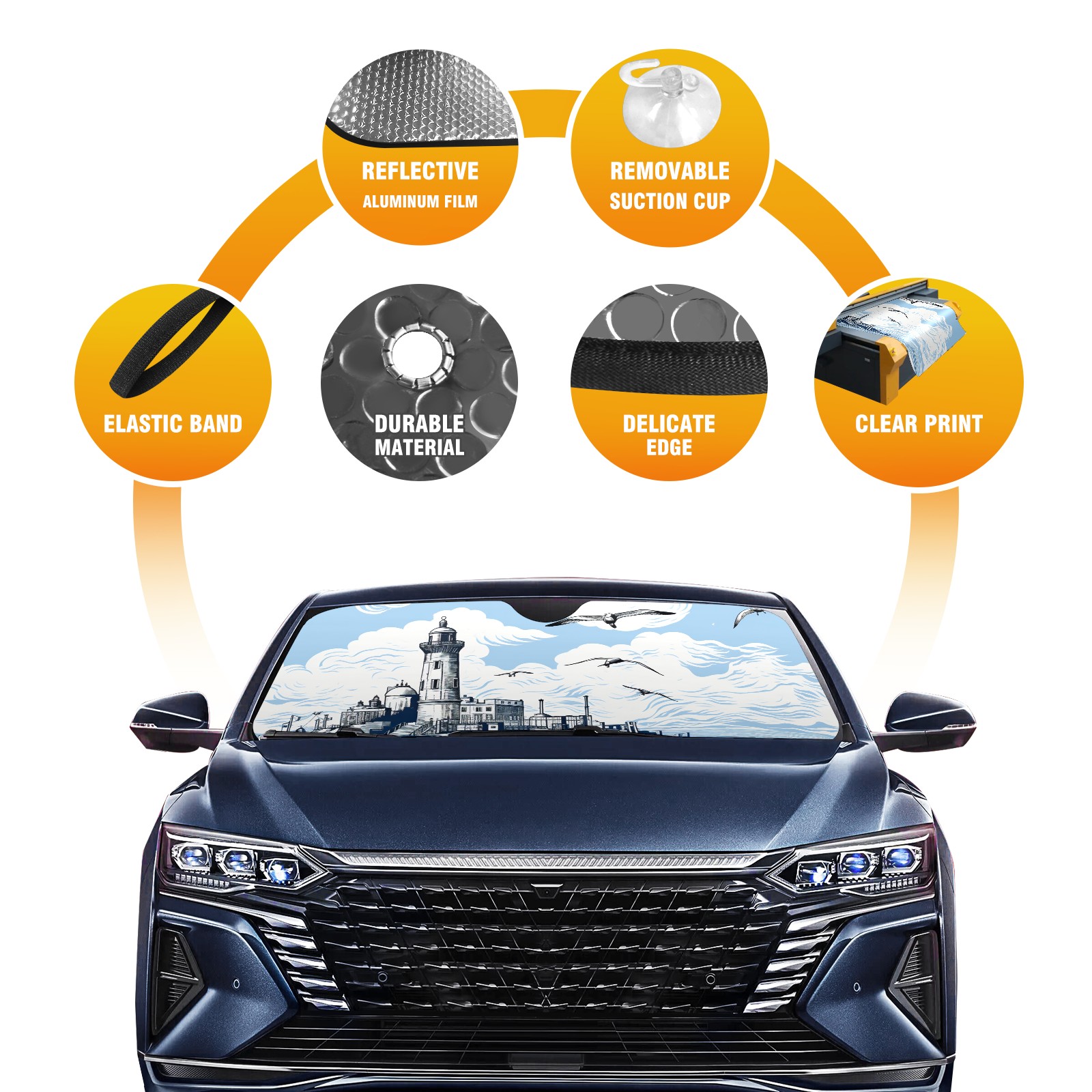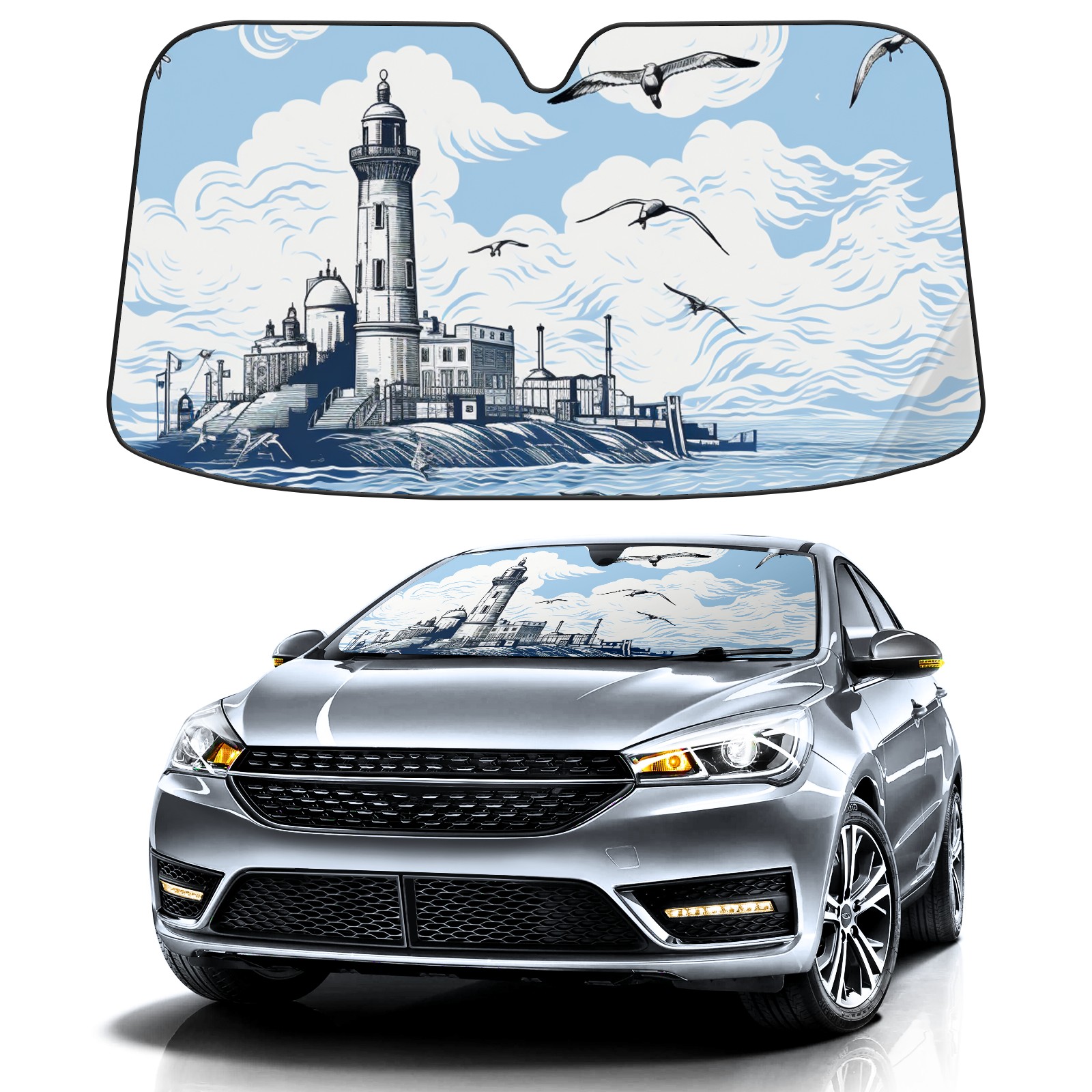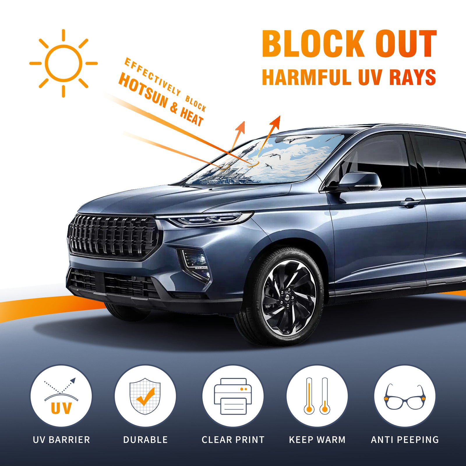 Car Windshield Sun Shade For Front Window Ocean Foldable Vehicle Windshield Car Sun Visor Covers Automotive Window Protector Car Camping Privacy Sun Blocker