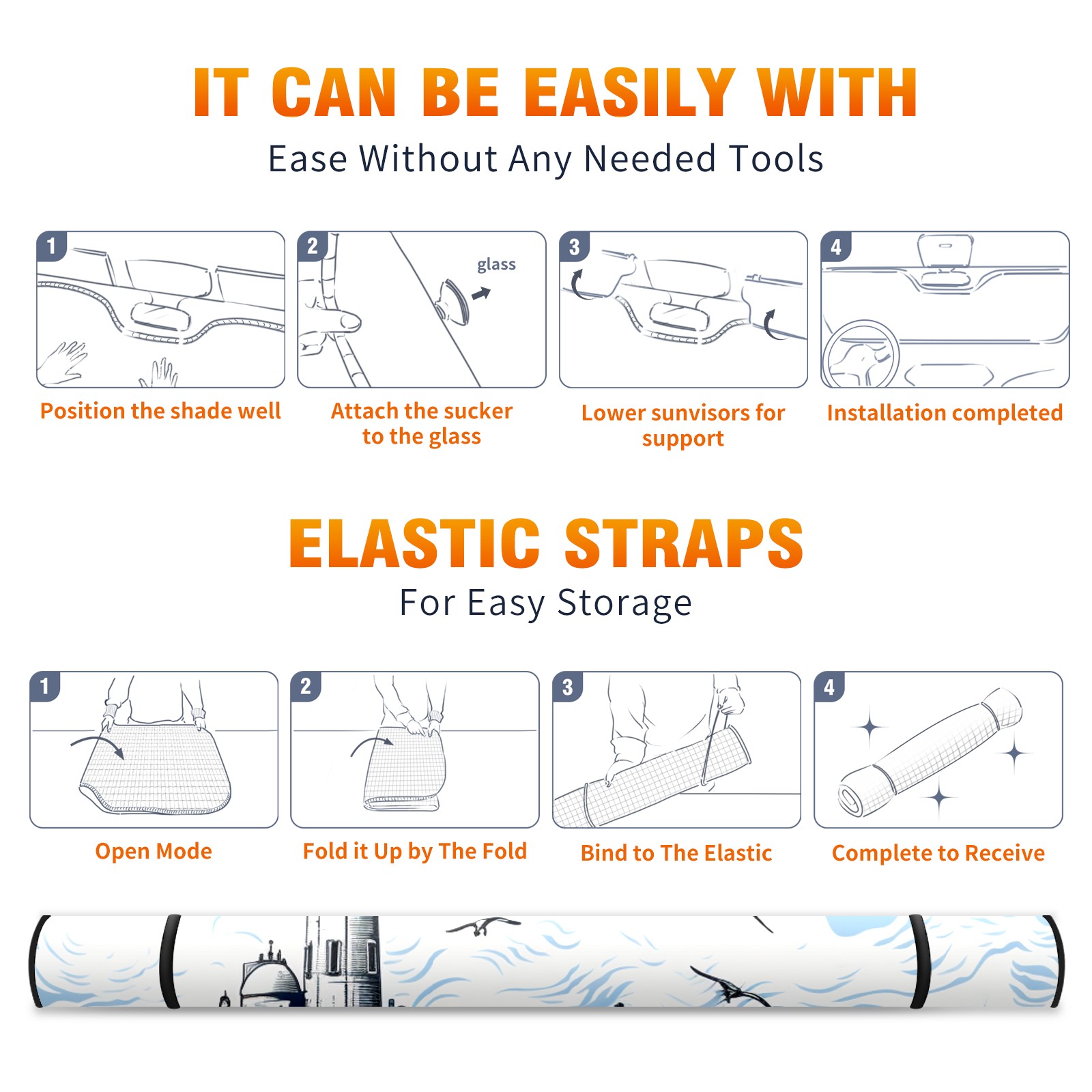 • Diameter /Size 63"L x 33.5"W Made from excellent materials which makes it sturdy and protects the car from the sun. Easy to use and pack. Makes the interior of the car cooler.You can easily stash the sunshade in the storage bag or store long term.It open and closes easy. Also the leather storage bag is durable and easy to put the umbrella back into.This windshield sunshade provides complete coverage and keeps your car interior cool under direct sun. It is easy to open and position under the windshield and around the rear-view mirror. Makes Your Car Easy To Identify, Perfect For Finding Your Car In Crowded Parking Lots And Garages.Great Choice: It Is A Great Gift For Dad, Boyfriend, Brother, Brother And Uncle, Friends, Classmates, Family And So On. Notice: Due To Difference Computer Monitors, The Color Maybe Slightly Different From Picture. As Different Measurement Methods, Measurement Data Will Float Within 2%.I Hope You Understand. If You Have Any Question About The Item Please Do Not Hesitate To Contact Us Immediately And We Will Give You A Satisfactory Reply Within 24 Hours.