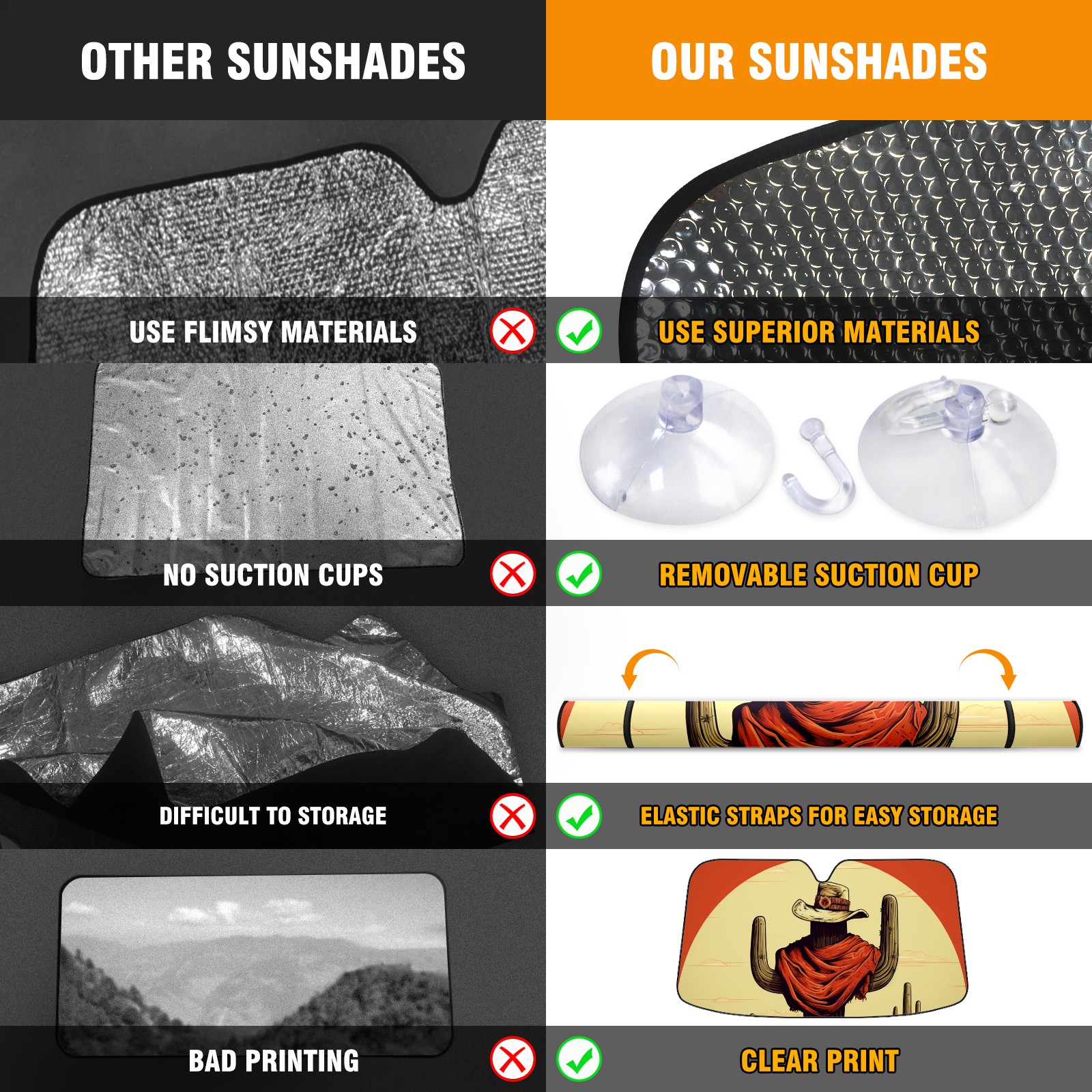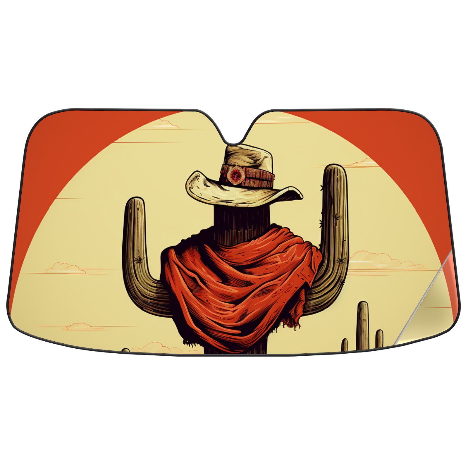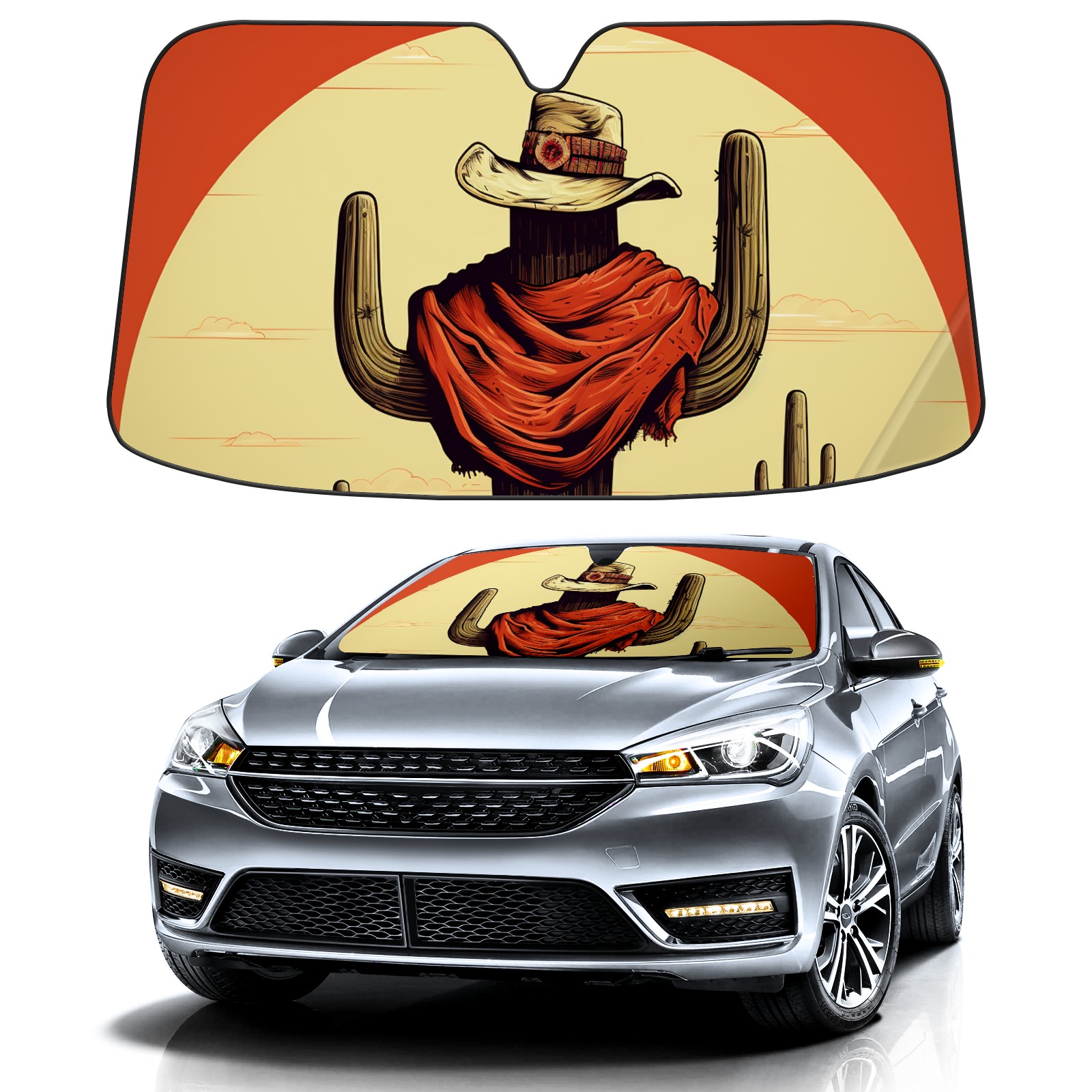 Car Windshield Sun Shade For Front Window Cactus Western Cowboy Foldable Vehicle Windshield Car Sun Visor Covers Automotive Window Protector Car Camping Privacy Sun Blocker