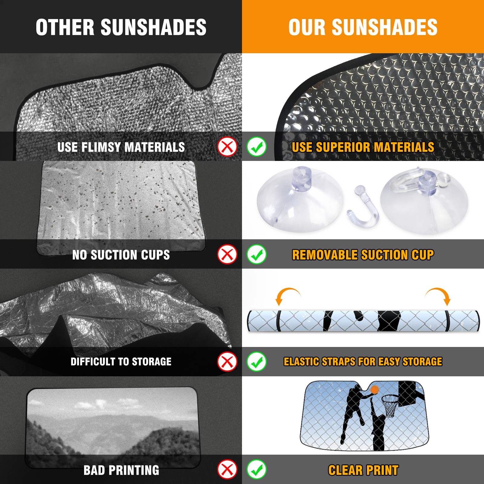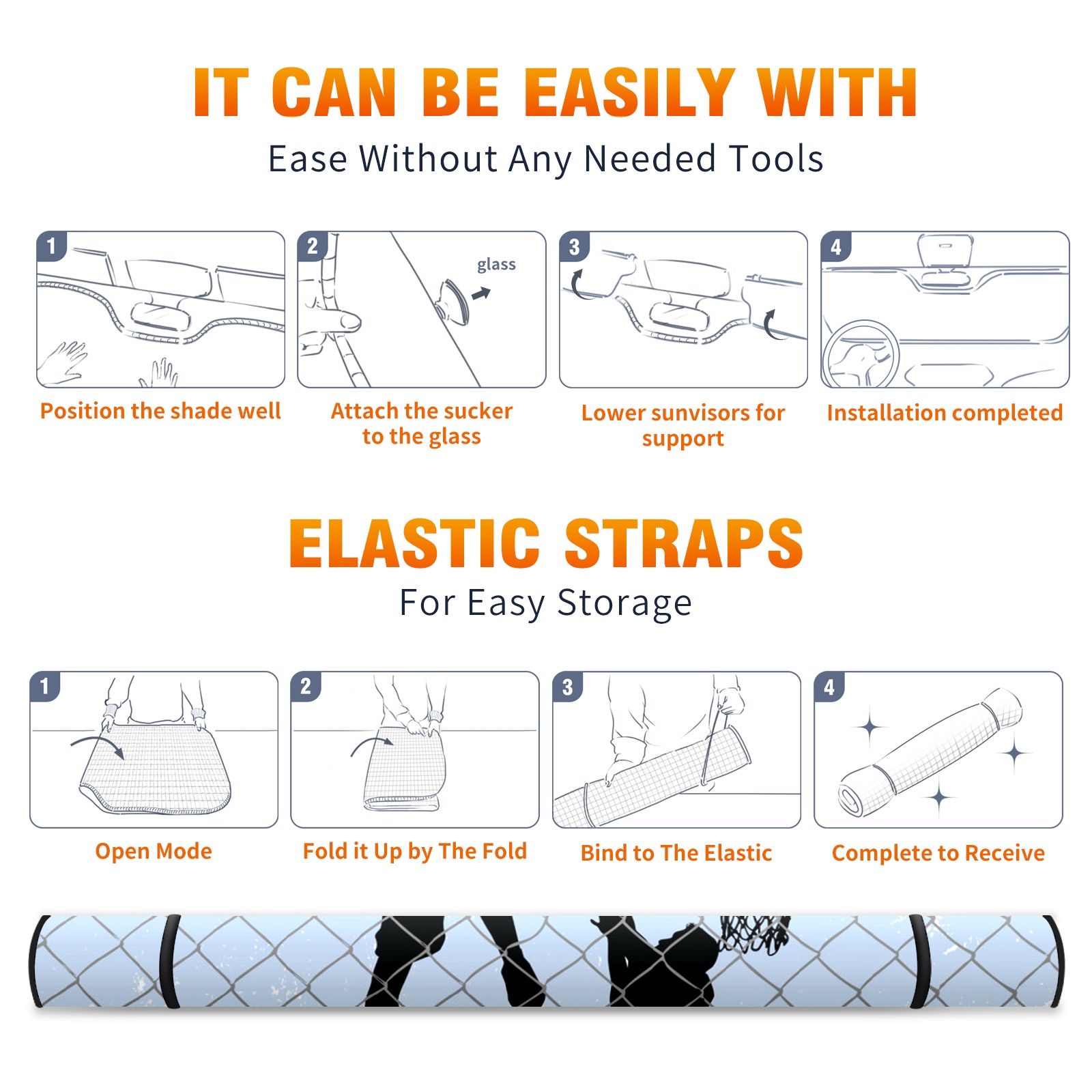 Diameter /Size 63"L x 33.5"W Made from excellent materials which makes it sturdy and protects the car from the sun. Easy to use and pack. Makes the interior of the car cooler.You can easily stash the sunshade in the storage bag or store long term.It open and closes easy. Also the leather storage bag is durable and easy to put the umbrella back into.This windshield sunshade provides complete coverage and keeps your car interior cool under direct sun. It is easy to open and position under the windshield and around the rear-view mirror. Makes Your Car Easy To Identify, Perfect For Finding Your Car In Crowded Parking Lots And Garages.Great Choice: It Is A Great Gift For Dad, Boyfriend, Brother, Brother And Uncle, Friends, Classmates, Family And So On. Notice: Due To Difference Computer Monitors, The Color Maybe Slightly Different From Picture. As Different Measurement Methods, Measurement Data Will Float Within 2%.I Hope You Understand. If You Have Any Question About The Item Please Do Not Hesitate To Contact Us Immediately And We Will Give You A Satisfactory Reply Within 24 Hours.