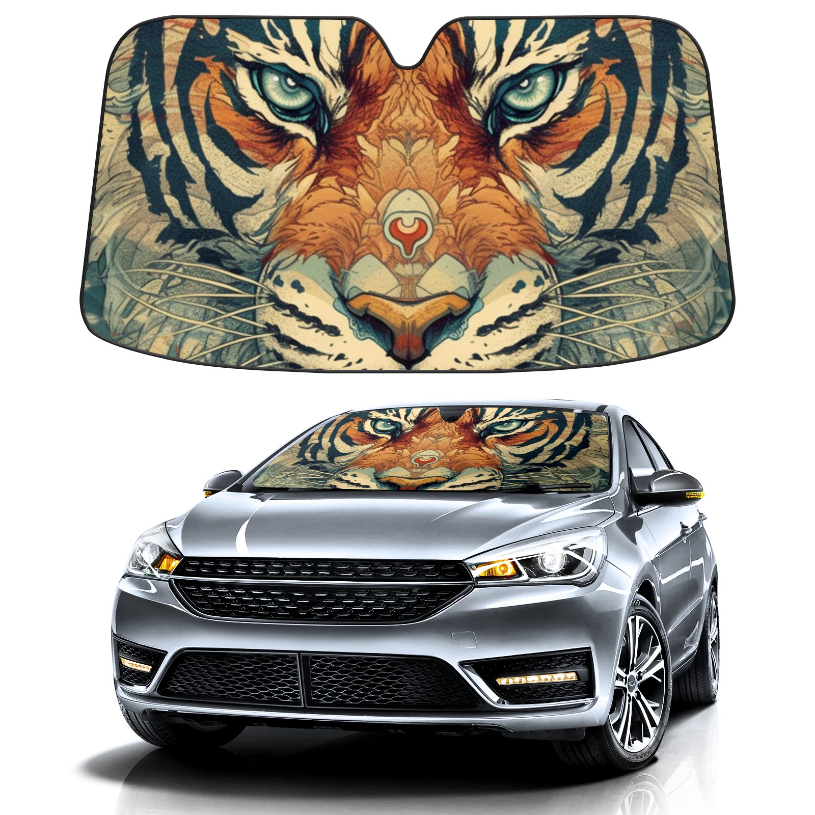 • Diameter /Size 63"L x 33.5"W Made from excellent materials which makes it sturdy and protects the car from the sun. Easy to use and pack. Makes the interior of the car cooler.You can easily stash the sunshade in the storage bag or store long term.It open and closes easy. Also the leather storage bag is durable and easy to put the umbrella back into.This windshield sunshade provides complete coverage and keeps your car interior cool under direct sun. It is easy to open and position under the windshield and around the rear-view mirror. Makes Your Car Easy To Identify, Perfect For Finding Your Car In Crowded Parking Lots And Garages.Great Choice: It Is A Great Gift For Dad, Boyfriend, Brother, Brother And Uncle, Friends, Classmates, Family And So On. Notice: Due To Difference Computer Monitors, The Color Maybe Slightly Different From Picture. As Different Measurement Methods, Measurement Data Will Float Within 2%.I Hope You Understand. If You Have Any Question About The Item Please Do Not Hesitate To Contact Us Immediately And We Will Give You A Satisfactory Reply Within 24 Hours.