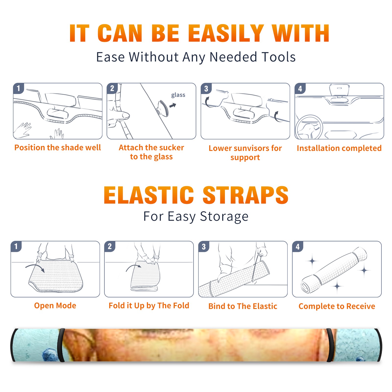 • Diameter /Size 63"L x 33.5"W Made from excellent materials which makes it sturdy and protects the car from the sun. Easy to use and pack. Makes the interior of the car cooler.You can easily stash the sunshade in the storage bag or store long term.It open and closes easy. Also the leather storage bag is durable and easy to put the umbrella back into.This windshield sunshade provides complete coverage and keeps your car interior cool under direct sun. It is easy to open and position under the windshield and around the rear-view mirror. Makes Your Car Easy To Identify, Perfect For Finding Your Car In Crowded Parking Lots And Garages.Great Choice: It Is A Great Gift For Dad, Boyfriend, Brother, Brother And Uncle, Friends, Classmates, Family And So On. Notice: Due To Difference Computer Monitors, The Color Maybe Slightly Different From Picture. As Different Measurement Methods, Measurement Data Will Float Within 2%.I Hope You Understand. If You Have Any Question About The Item Please Do Not Hesitate To Contact Us Immediately And We Will Give You A Satisfactory Reply Within 24 Hours.