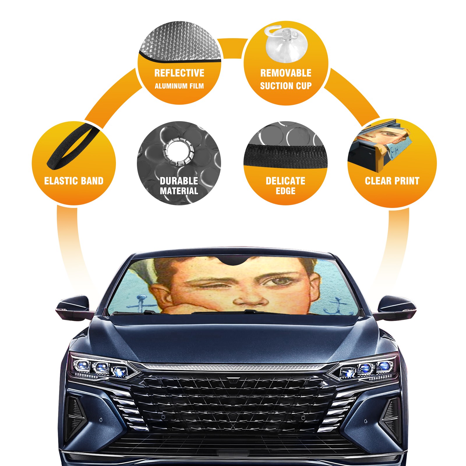 Car Windshield Sun Shade For Front Window Boy In Sailor Suit Foldable Vehicle Windshield Car Sun Visor Covers Automotive Window Protector Car Camping Privacy Sun Blocker