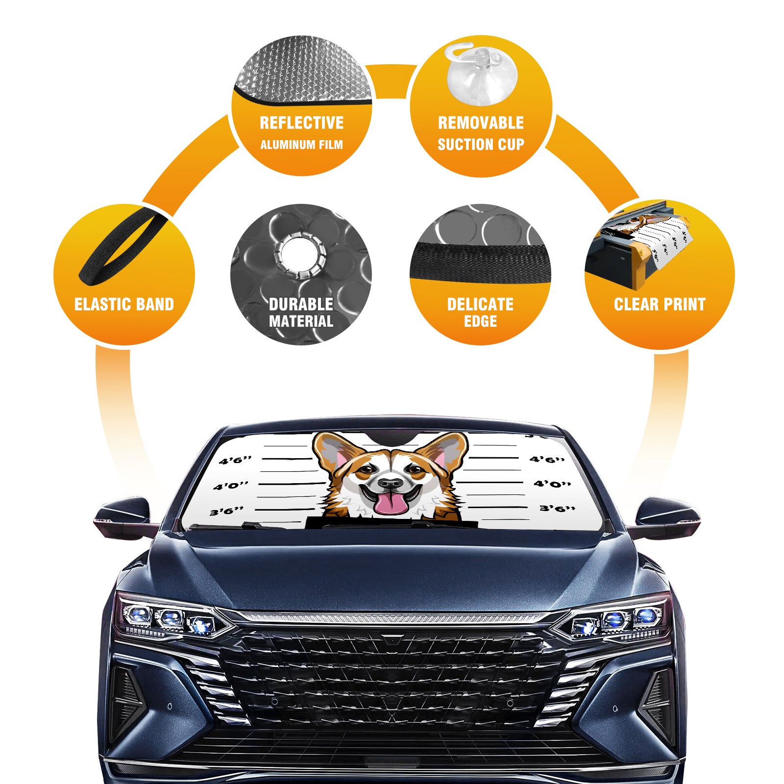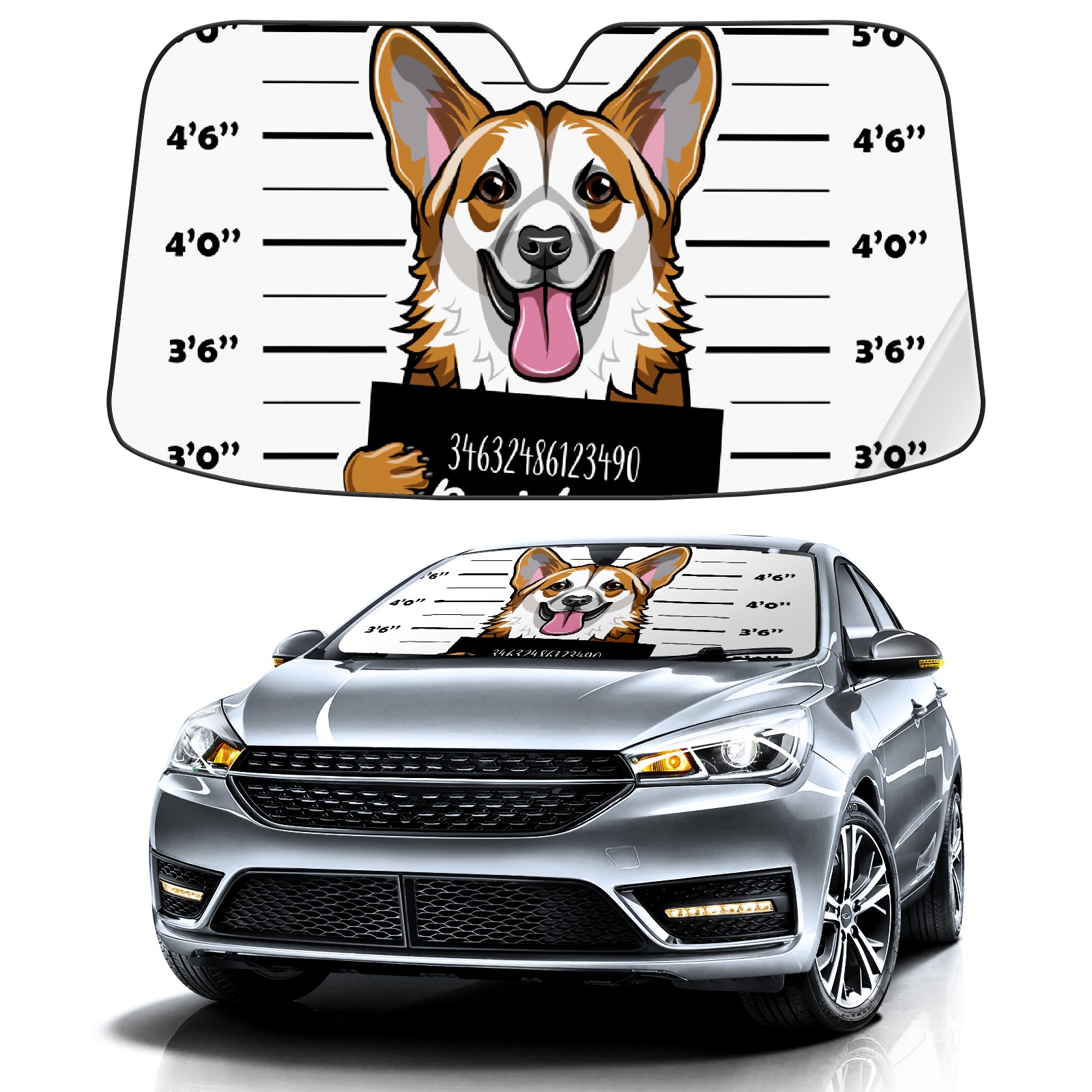 Car Windshield Sun Shade For Front Window Dog Criminal Bad Boy Arrest Foldable Vehicle Windshield Car Sun Visor Covers Automotive Window Protector Car Camping Privacy Sun Blocker