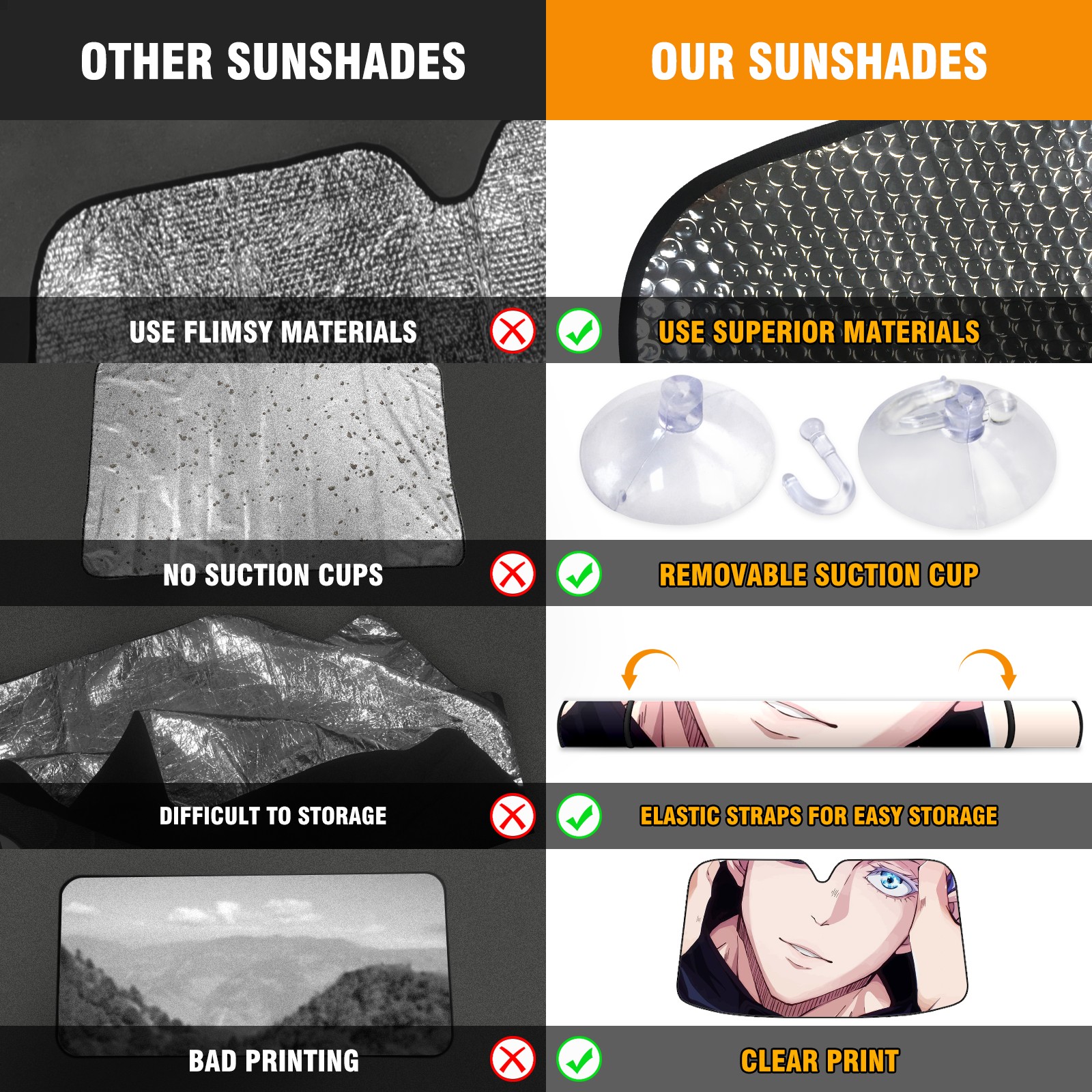Car Windshield Sun Shade For Front Window Anime Boy (2) Foldable Vehicle Windshield Car Sun Visor Covers Automotive Window Protector Car Camping Privacy Sun Blocker