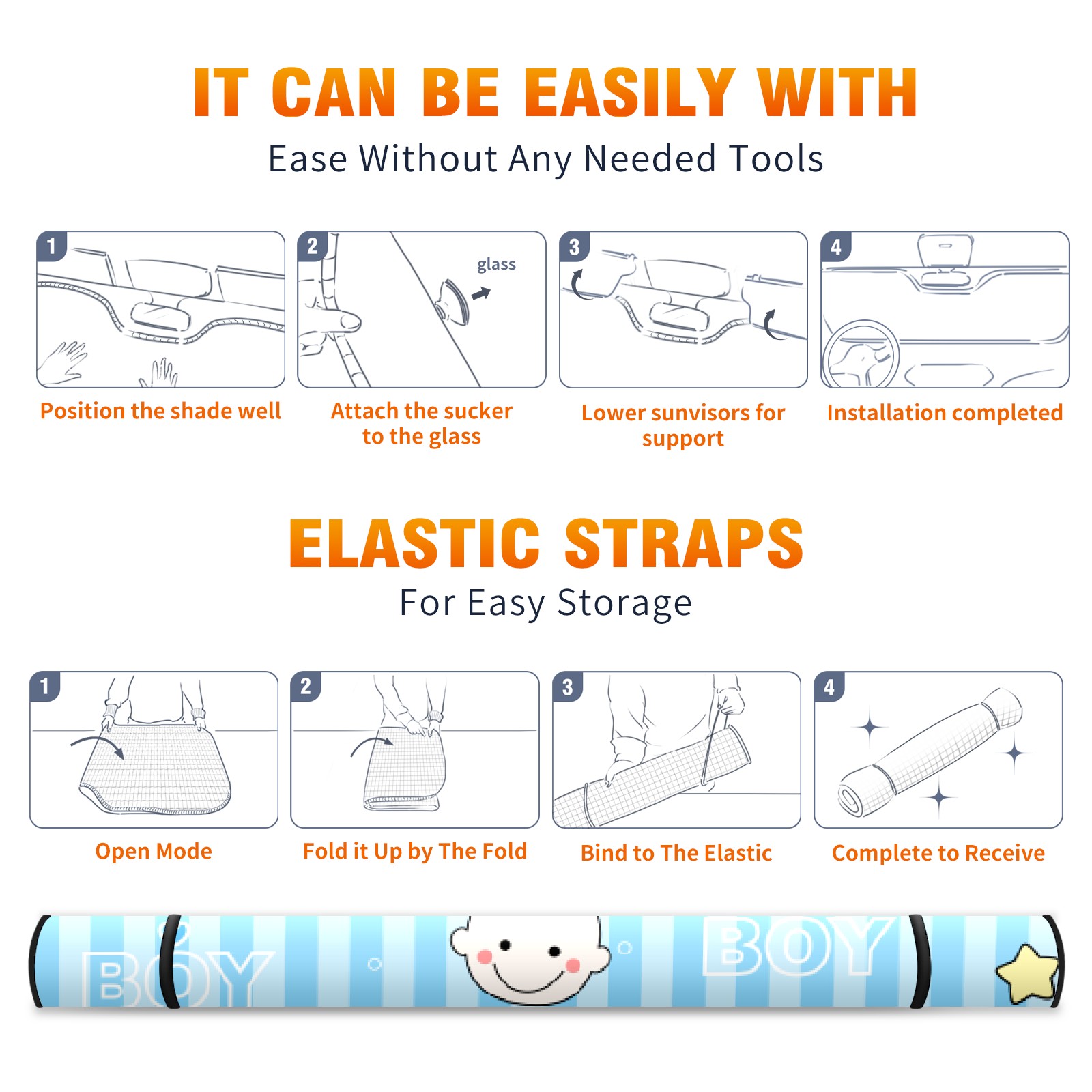 Car Windshield Sun Shade For Front Window Boy Blue Cute Foldable Vehicle Windshield Car Sun Visor Covers Automotive Window Protector Car Camping Privacy Sun Blocker