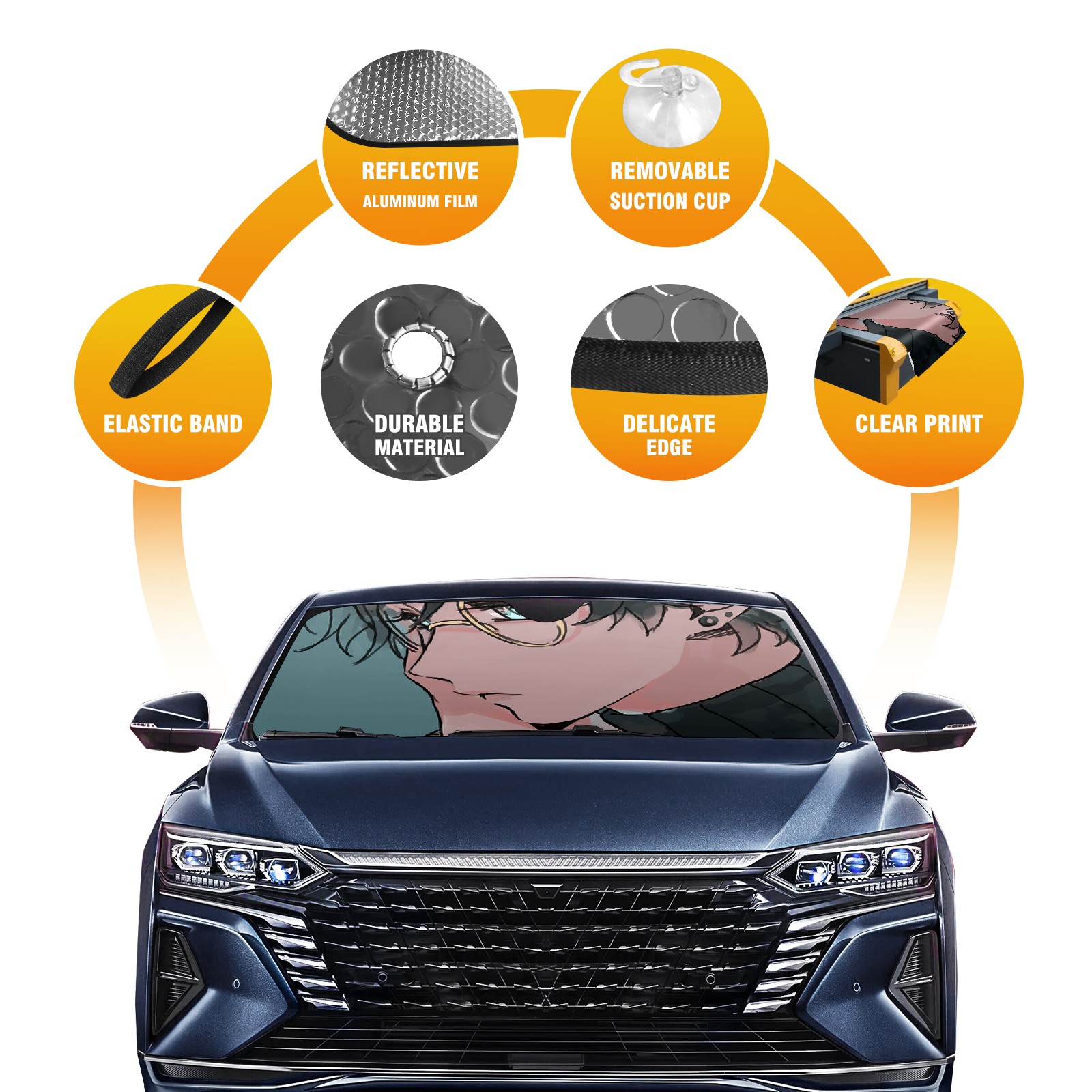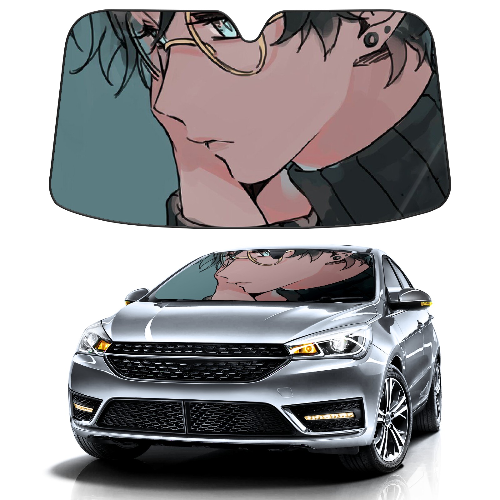 Car Windshield Sun Shade For Front Window Melancholic Boy Foldable Vehicle Windshield Car Sun Visor Covers Automotive Window Protector Car Camping Privacy Sun Blocker