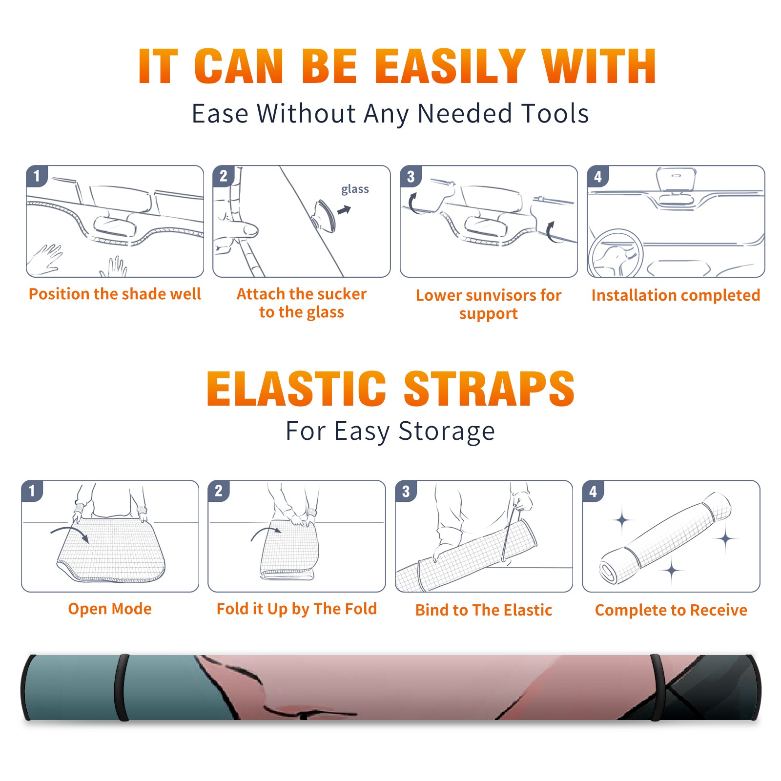 • Diameter /Size 63"L x 33.5"W Made from excellent materials which makes it sturdy and protects the car from the sun. Easy to use and pack. Makes the interior of the car cooler.You can easily stash the sunshade in the storage bag or store long term.It open and closes easy. Also the leather storage bag is durable and easy to put the umbrella back into.This windshield sunshade provides complete coverage and keeps your car interior cool under direct sun. It is easy to open and position under the windshield and around the rear-view mirror. Makes Your Car Easy To Identify, Perfect For Finding Your Car In Crowded Parking Lots And Garages.Great Choice: It Is A Great Gift For Dad, Boyfriend, Brother, Brother And Uncle, Friends, Classmates, Family And So On. Notice: Due To Difference Computer Monitors, The Color Maybe Slightly Different From Picture. As Different Measurement Methods, Measurement Data Will Float Within 2%.I Hope You Understand. If You Have Any Question About The Item Please Do Not Hesitate To Contact Us Immediately And We Will Give You A Satisfactory Reply Within 24 Hours.