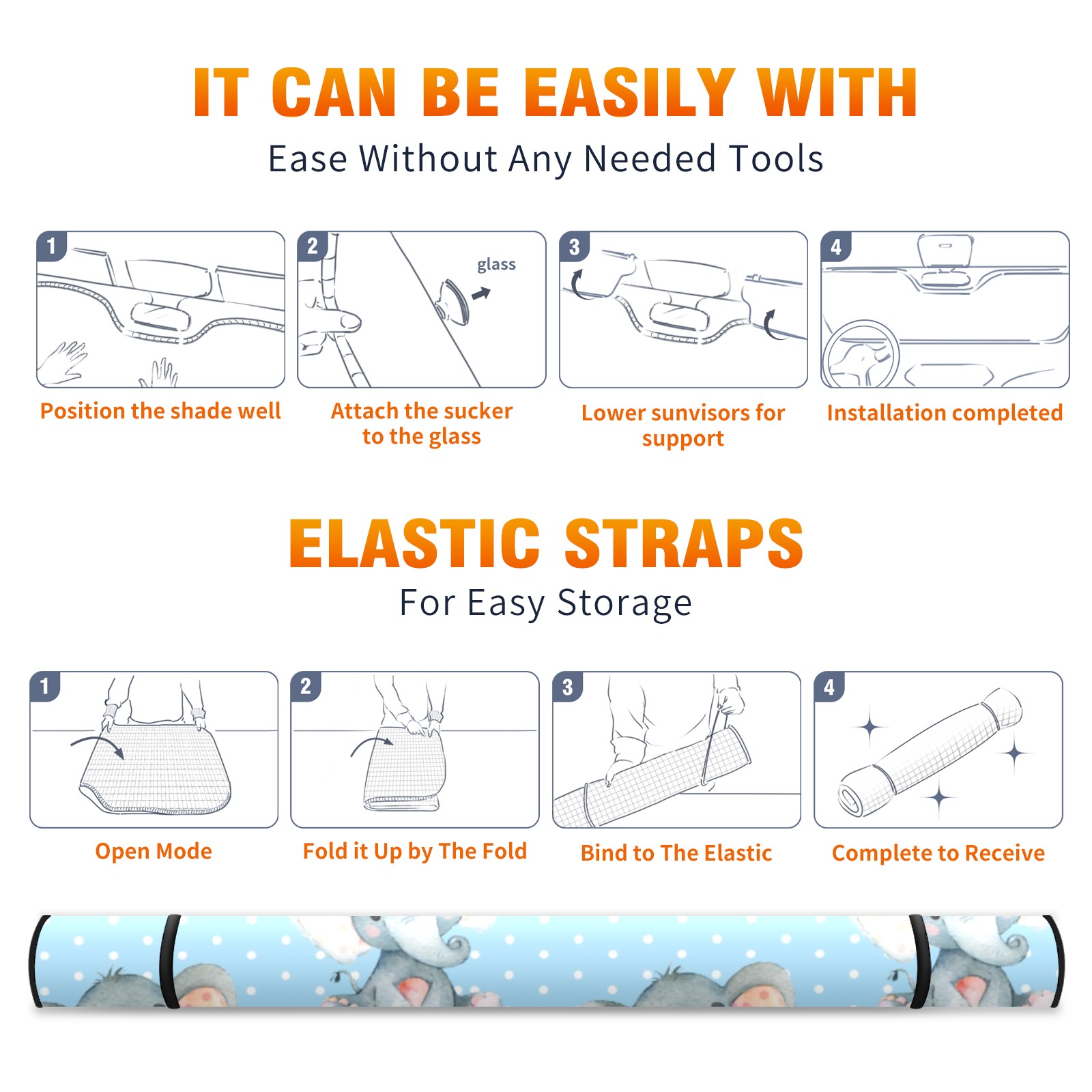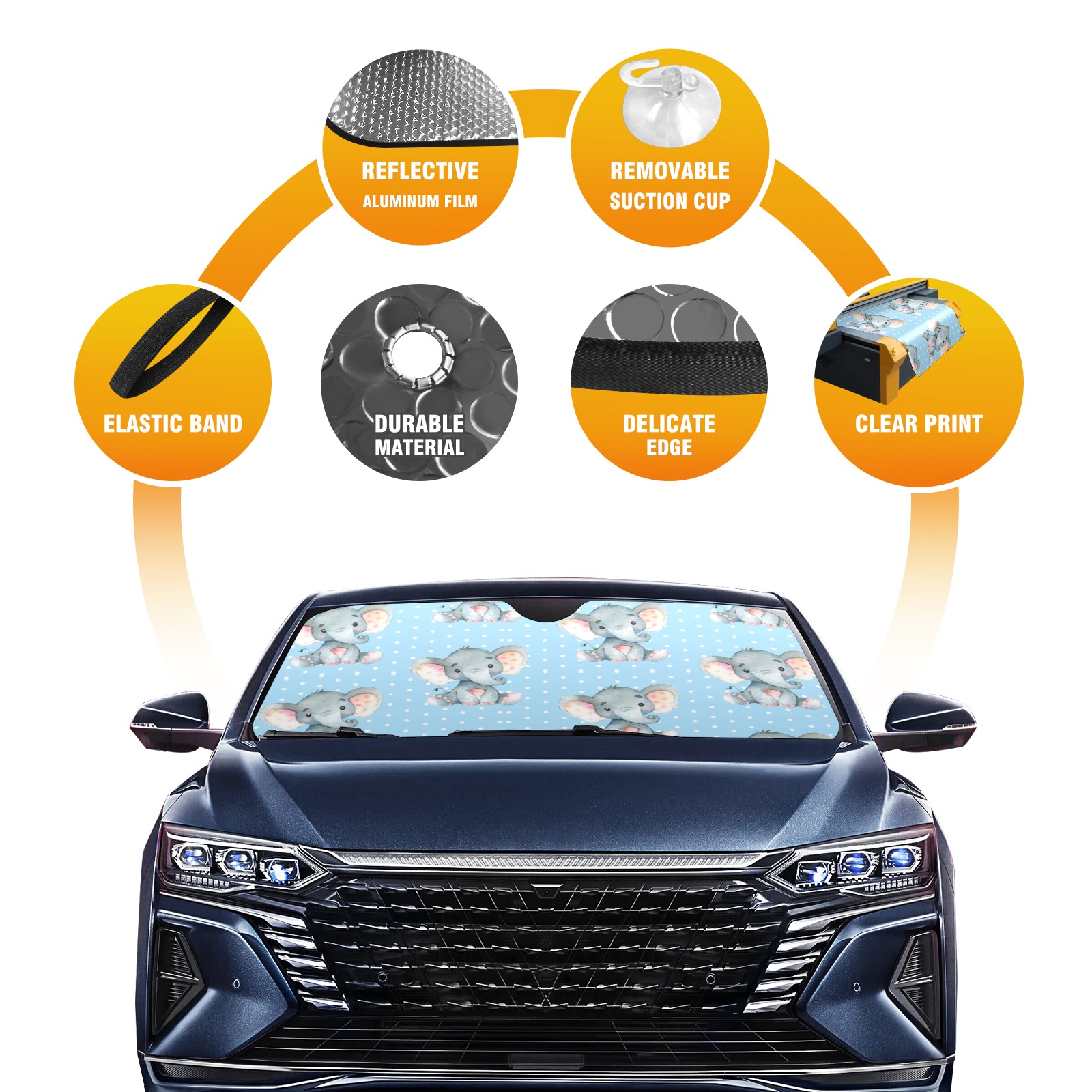 Car Windshield Sun Shade For Front Window Cute Elephant Baby Boy Blue And Gray Foldable Vehicle Windshield Car Sun Visor Covers Automotive Window Protector Car Camping Privacy Sun Blocker