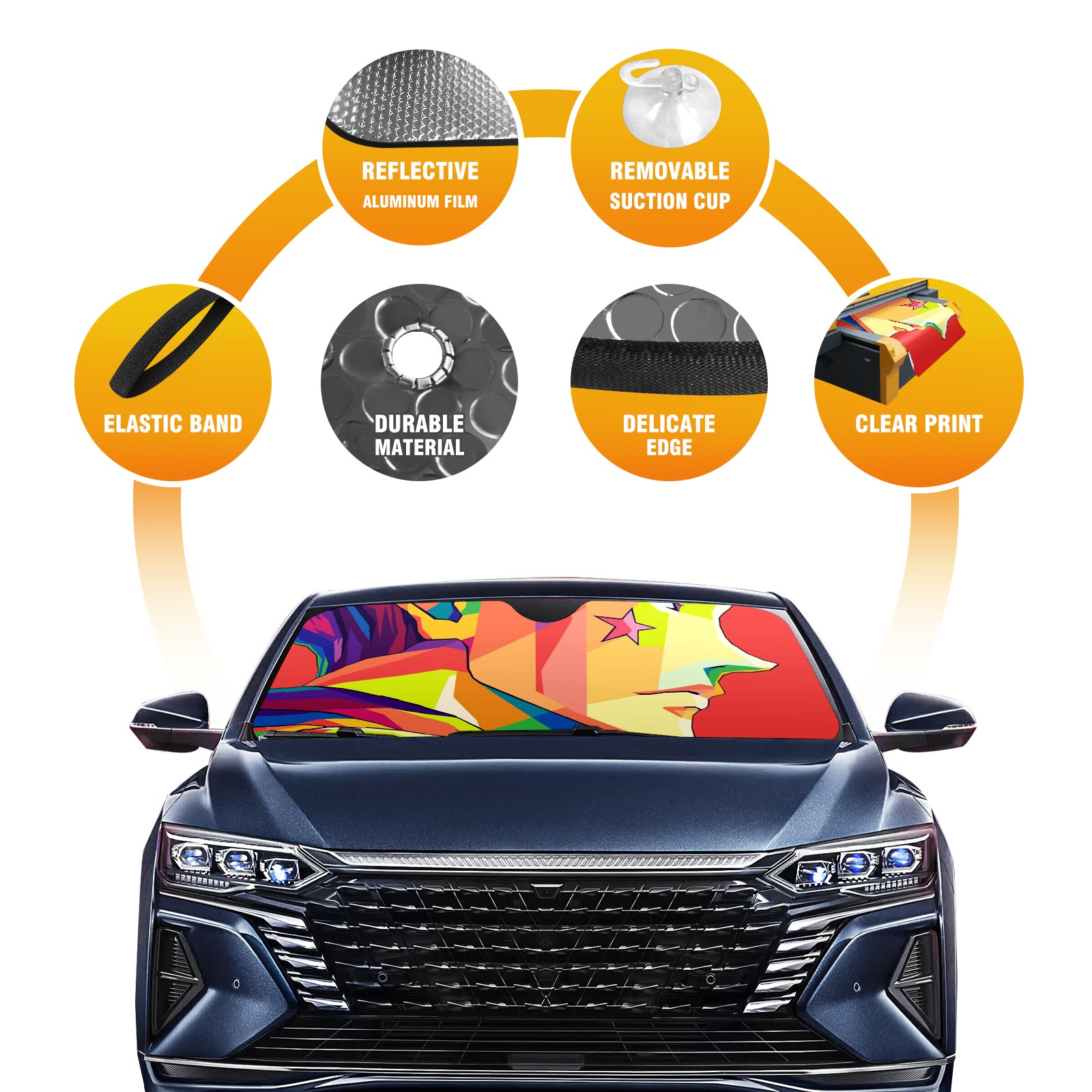 Car Windshield Sun Shade For Front Window Colorful Art Anime Boy Foldable Vehicle Windshield Car Sun Visor Covers Automotive Window Protector Car Camping Privacy Sun Blocker