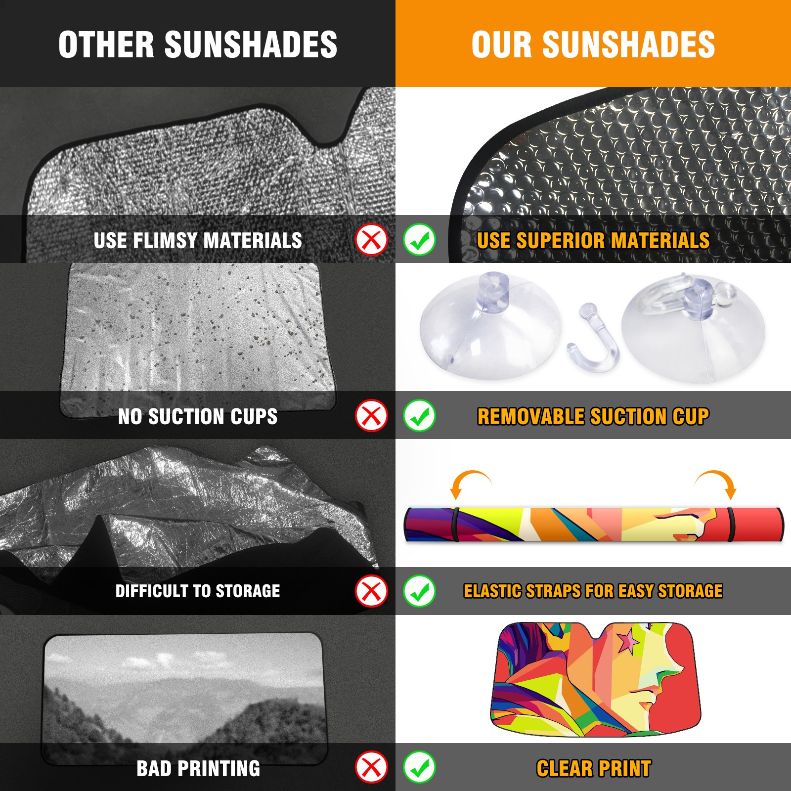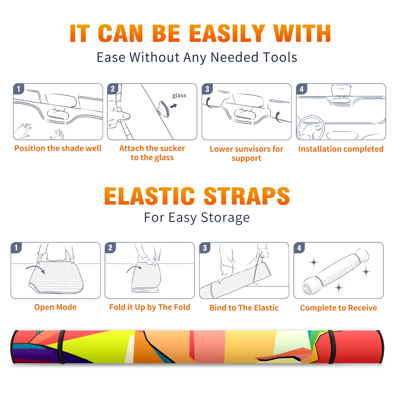 • Diameter /Size 63"L x 33.5"W Made from excellent materials which makes it sturdy and protects the car from the sun. Easy to use and pack. Makes the interior of the car cooler.You can easily stash the sunshade in the storage bag or store long term.It open and closes easy. Also the leather storage bag is durable and easy to put the umbrella back into.This windshield sunshade provides complete coverage and keeps your car interior cool under direct sun. It is easy to open and position under the windshield and around the rear-view mirror. Makes Your Car Easy To Identify, Perfect For Finding Your Car In Crowded Parking Lots And Garages.Great Choice: It Is A Great Gift For Dad, Boyfriend, Brother, Brother And Uncle, Friends, Classmates, Family And So On. Notice: Due To Difference Computer Monitors, The Color Maybe Slightly Different From Picture. As Different Measurement Methods, Measurement Data Will Float Within 2%.I Hope You Understand. If You Have Any Question About The Item Please Do Not Hesitate To Contact Us Immediately And We Will Give You A Satisfactory Reply Within 24 Hours.