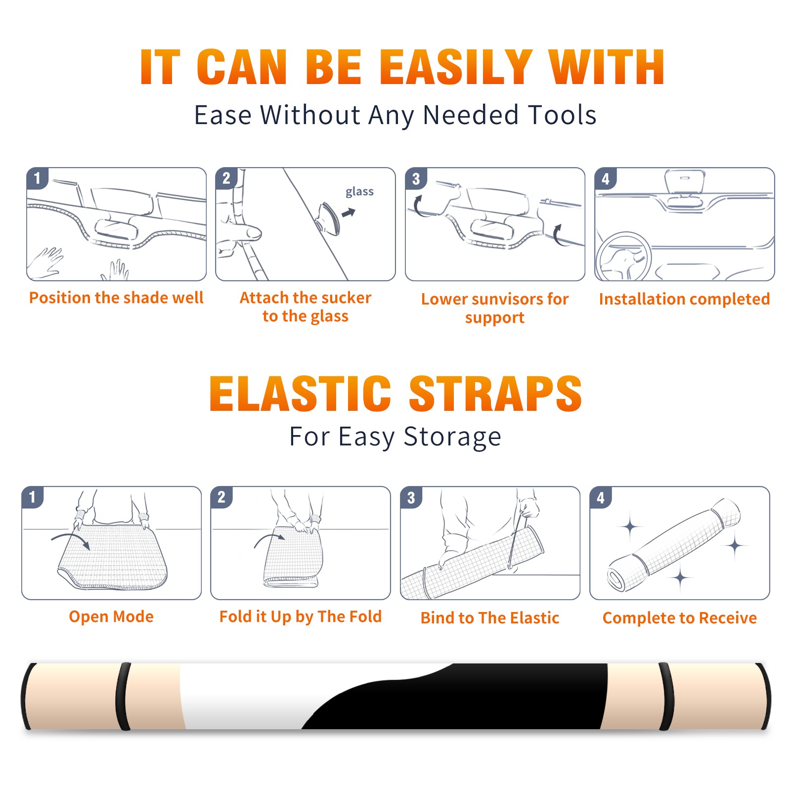 • Diameter /Size 63"L x 33.5"W Made from excellent materials which makes it sturdy and protects the car from the sun. Easy to use and pack. Makes the interior of the car cooler.You can easily stash the sunshade in the storage bag or store long term.It open and closes easy. Also the leather storage bag is durable and easy to put the umbrella back into.This windshield sunshade provides complete coverage and keeps your car interior cool under direct sun. It is easy to open and position under the windshield and around the rear-view mirror. Makes Your Car Easy To Identify, Perfect For Finding Your Car In Crowded Parking Lots And Garages.Great Choice: It Is A Great Gift For Dad, Boyfriend, Brother, Brother And Uncle, Friends, Classmates, Family And So On. Notice: Due To Difference Computer Monitors, The Color Maybe Slightly Different From Picture. As Different Measurement Methods, Measurement Data Will Float Within 2%.I Hope You Understand. If You Have Any Question About The Item Please Do Not Hesitate To Contact Us Immediately And We Will Give You A Satisfactory Reply Within 24 Hours.