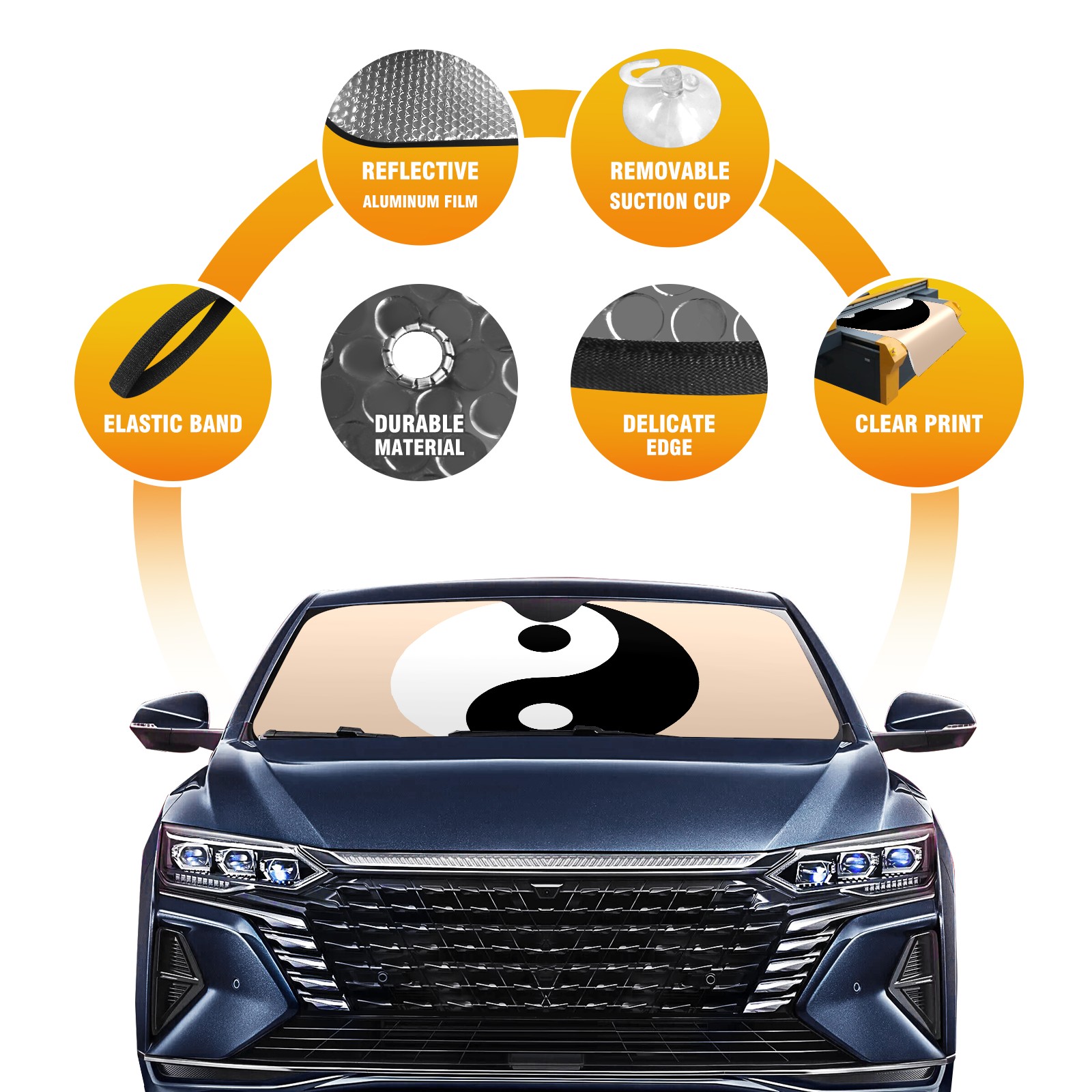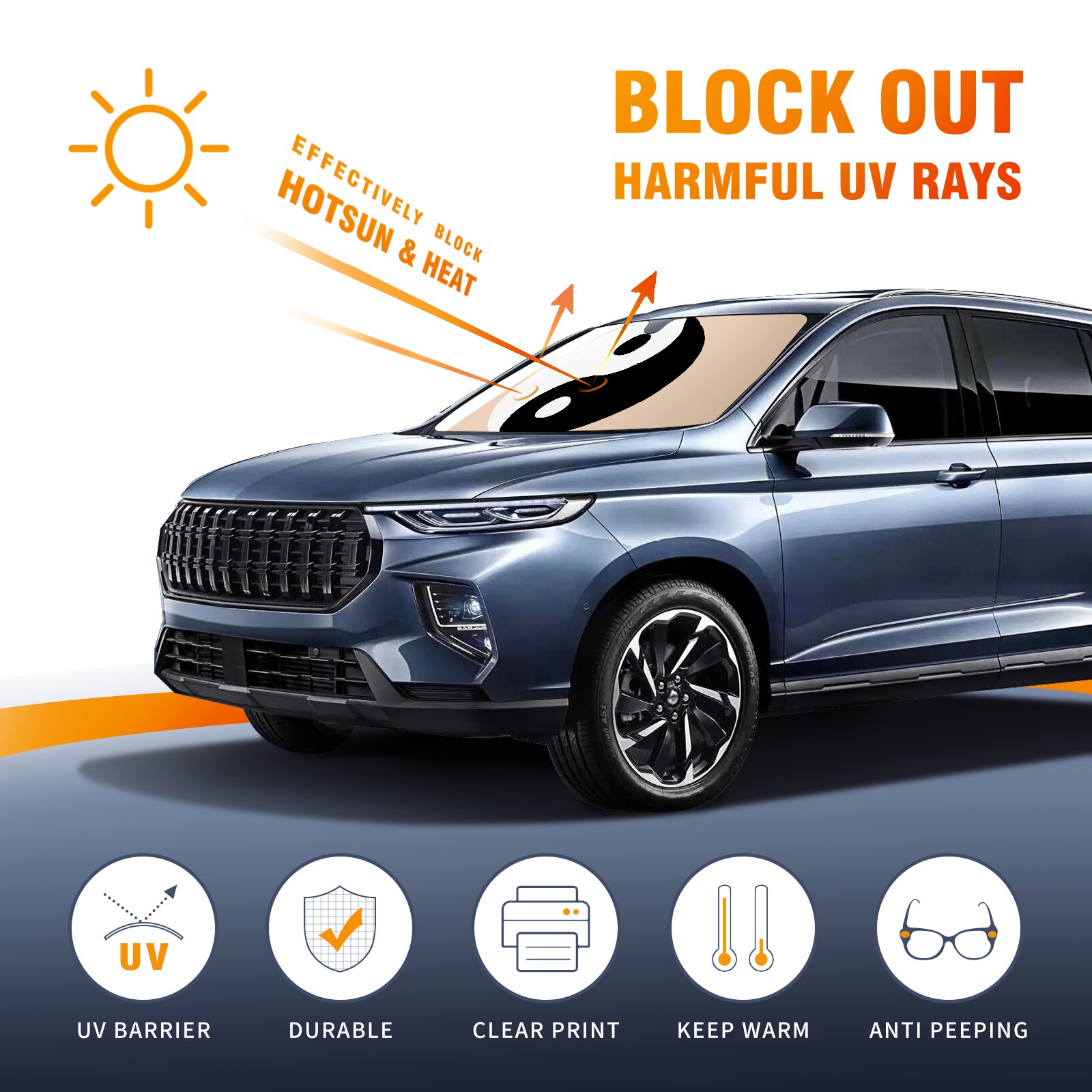 Car Windshield Sun Shade For Front Window Chinese Tai Bagua Foldable Vehicle Windshield Car Sun Visor Covers Automotive Window Protector Car Camping Privacy Sun Blocker