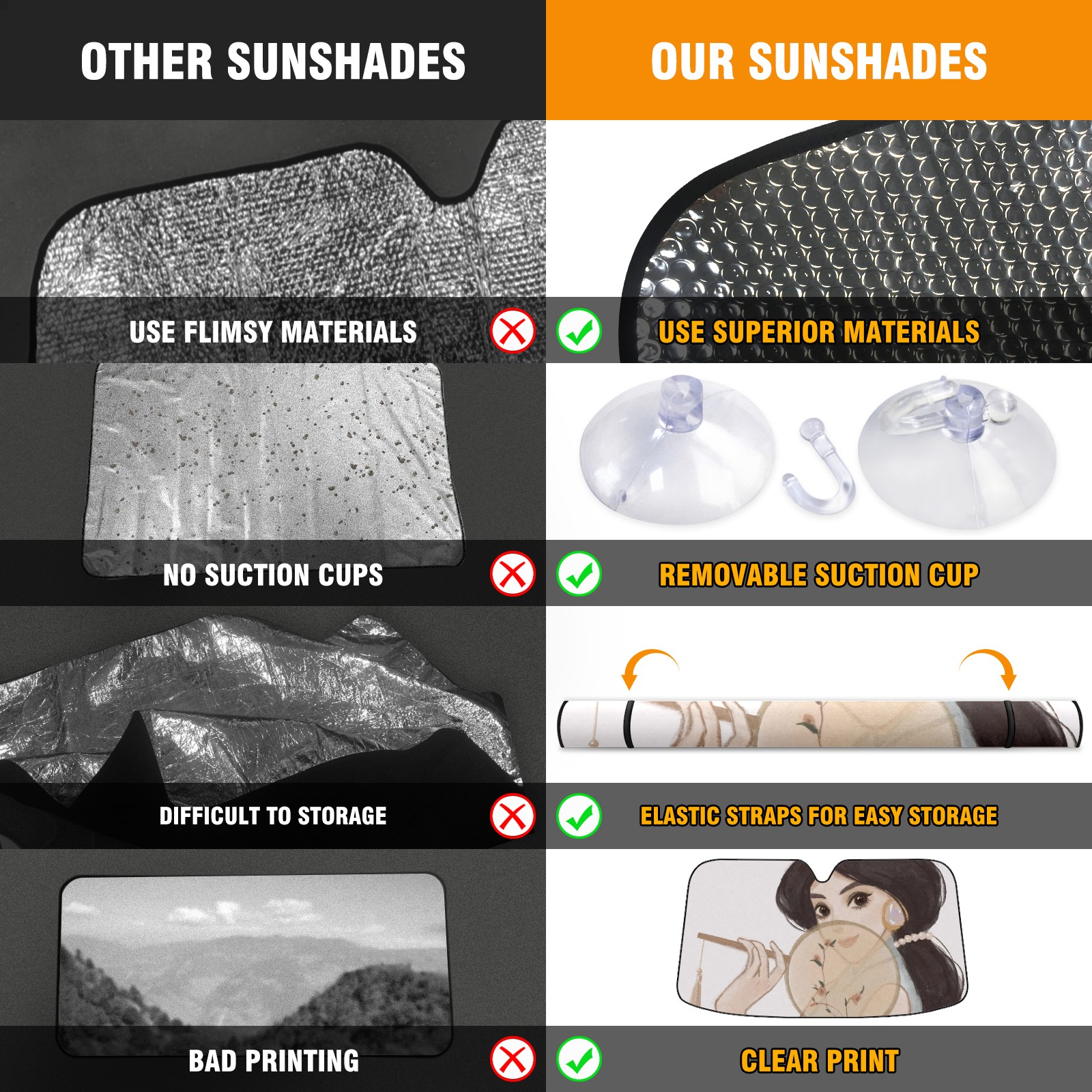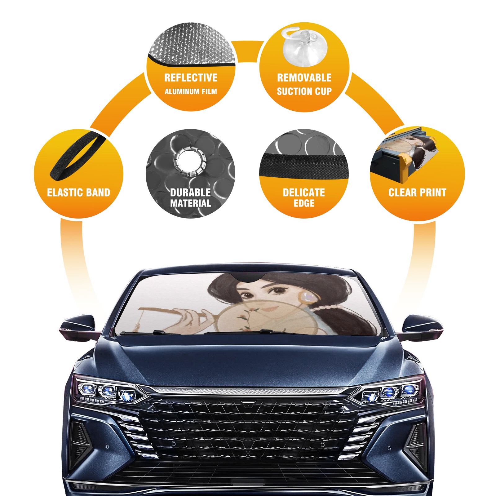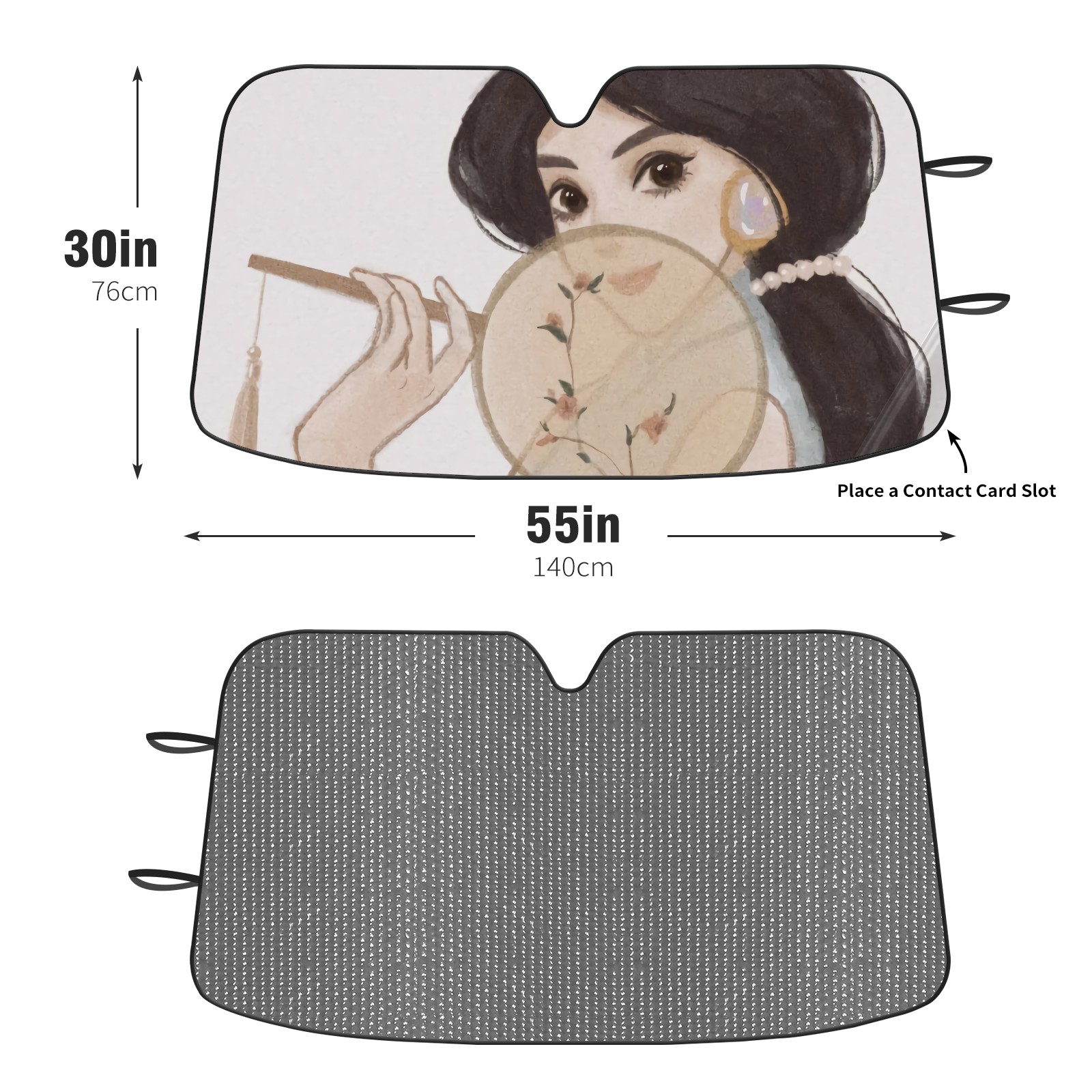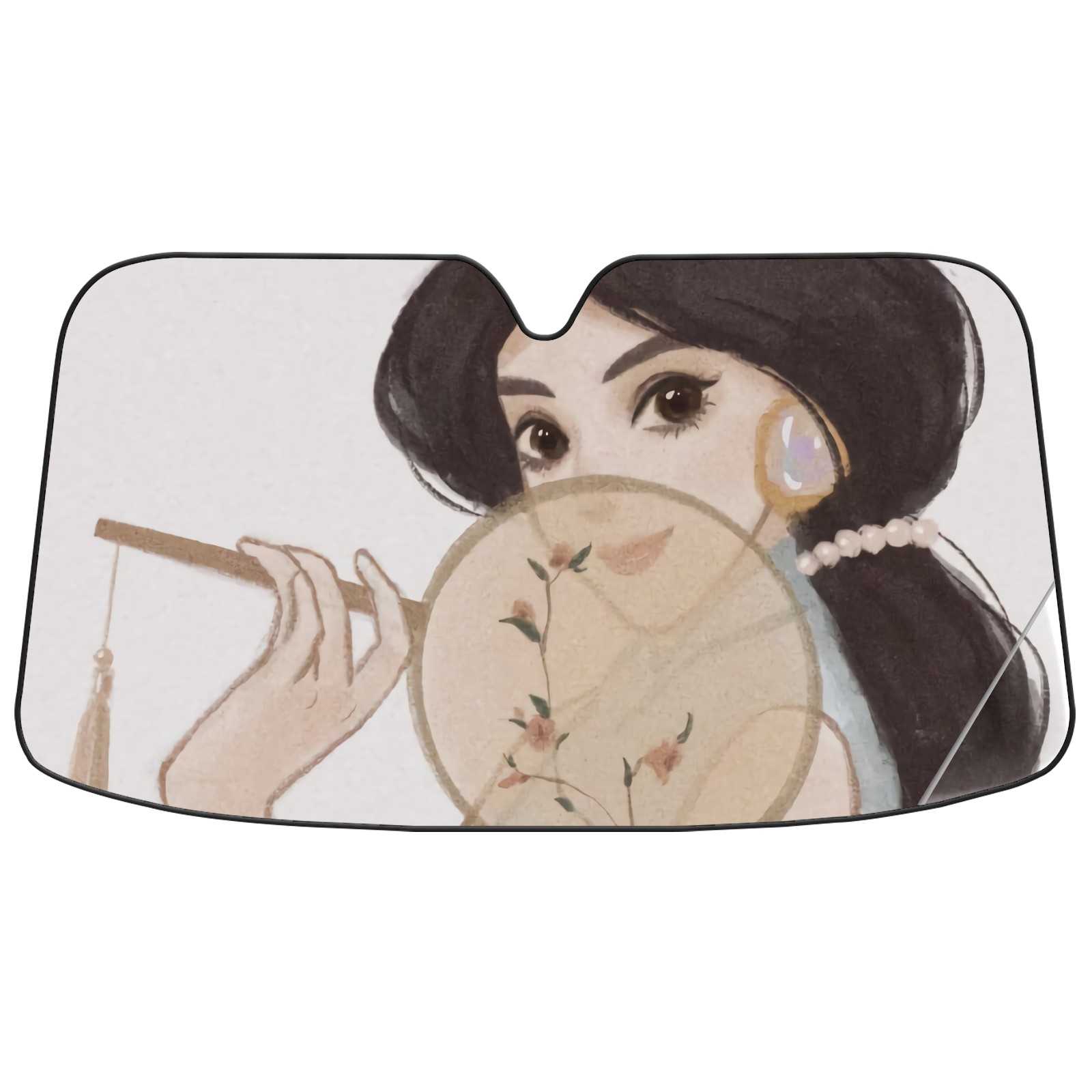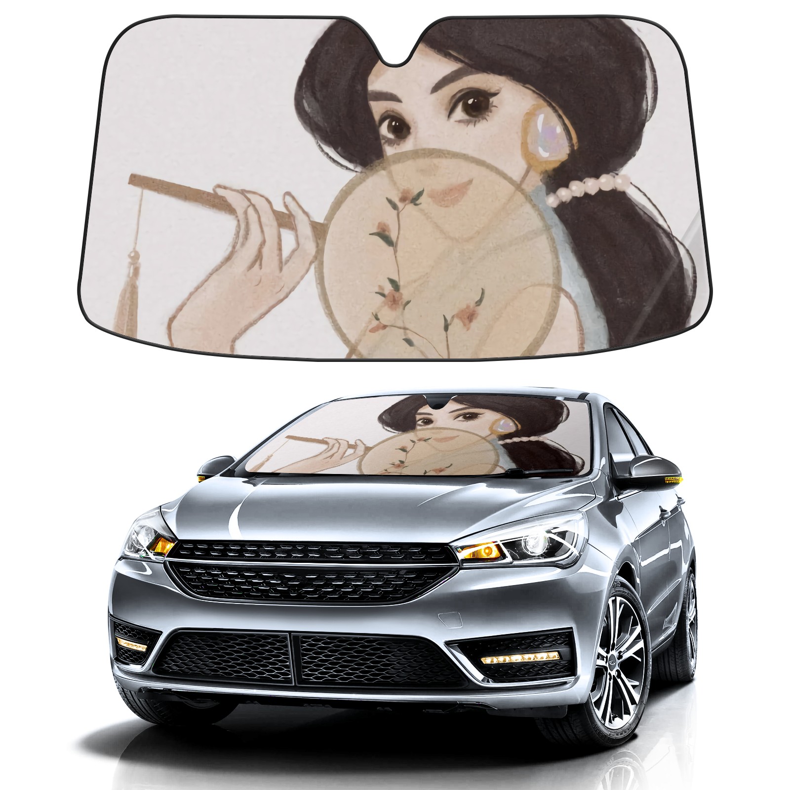 Car Windshield Sun Shade For Front Window Chinese Cheongsam Princess Pattern Foldable Vehicle Windshield Car Sun Visor Covers Automotive Window Protector Car Camping Privacy Sun Blocker