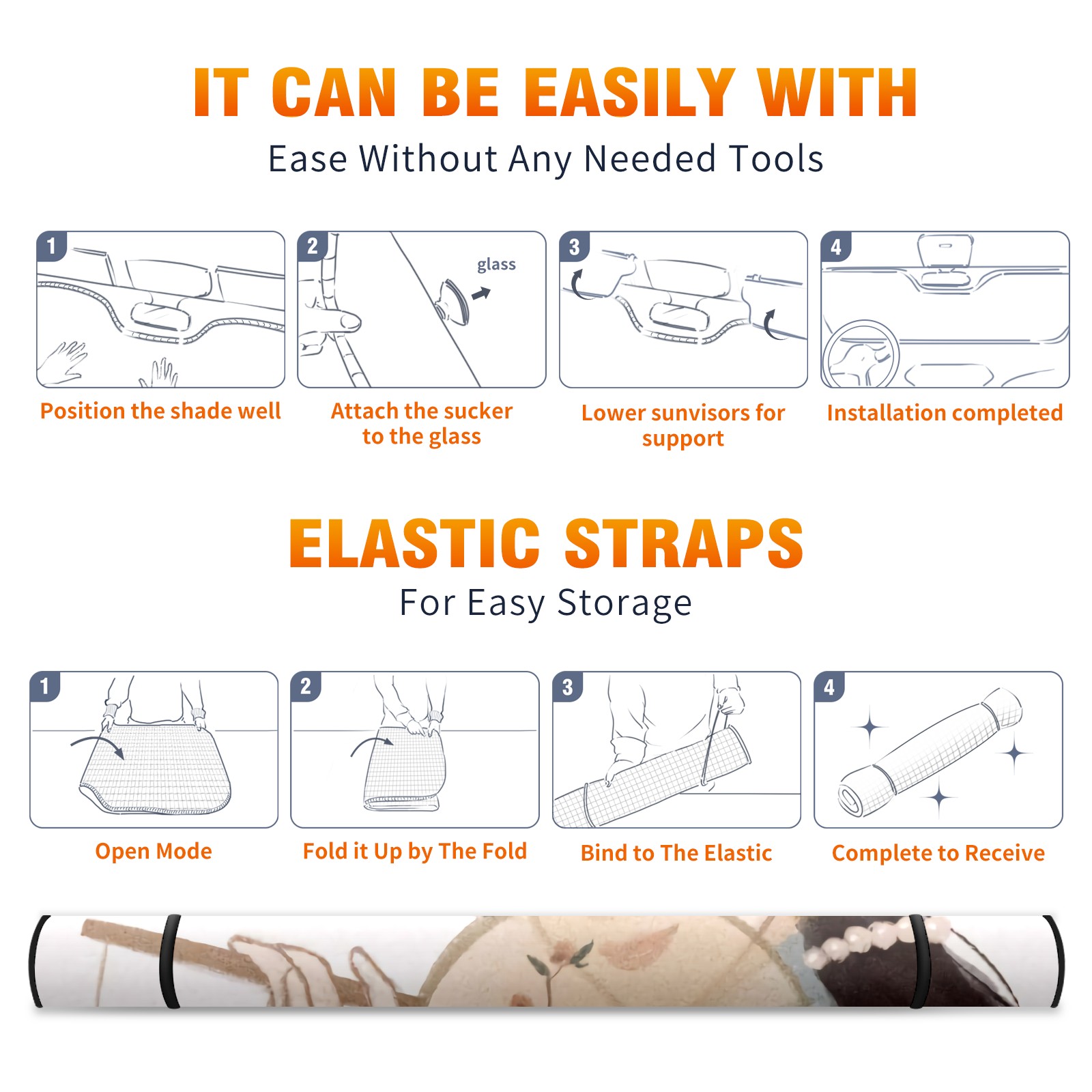 • Diameter /Size 63"L x 33.5"W Made from excellent materials which makes it sturdy and protects the car from the sun. Easy to use and pack. Makes the interior of the car cooler.You can easily stash the sunshade in the storage bag or store long term.It open and closes easy. Also the leather storage bag is durable and easy to put the umbrella back into.This windshield sunshade provides complete coverage and keeps your car interior cool under direct sun. It is easy to open and position under the windshield and around the rear-view mirror. Makes Your Car Easy To Identify, Perfect For Finding Your Car In Crowded Parking Lots And Garages.Great Choice: It Is A Great Gift For Dad, Boyfriend, Brother, Brother And Uncle, Friends, Classmates, Family And So On. Notice: Due To Difference Computer Monitors, The Color Maybe Slightly Different From Picture. As Different Measurement Methods, Measurement Data Will Float Within 2%.I Hope You Understand. If You Have Any Question About The Item Please Do Not Hesitate To Contact Us Immediately And We Will Give You A Satisfactory Reply Within 24 Hours.